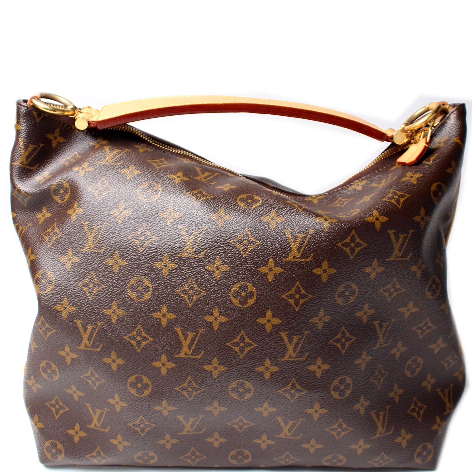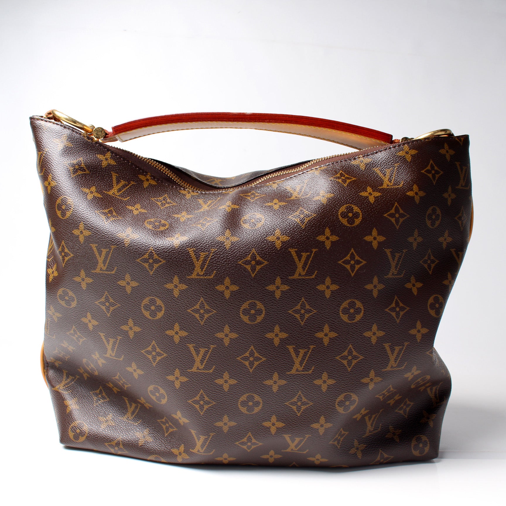 This pre-owned Louis Vuitton Sully MM is guaranteed 100% authentic. The exterior is in the classic Monogram coated canvas.