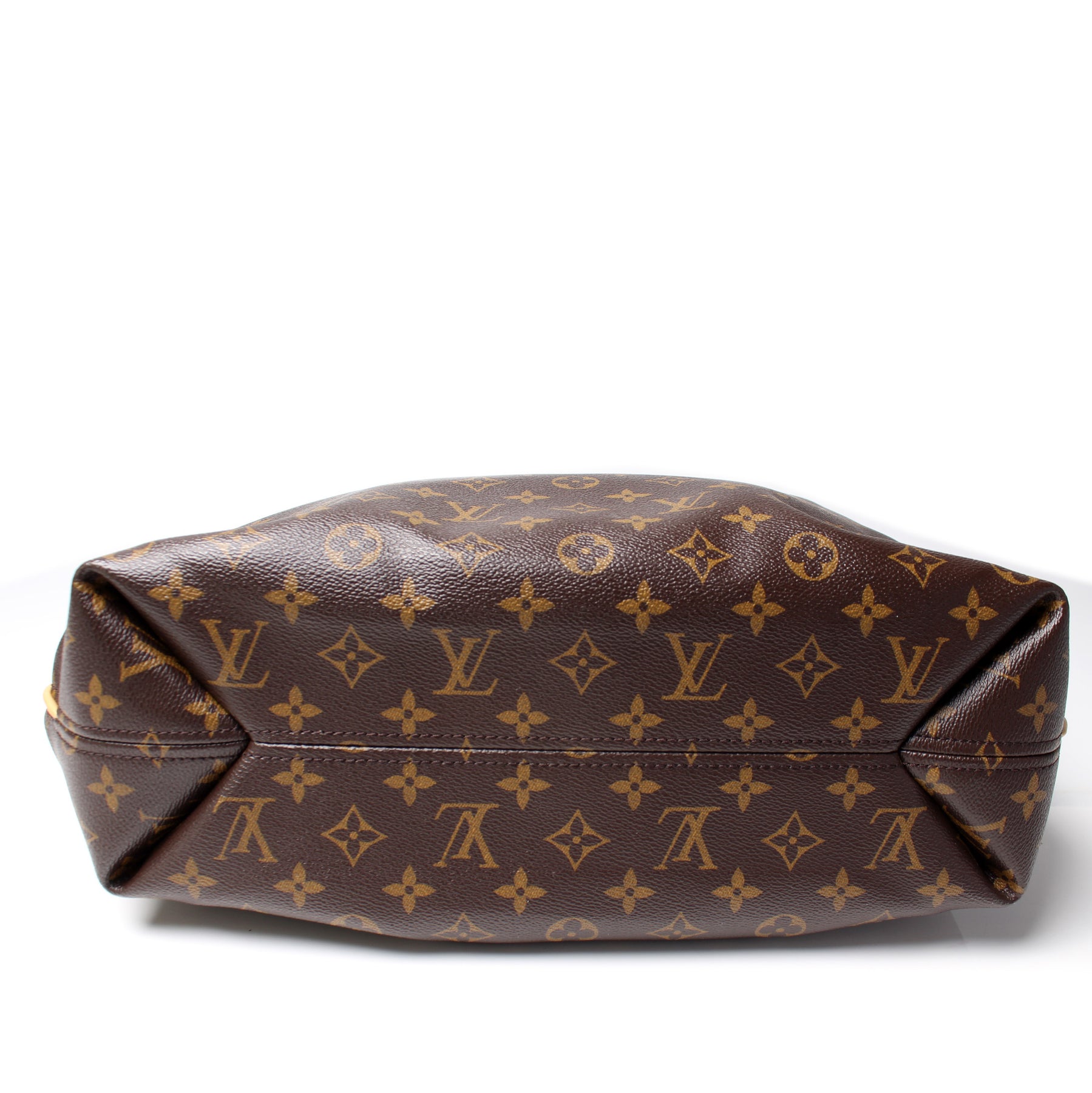 This pre-owned Louis Vuitton Sully MM is guaranteed 100% authentic. The exterior is in the classic Monogram coated canvas.