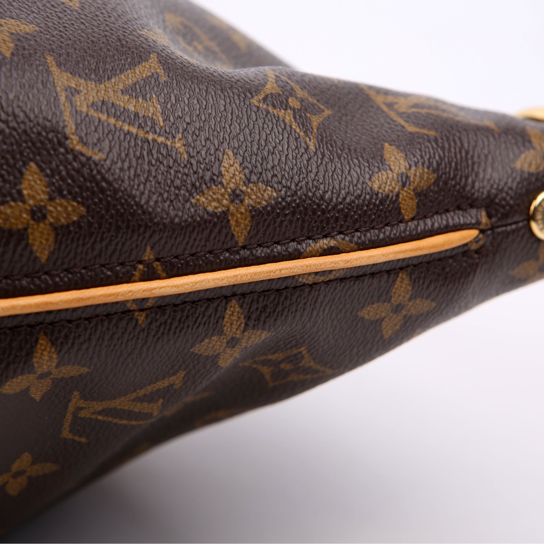 This pre-owned Louis Vuitton Sully PM is guaranteed 100% authentic. The exterior is in the classic Louis Vuitton Monogram coated canvas.