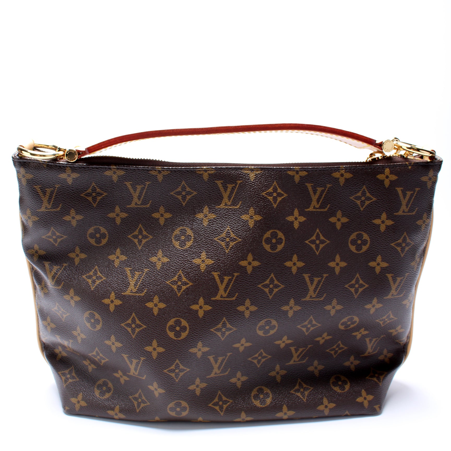 This pre-owned Louis Vuitton Sully PM is guaranteed 100% authentic. The exterior is in the classic Louis Vuitton Monogram coated canvas.