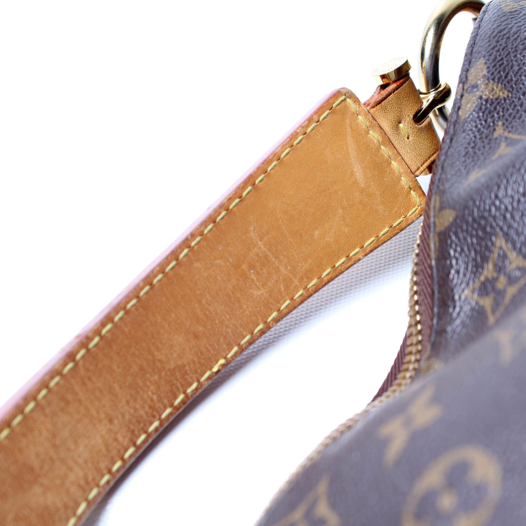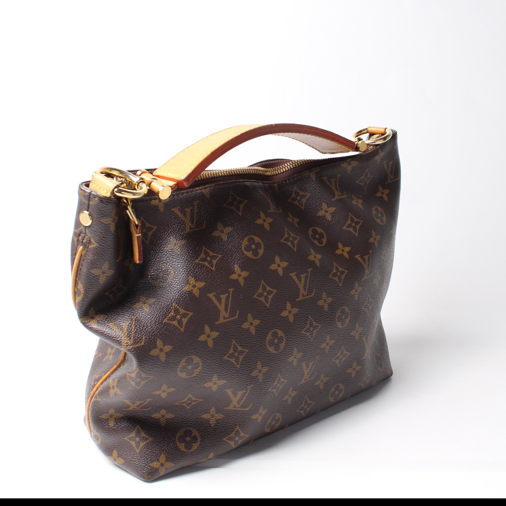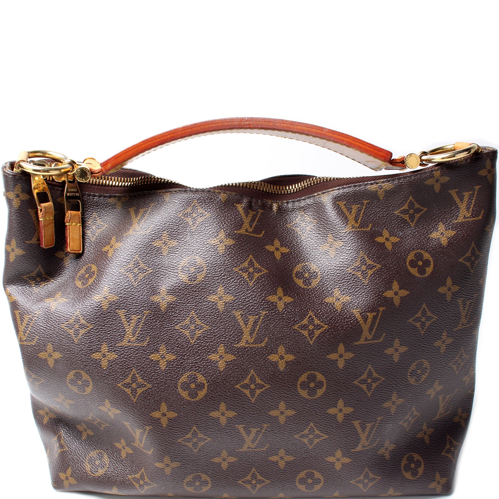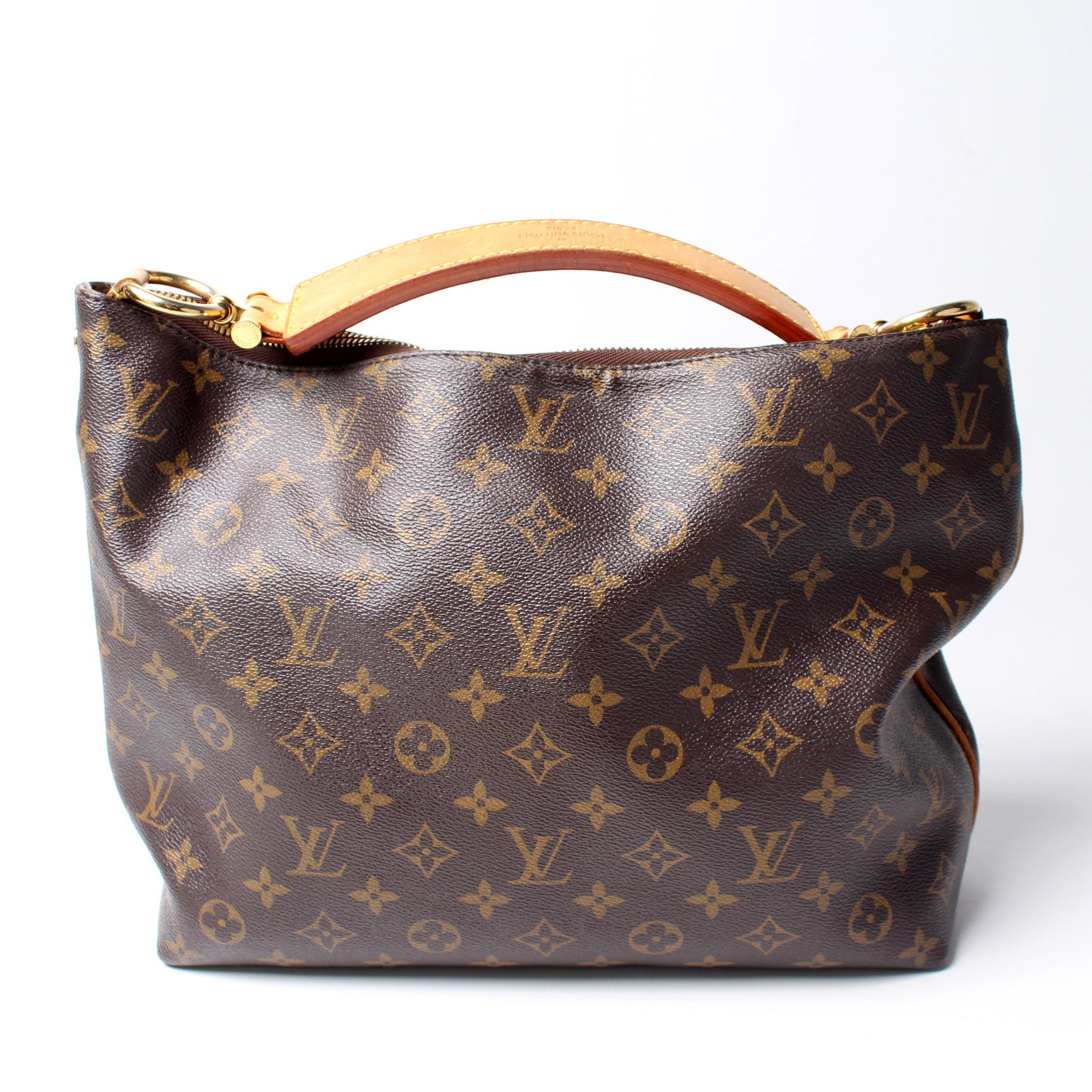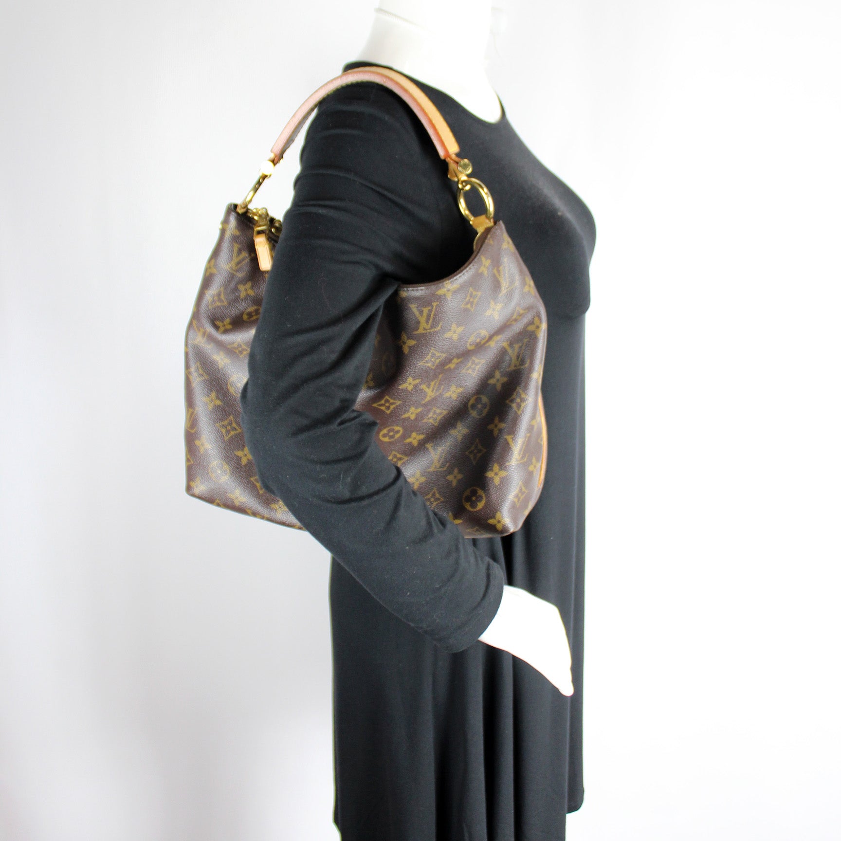 This pre-owned Louis Vuitton Sully PM is guaranteed 100% authentic. The exterior is in the classic Louis Vuitton Monogram coated canvas.