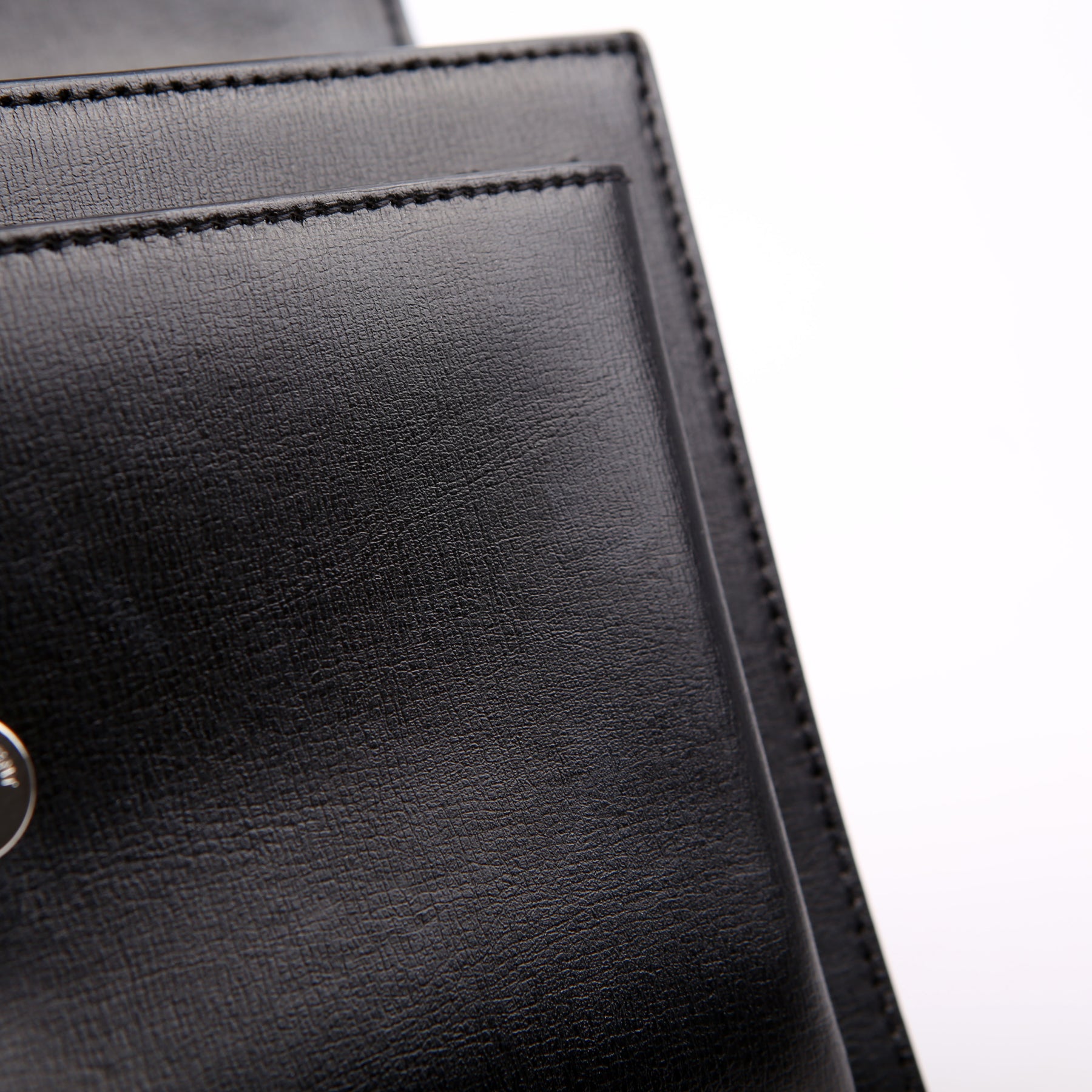 Exterior: The exterior leather is free of any rips or cracks. The exterior features one open pocket.