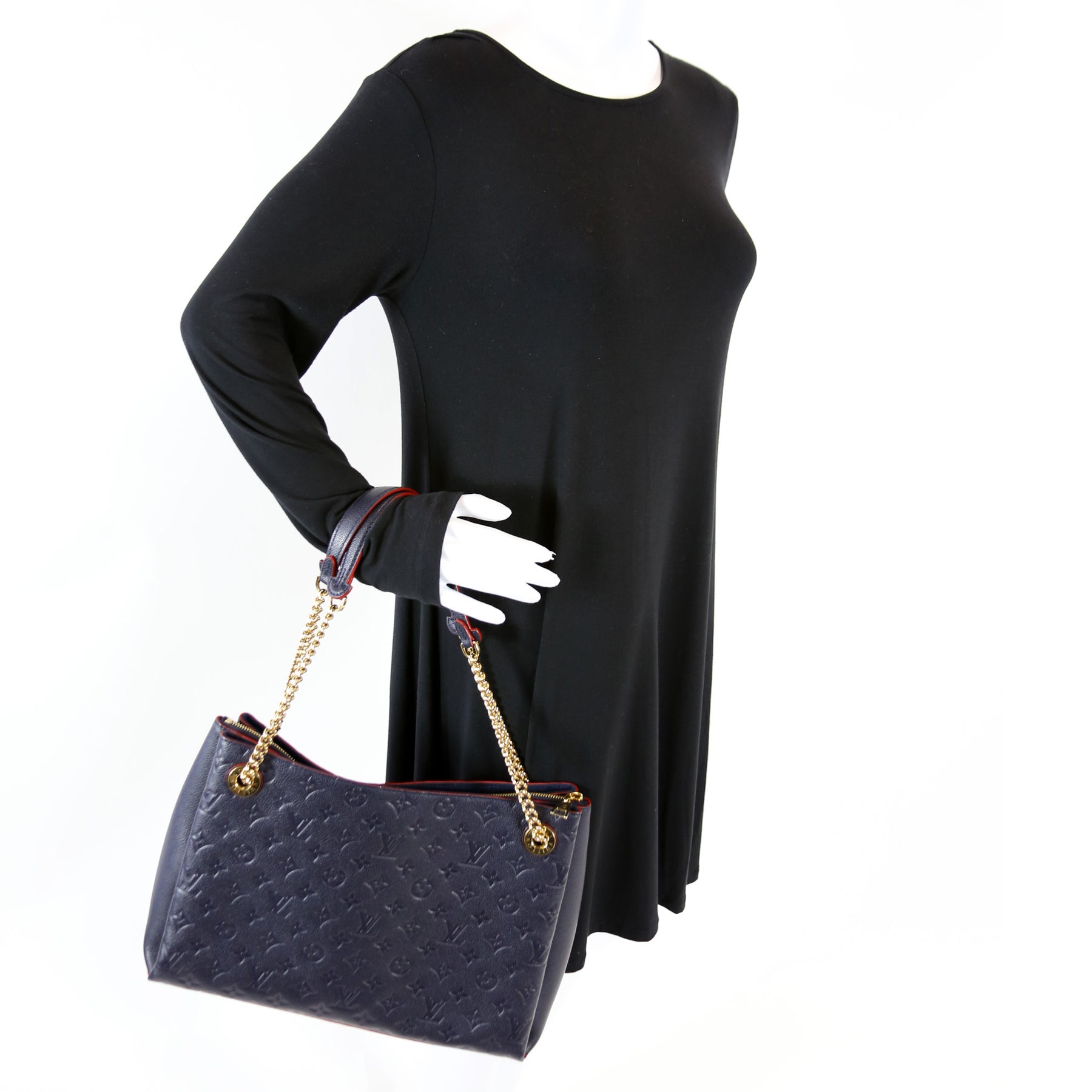 This pre-owned Louis Vuitton Surene MM is guaranteed 100% authentic. The exterior is in the classic Louis Vuitton Empreinte leather.