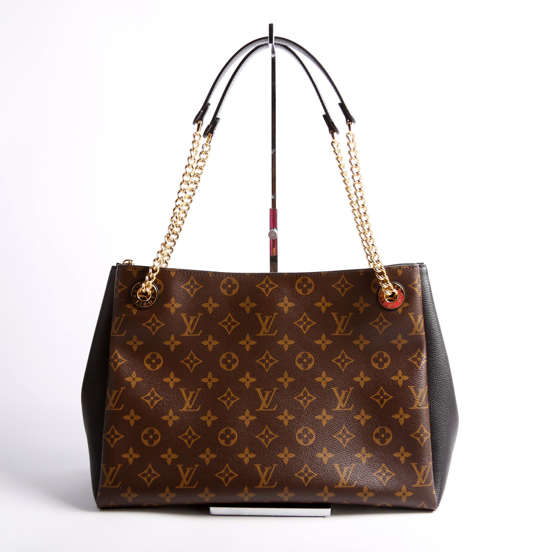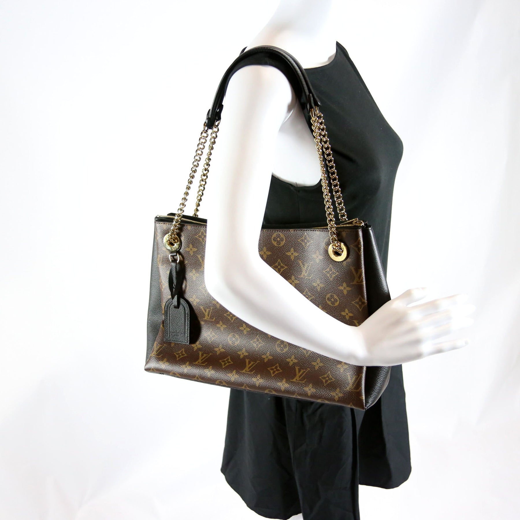 This pre-owned Louis Vuitton Surene MM is guaranteed 100% authentic. The exterior is in the classic Louis Vuitton Coated Canvas Monogram, and Leather.