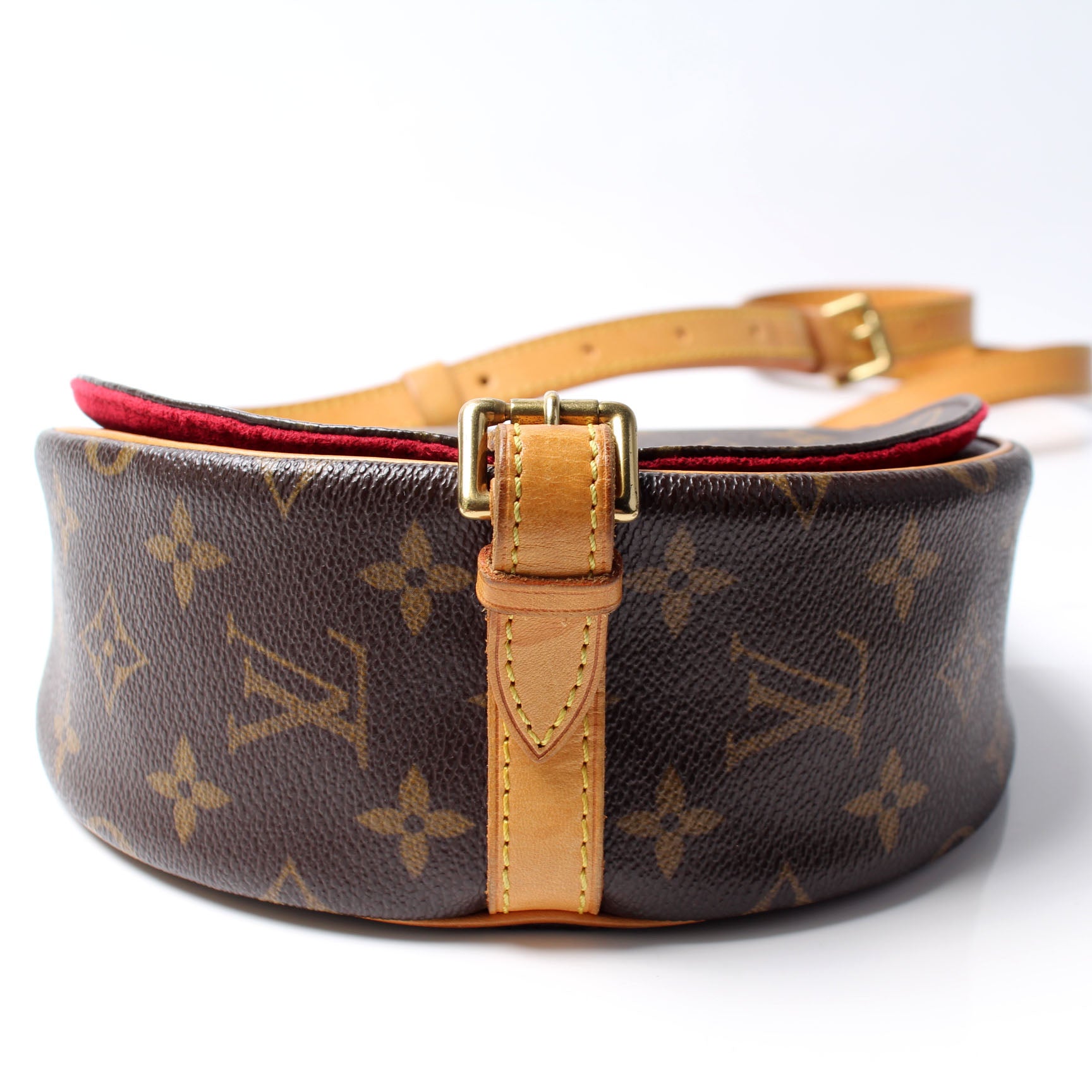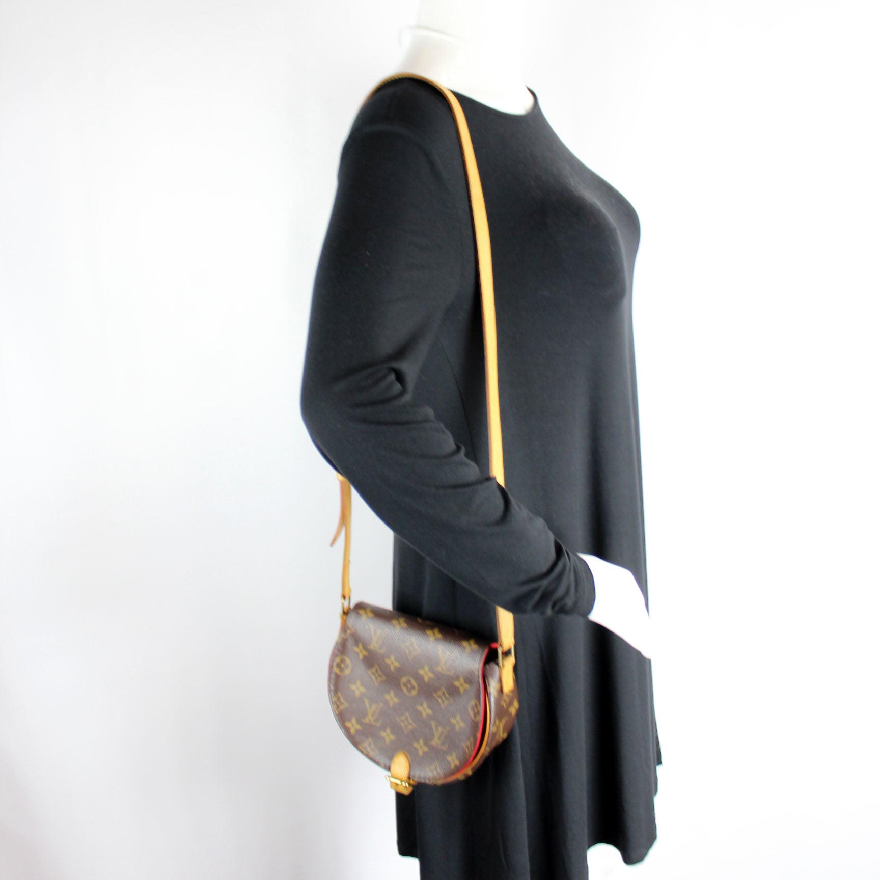 This pre-owned Louis Vuitton Tambourin Crossbody is guaranteed 100% authentic. The exterior is in the classic Louis Vuitton Monogram coated canvas.