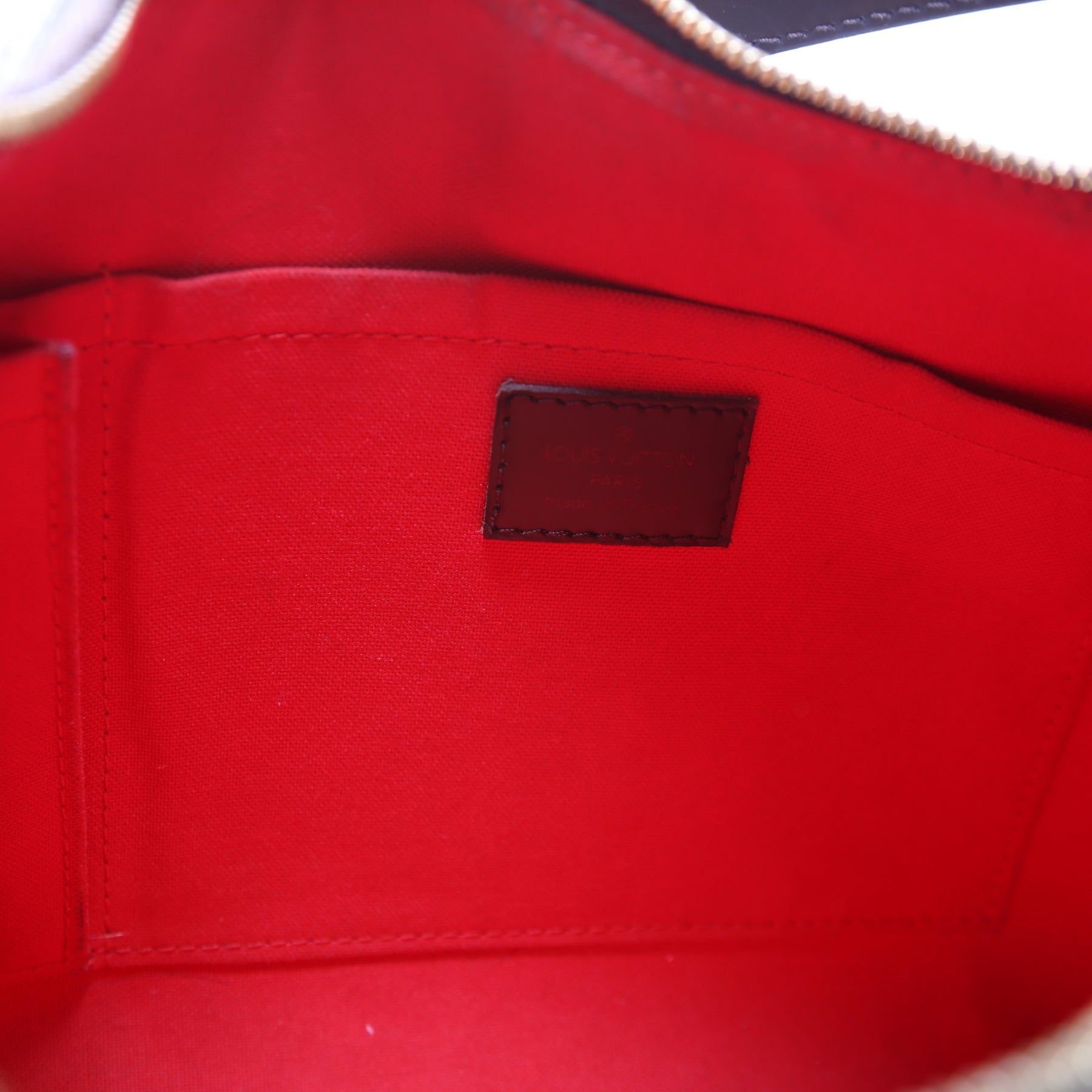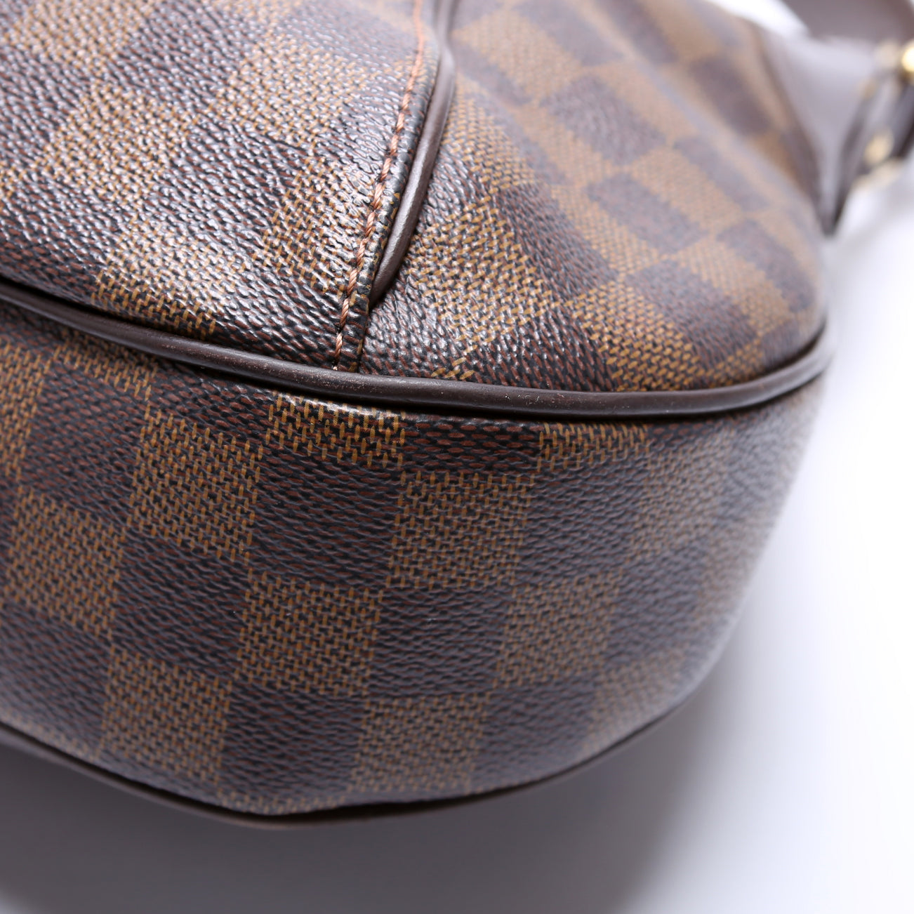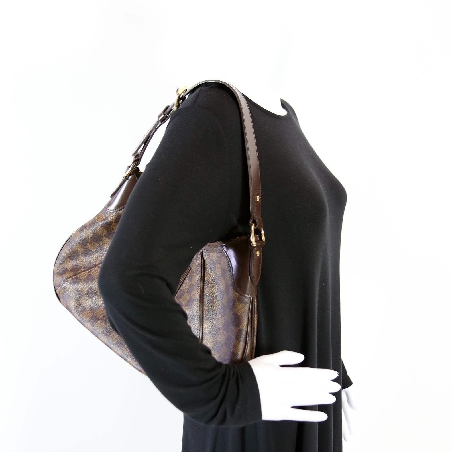 This pre-owned Louis Vuitton Thames GM is guaranteed 100% authentic. The exterior is in the classic Louis Vuitton Damier Ebene coated canvas.