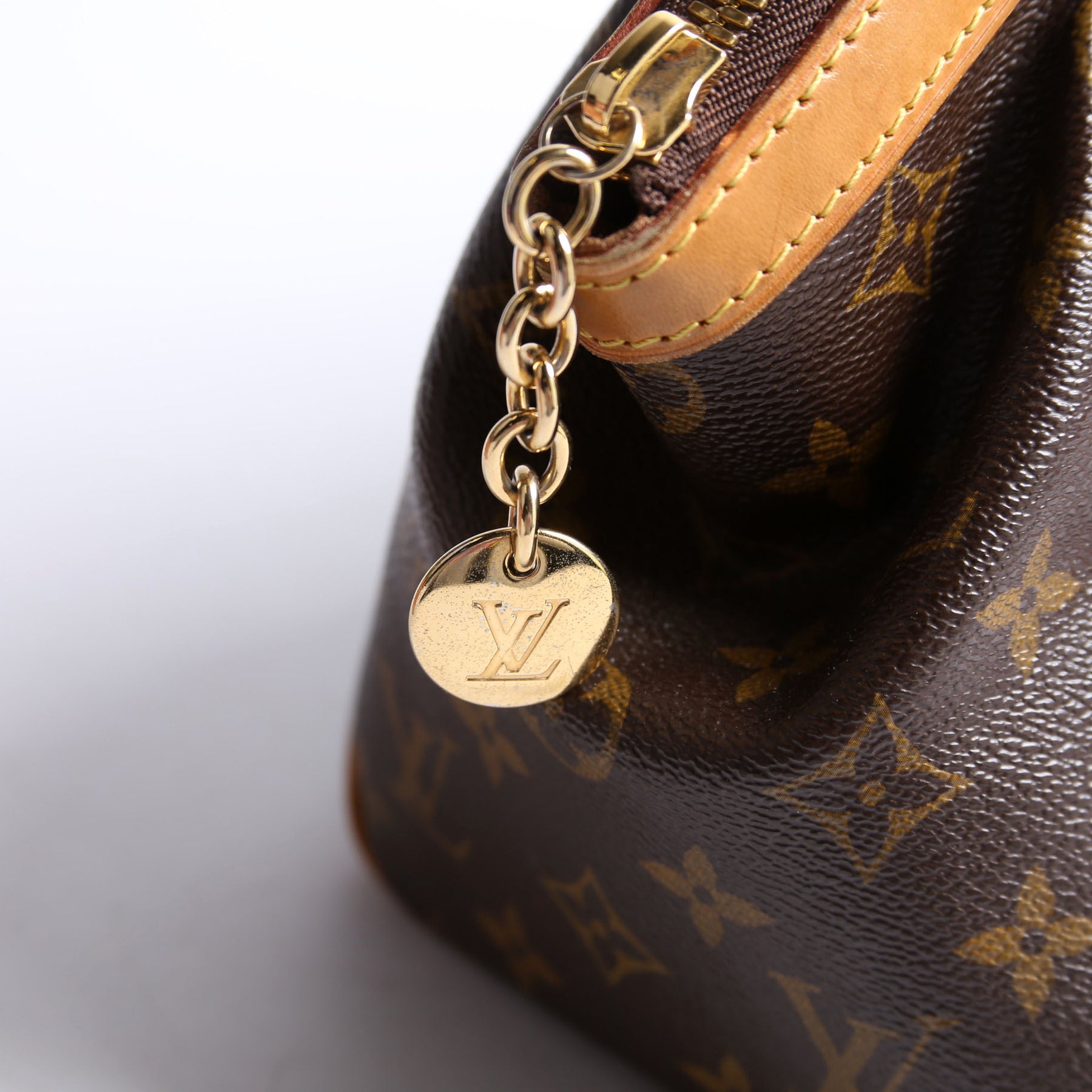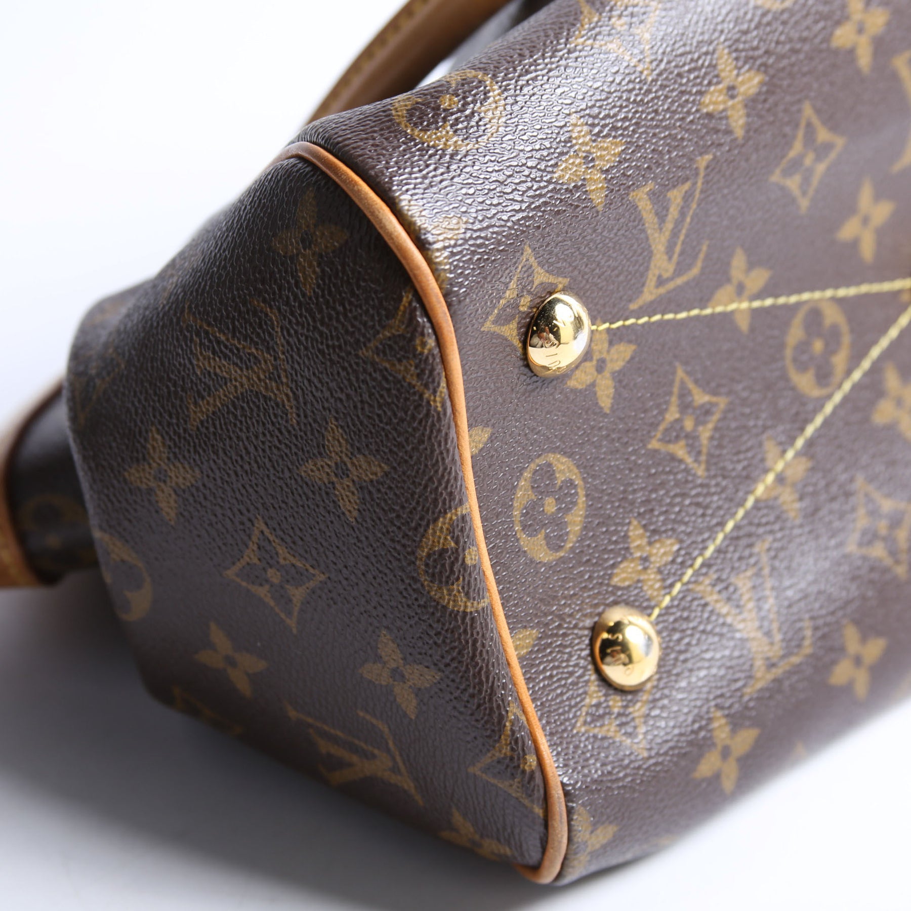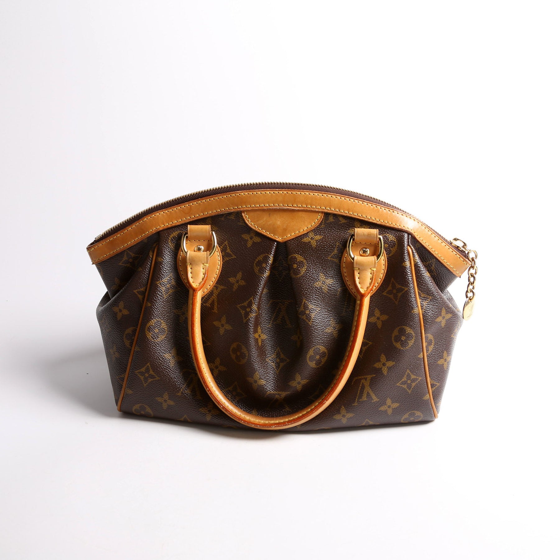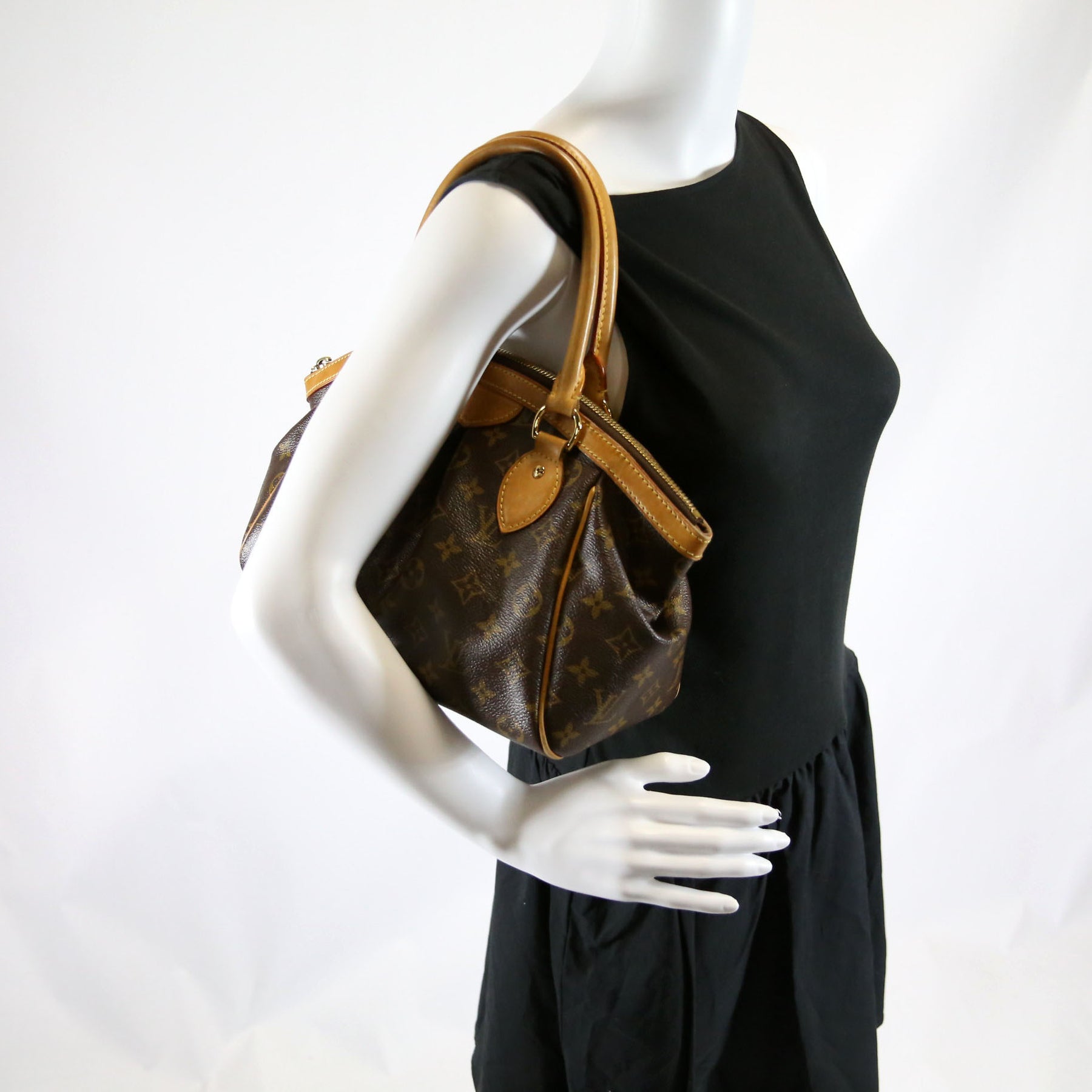 This pre-owned Louis Vuitton Tivoli PM is guaranteed 100% authentic. The exterior is in the classic Louis Vuitton Monogram coated canvas.