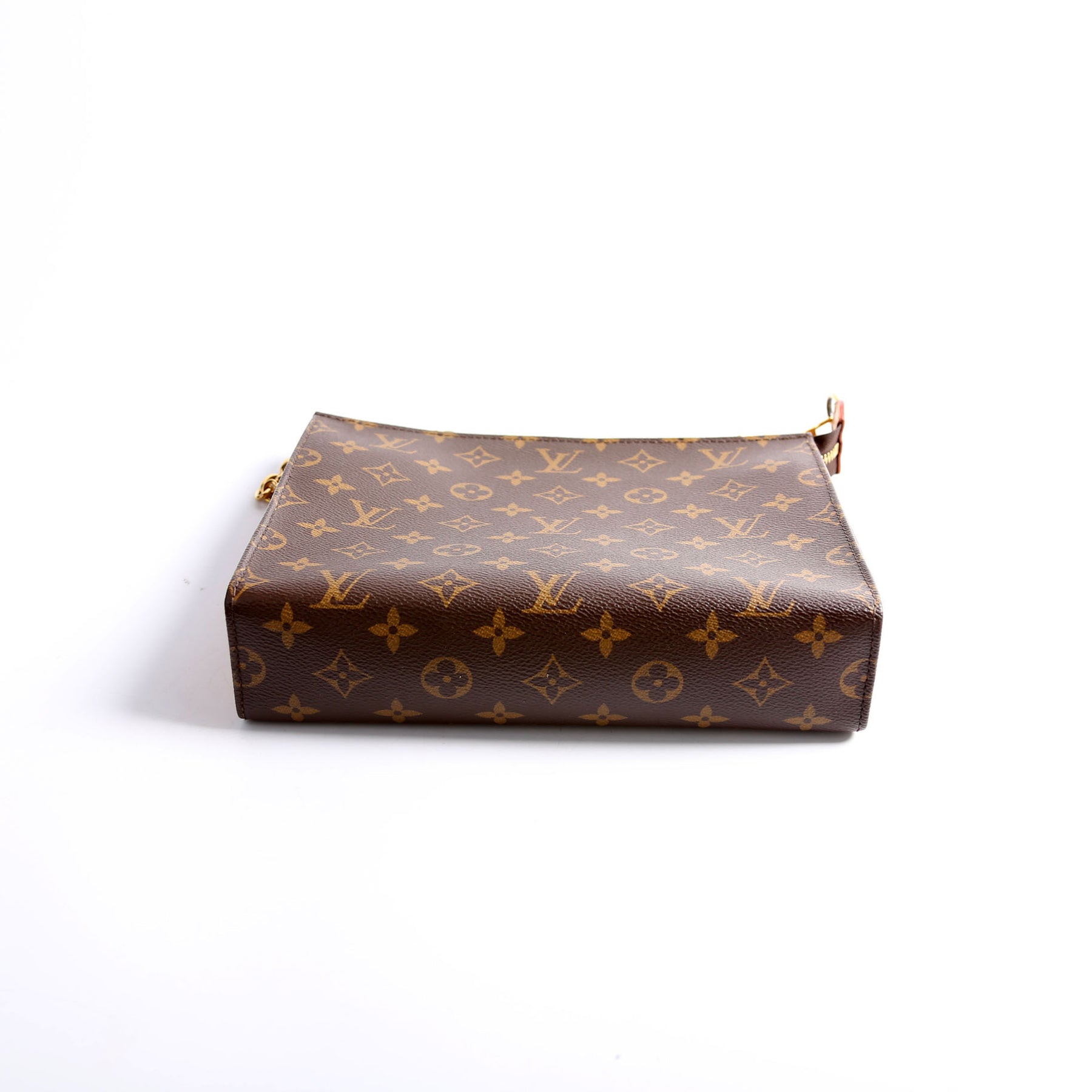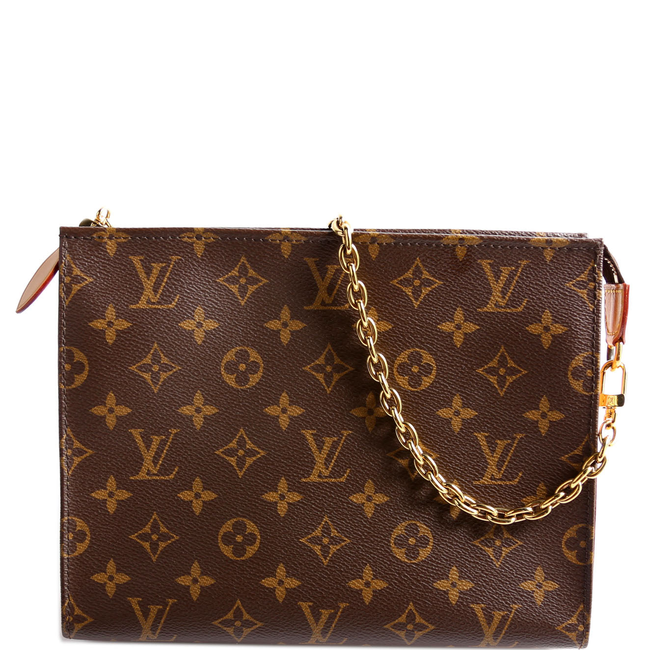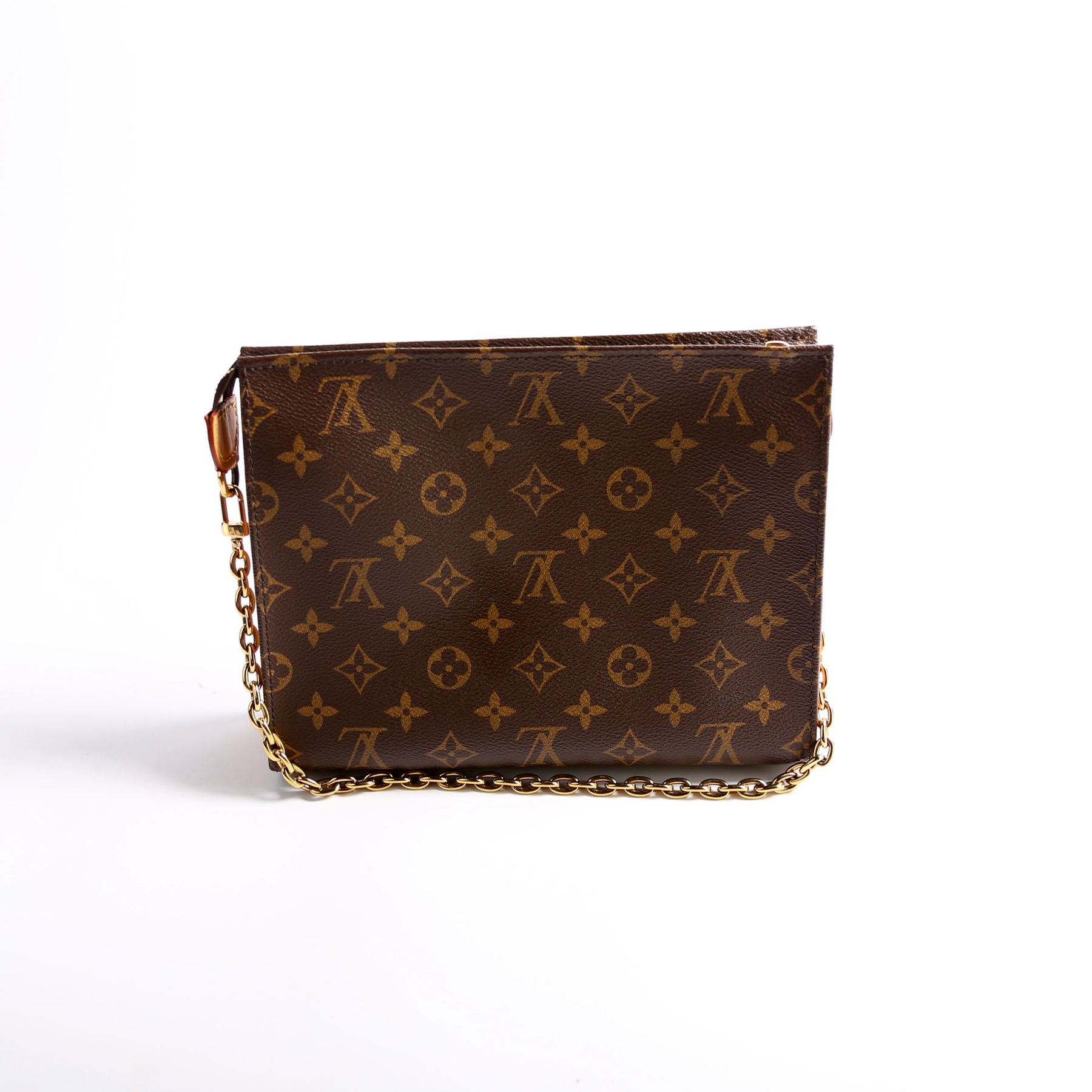 This pre-owned Louis Vuitton Toiletry Pouch On Chain is guaranteed 100% authentic. The exterior is in the classic Monogram coated canvas.
