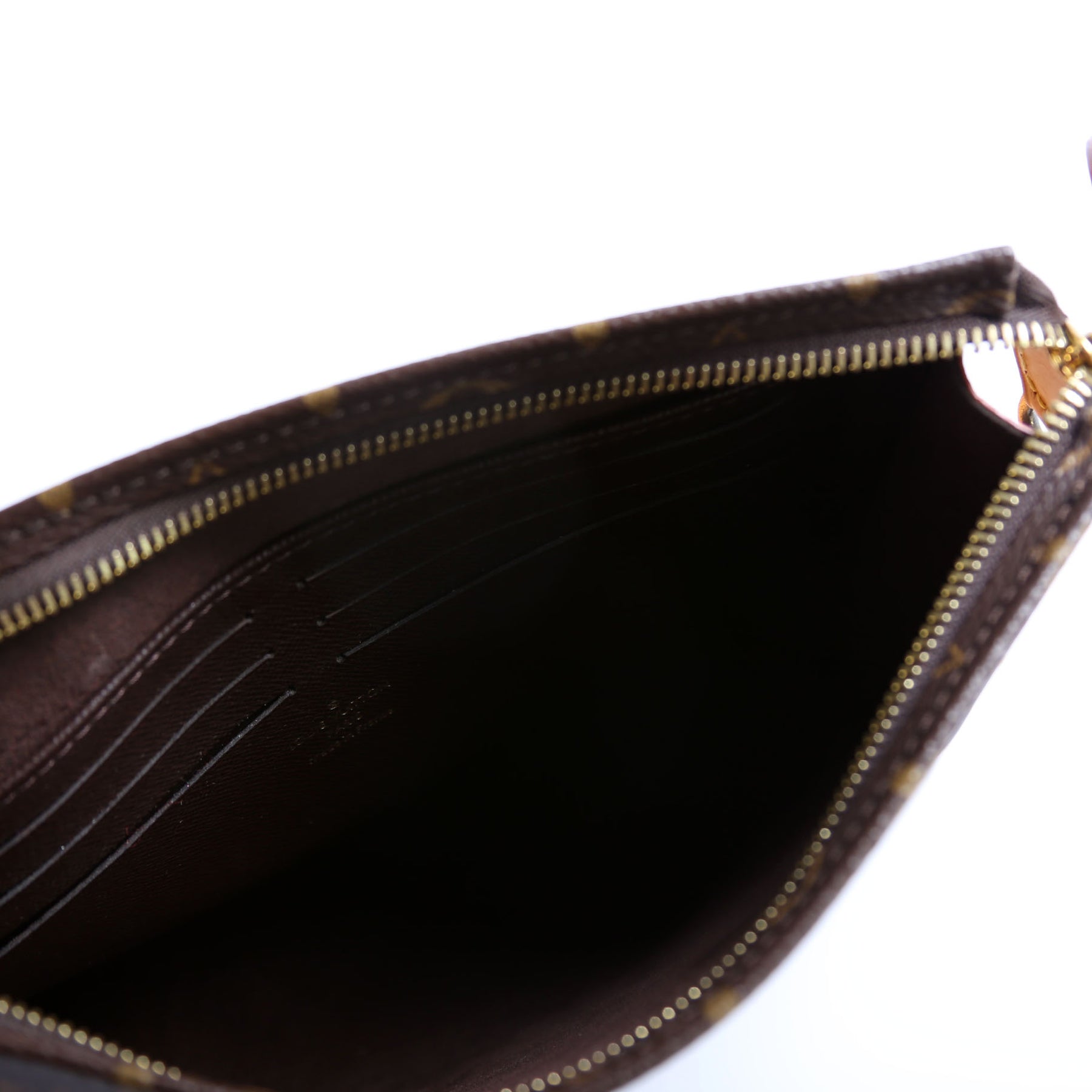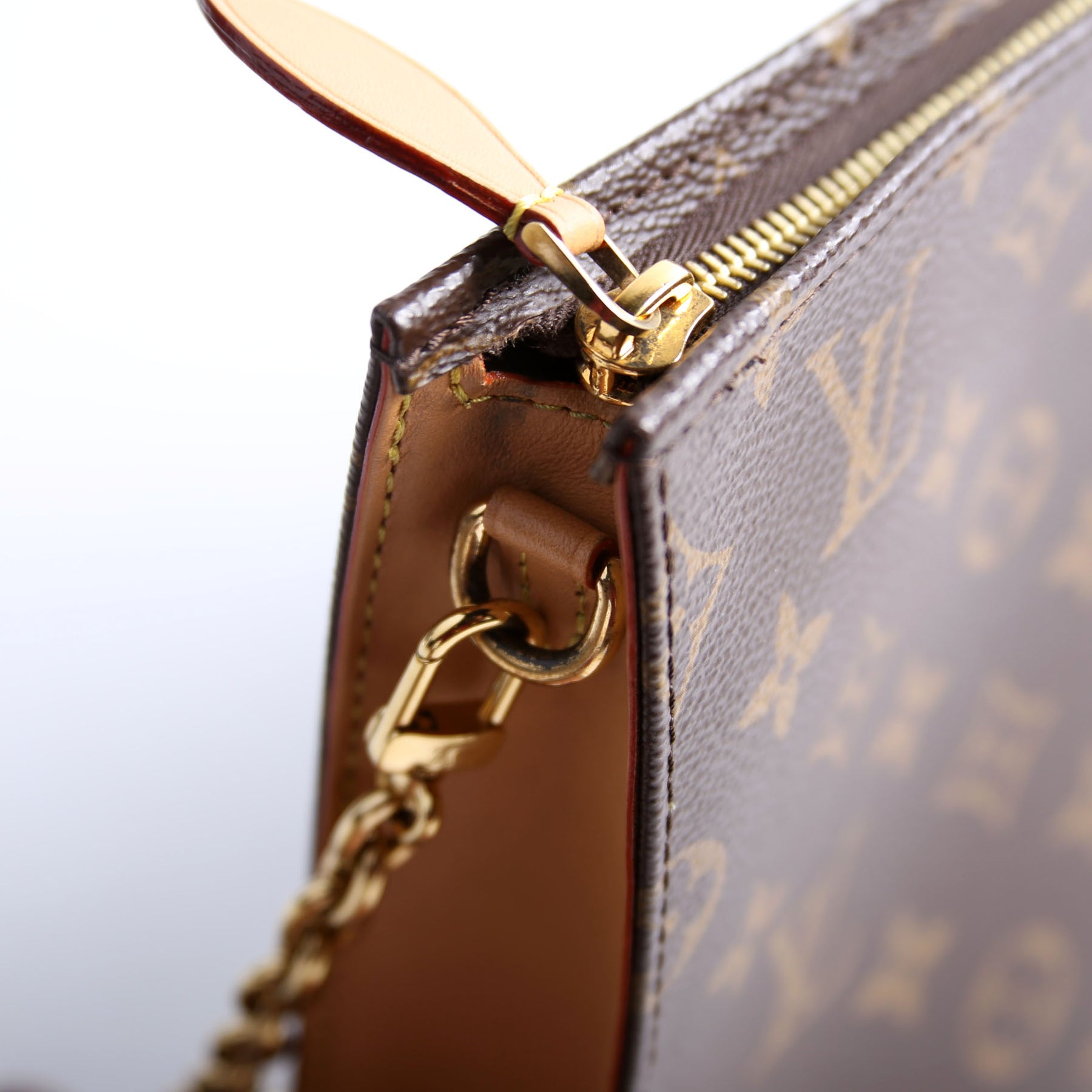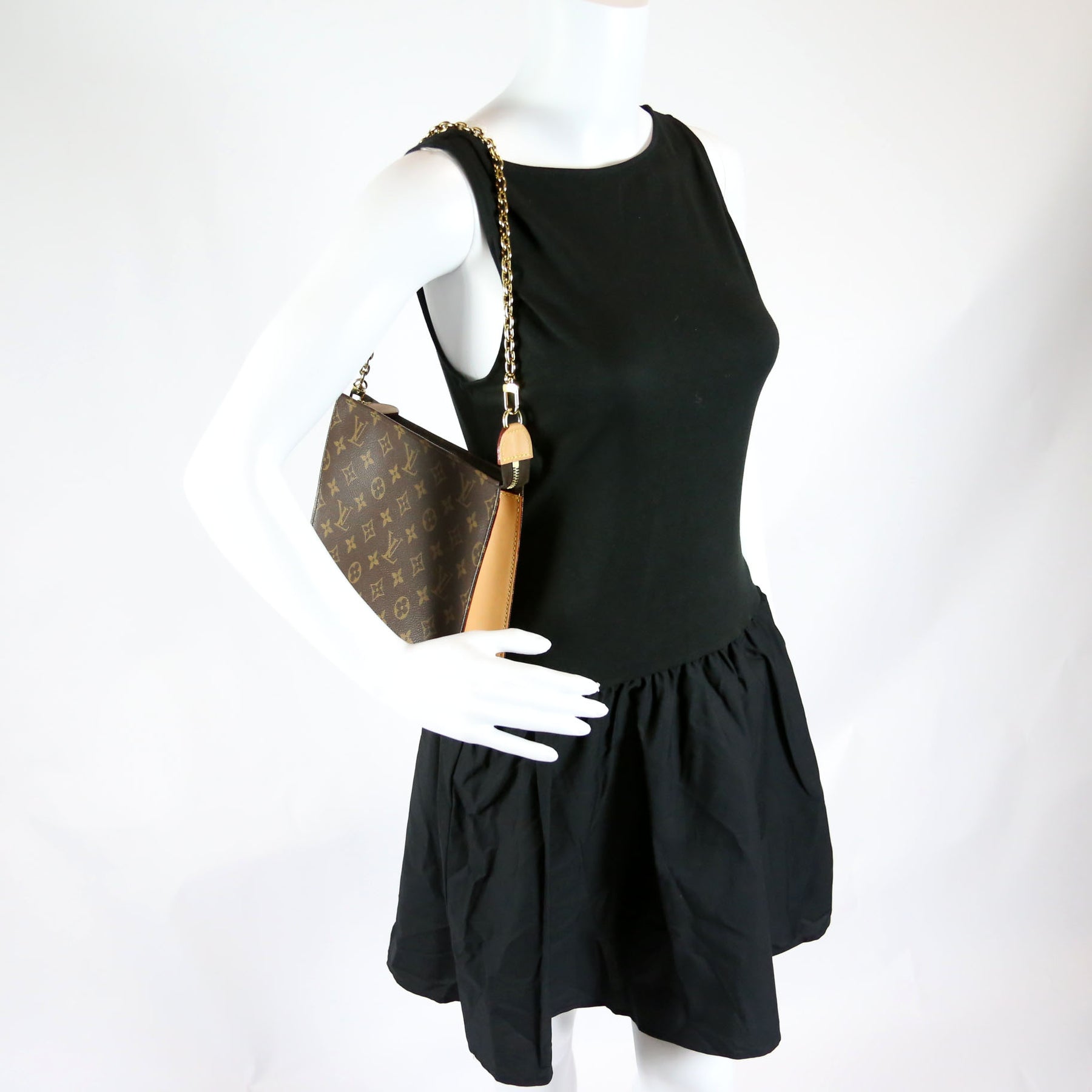 This pre-owned Louis Vuitton Toiletry Pouch On Chain is guaranteed 100% authentic. The exterior is in the classic Monogram coated canvas.