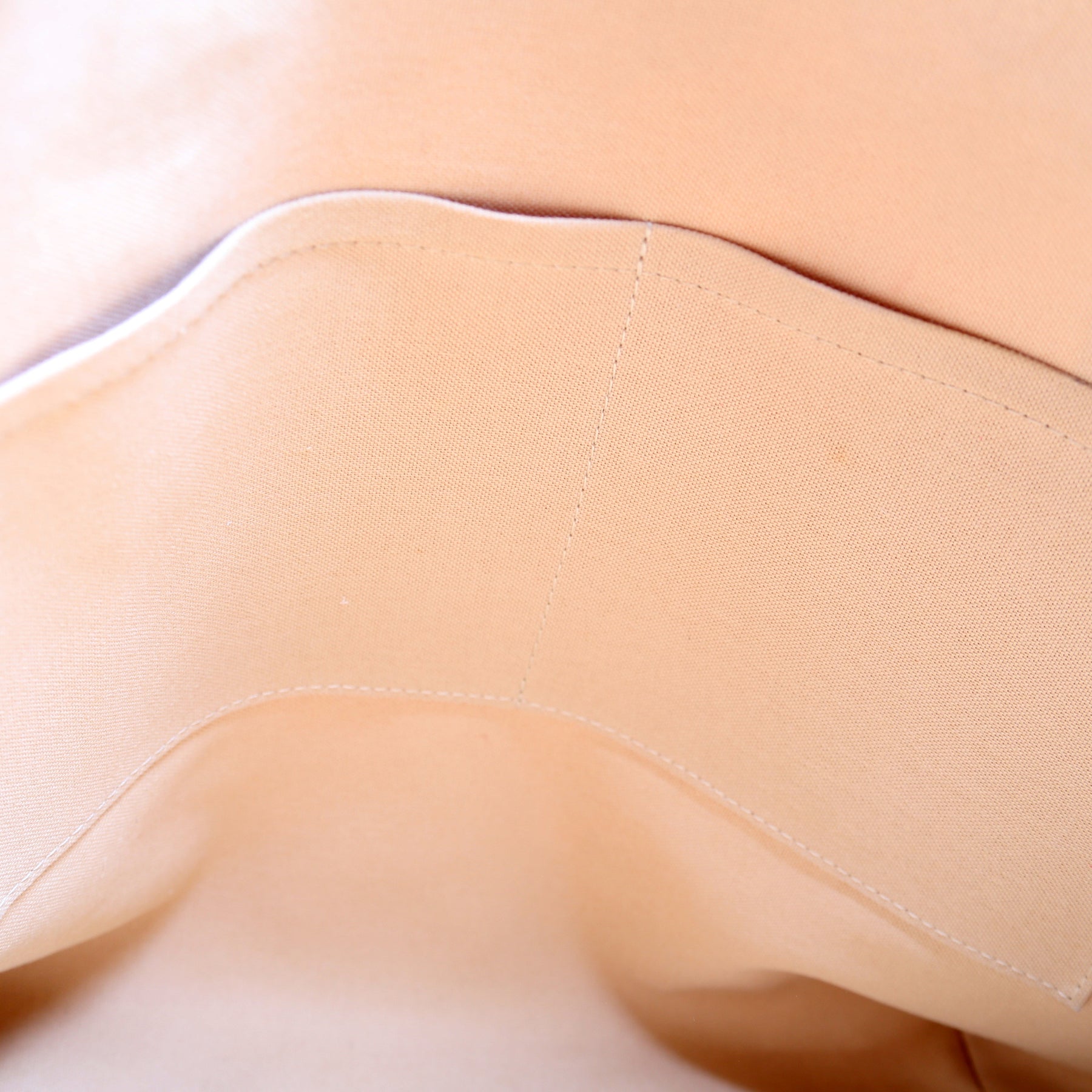 Exterior: The exterior coated canvas is free from any rips or cracks, there is light discoloration and scuffing throughout. The exterior features two open pockets. The leather trim shows minor discoloration and wear. The corners and edges show minor wear.