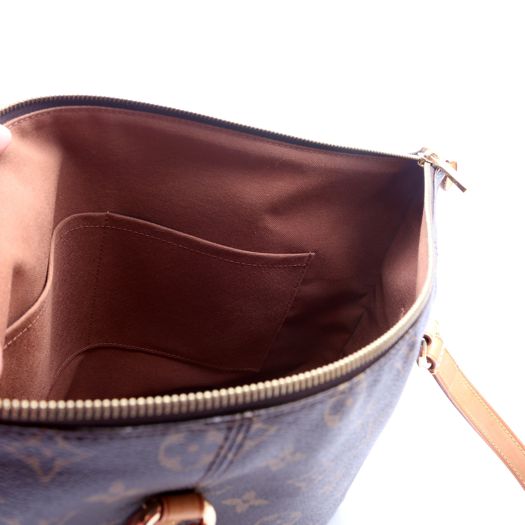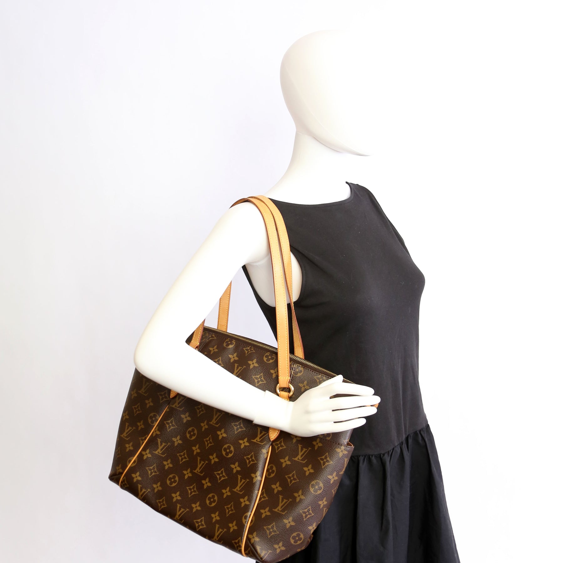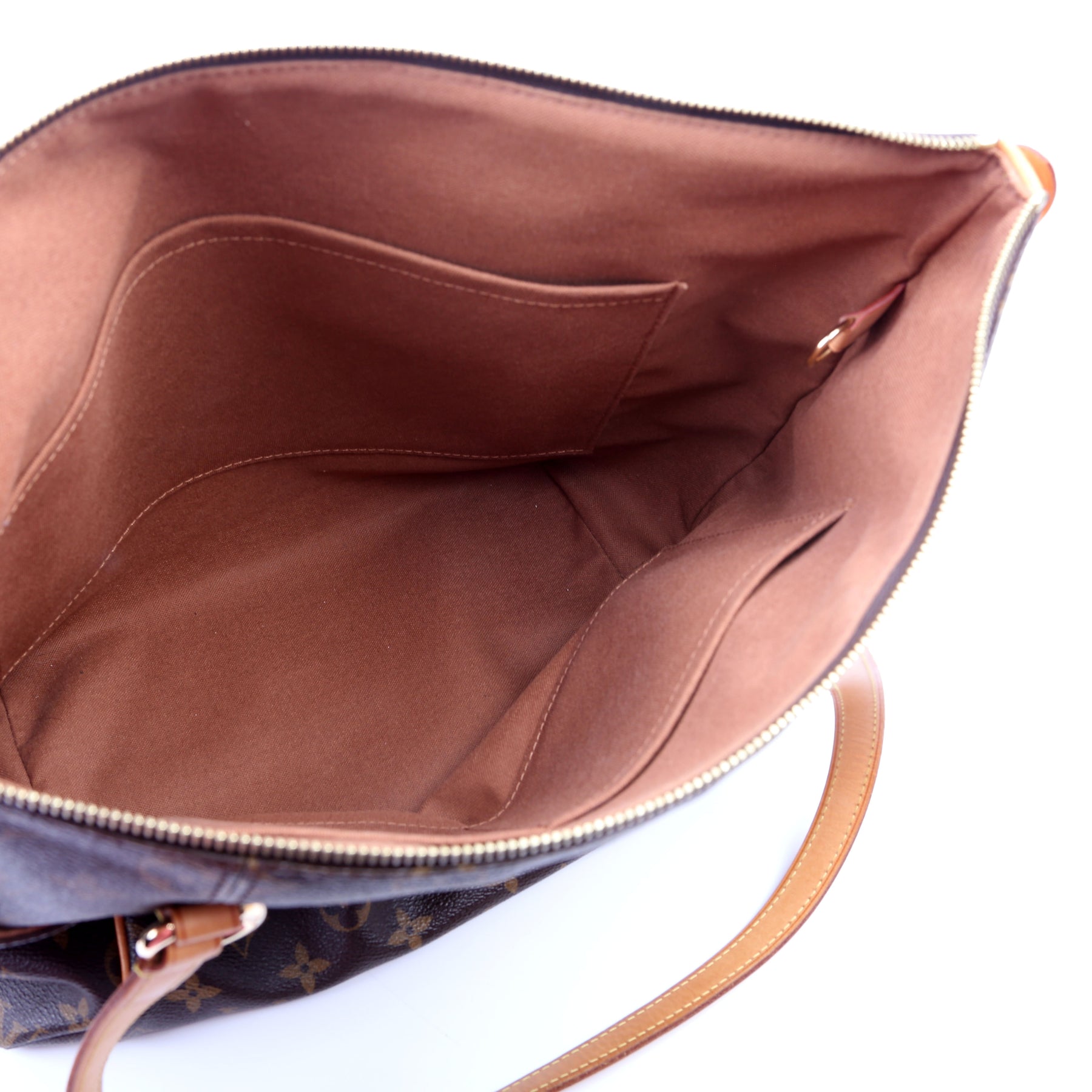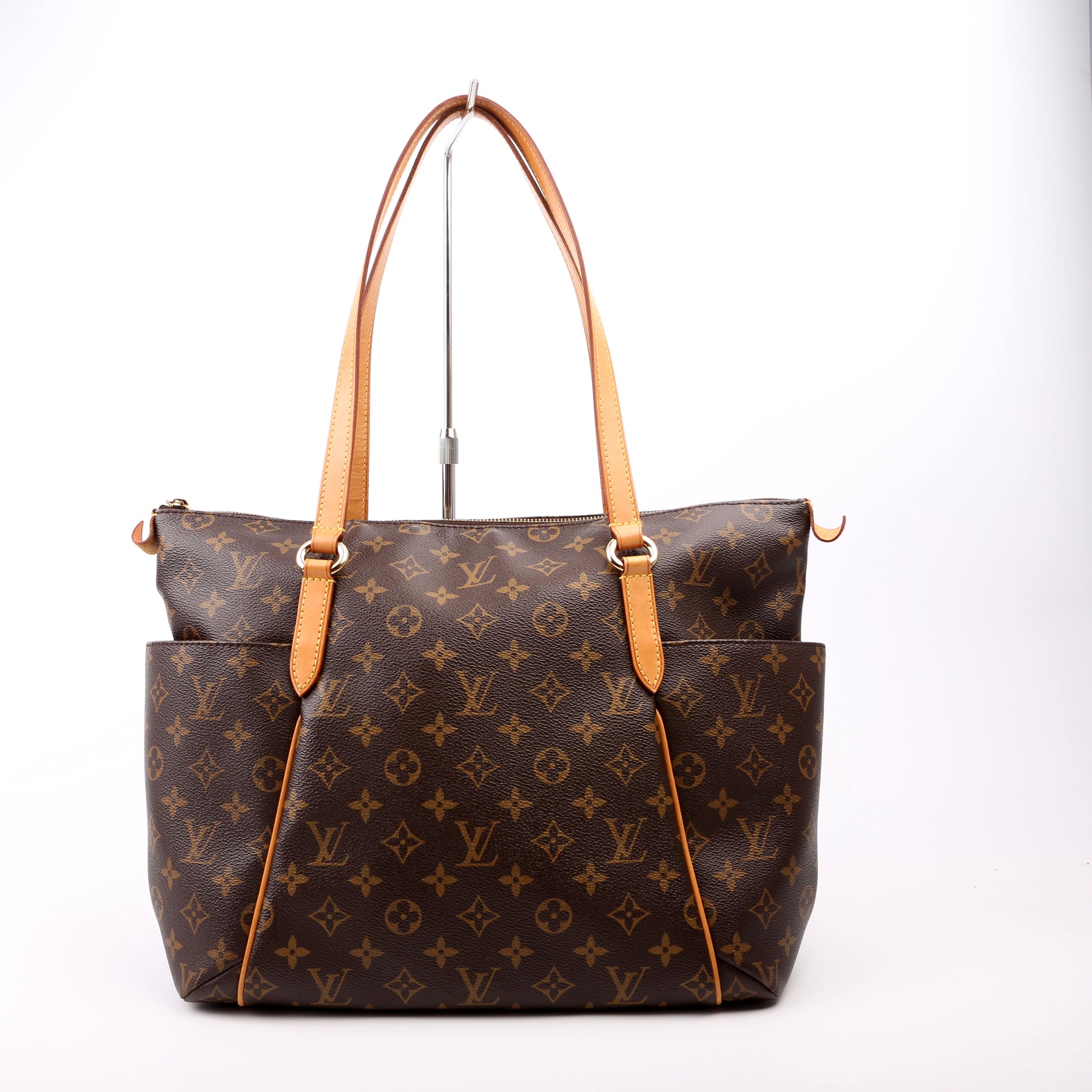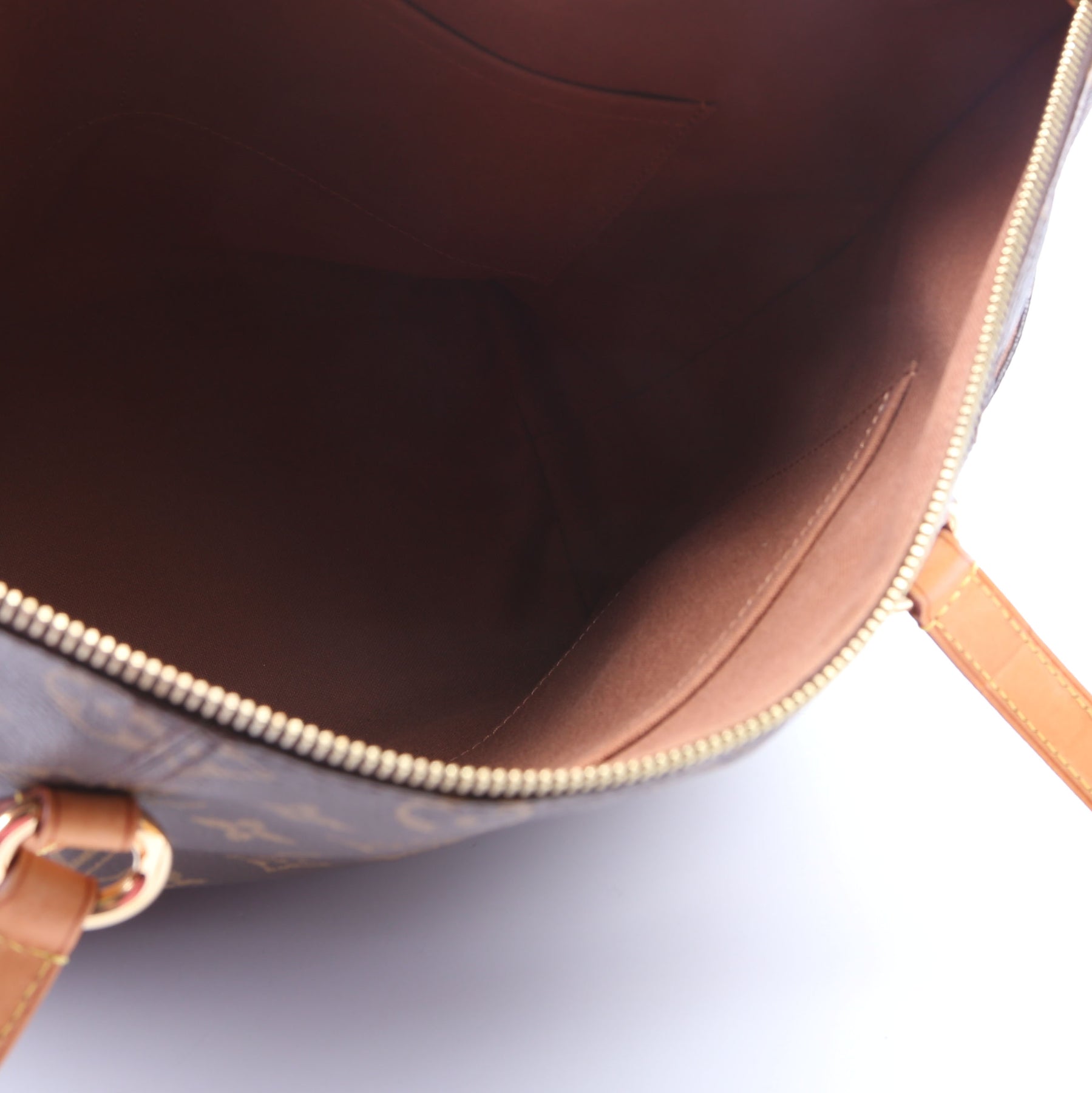 This pre-owned Louis Vuitton Totally MM is guaranteed 100% authentic. The exterior is in the classic Monogram coated canvas.