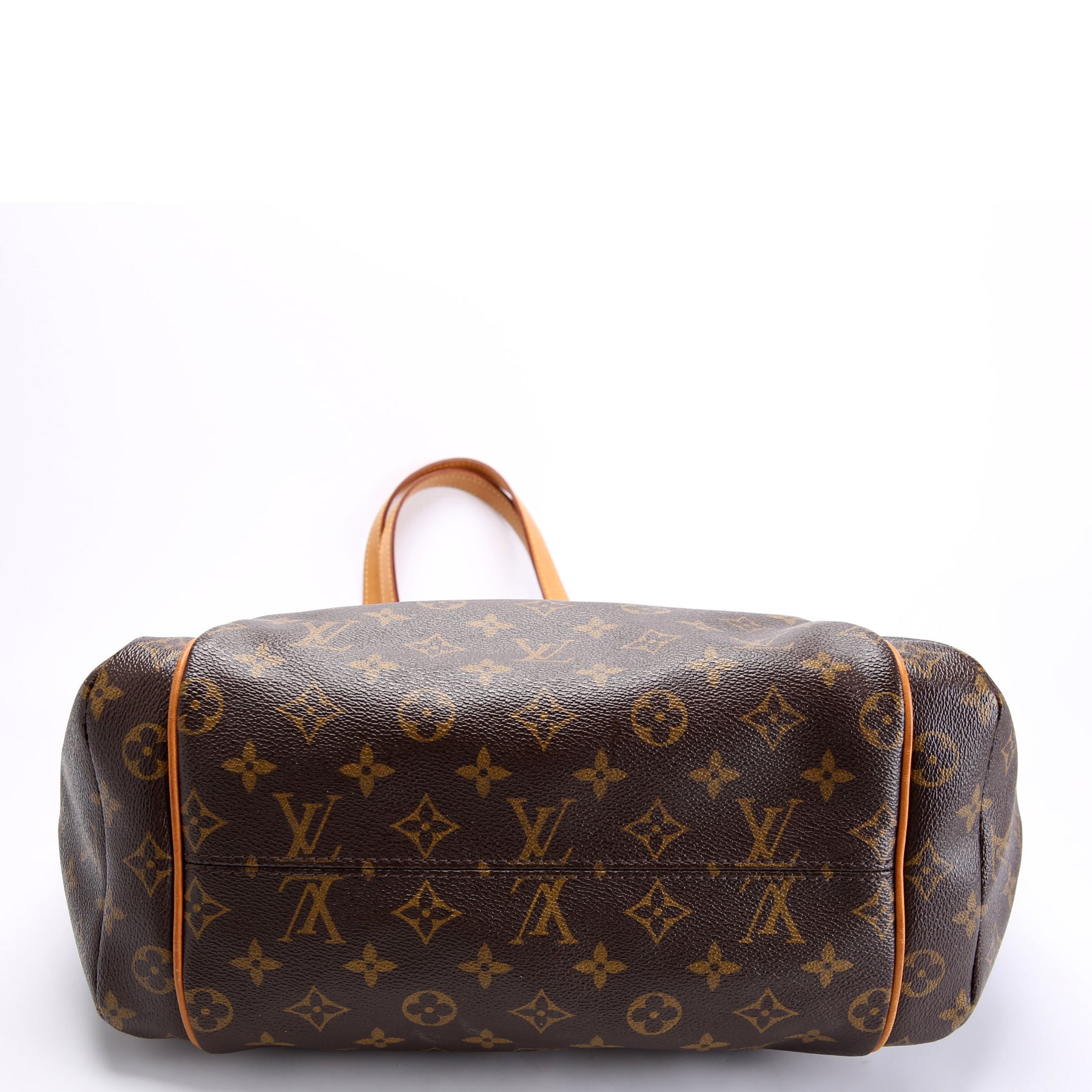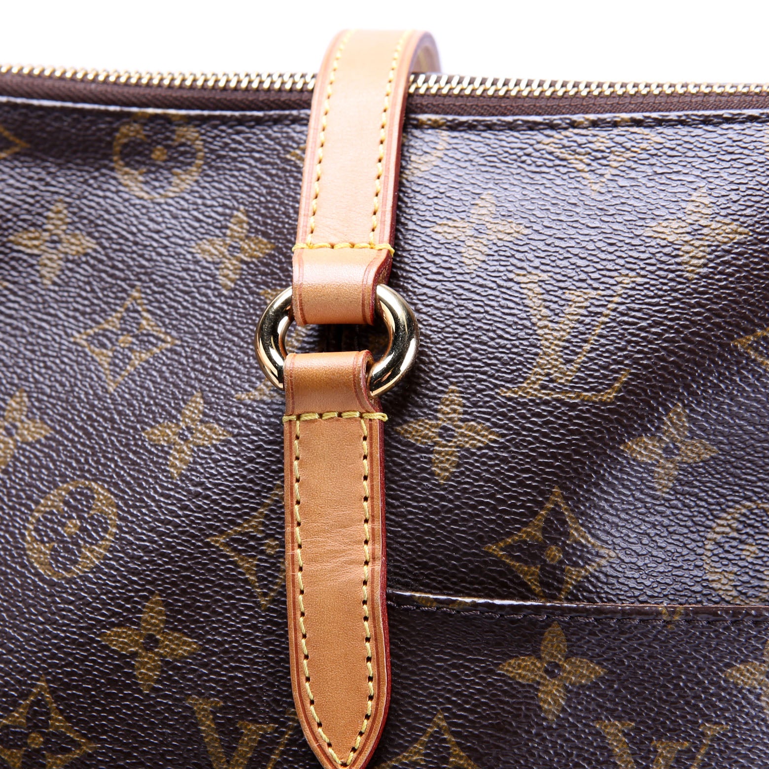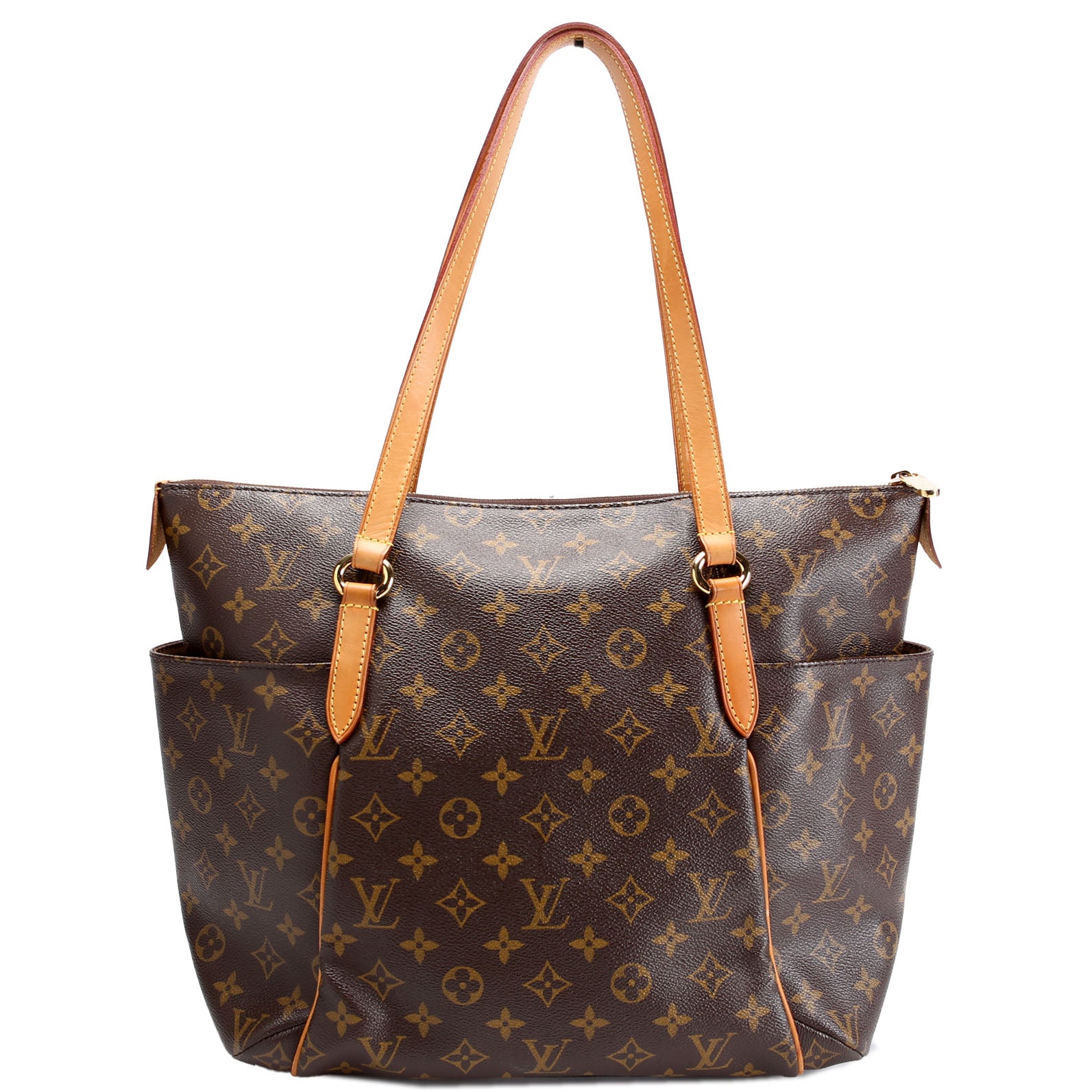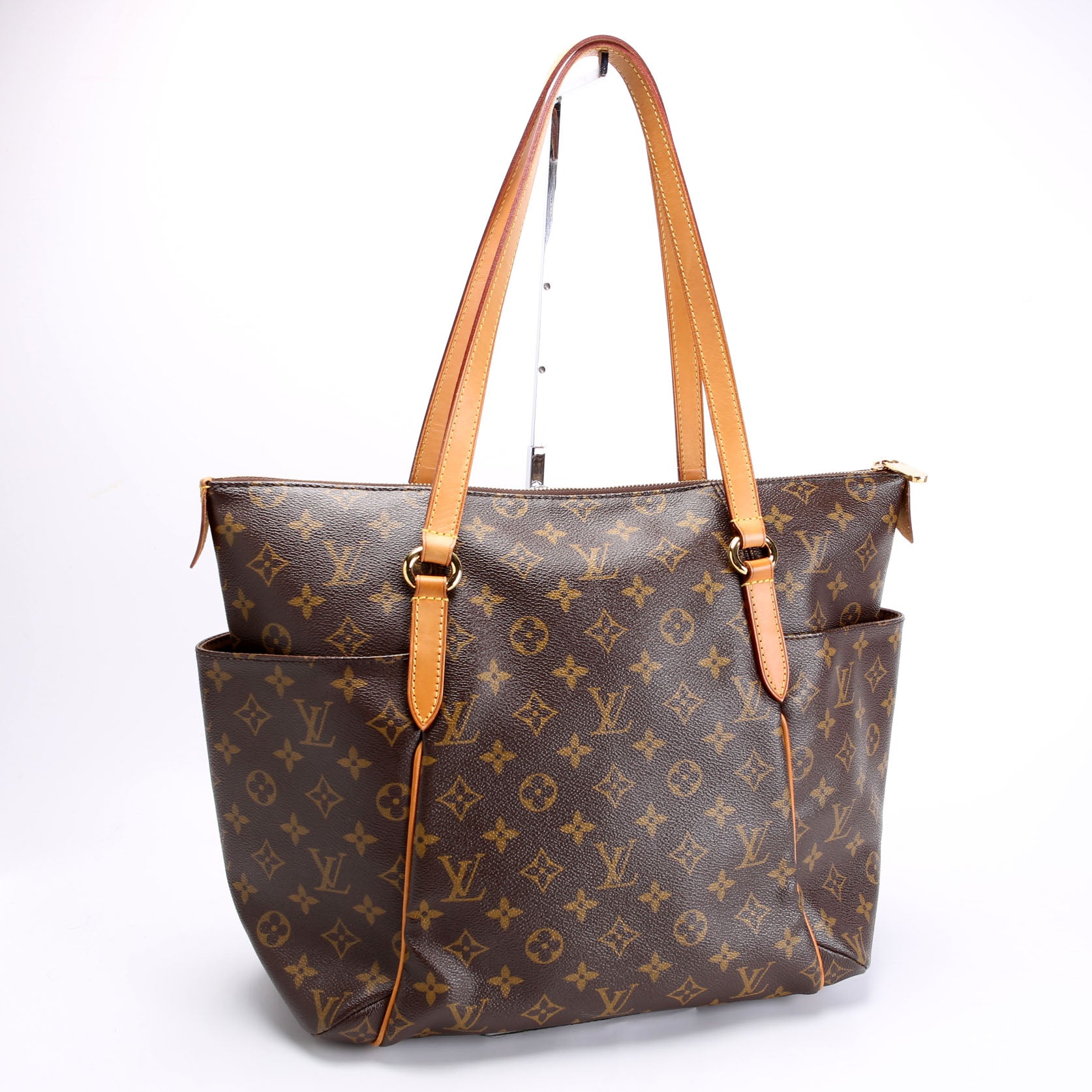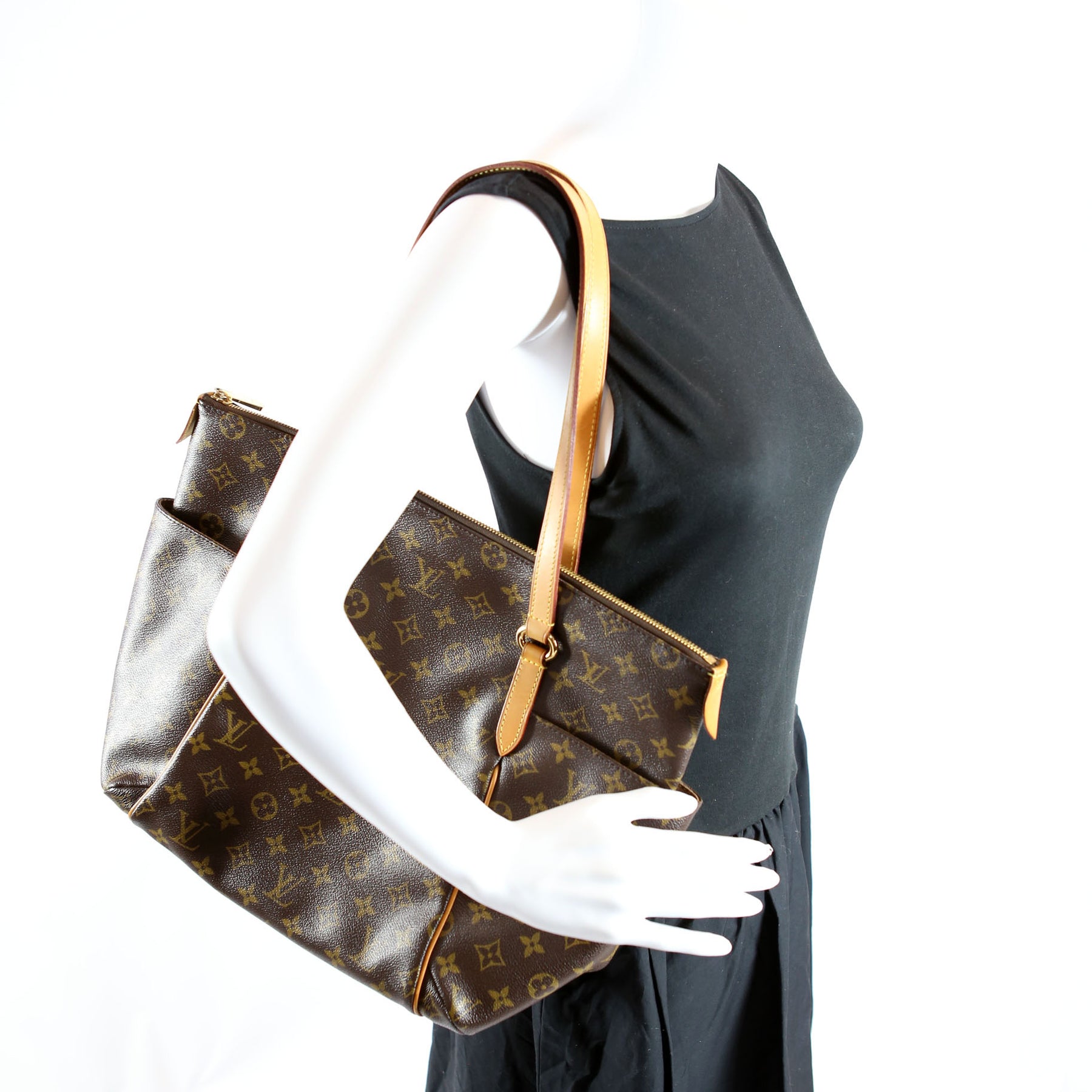 This pre-owned Louis Vuitton Totally MM is guaranteed 100% authentic. The exterior is in the classic Louis Vuitton Monogram coated canvas.