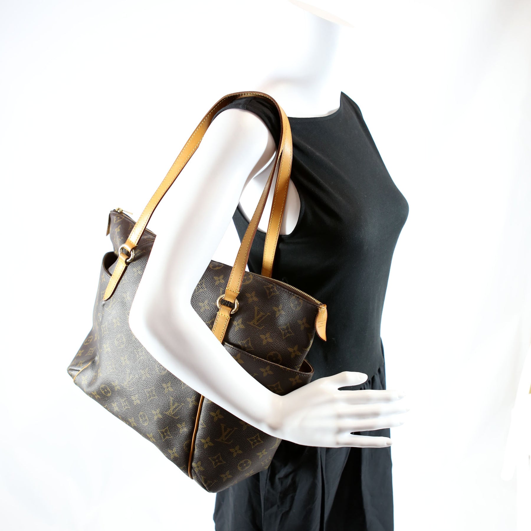 This pre-owned Louis Vuitton Totally MM Monogram is guaranteed 100% authentic. The exterior is in the classic Louis Vuitton Monogram Coated Canvas.