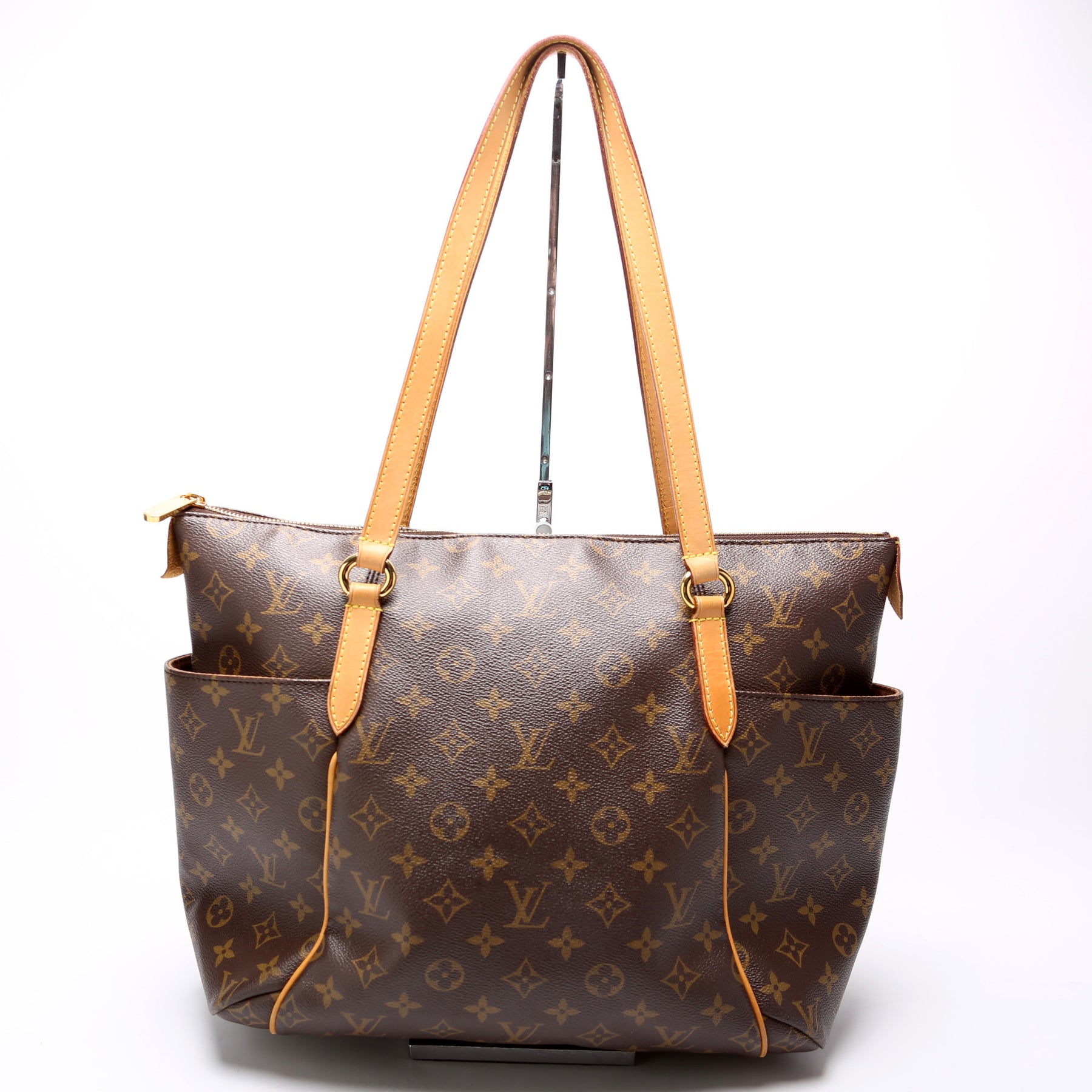 This pre-owned Louis Vuitton Totally MM is guaranteed 100% authentic. The exterior is in the classic Louis Vuitton Monogram coated canvas.
