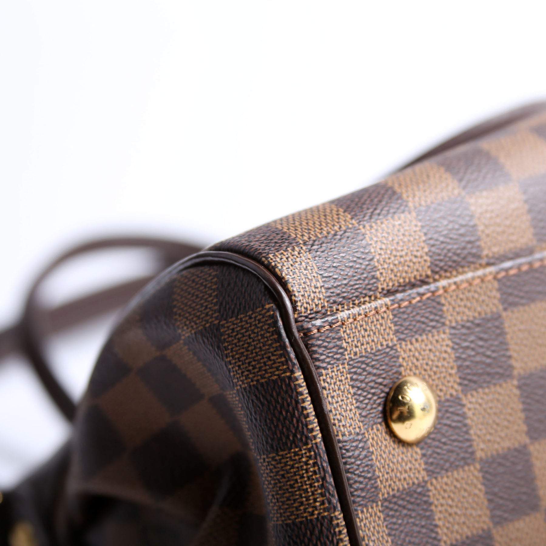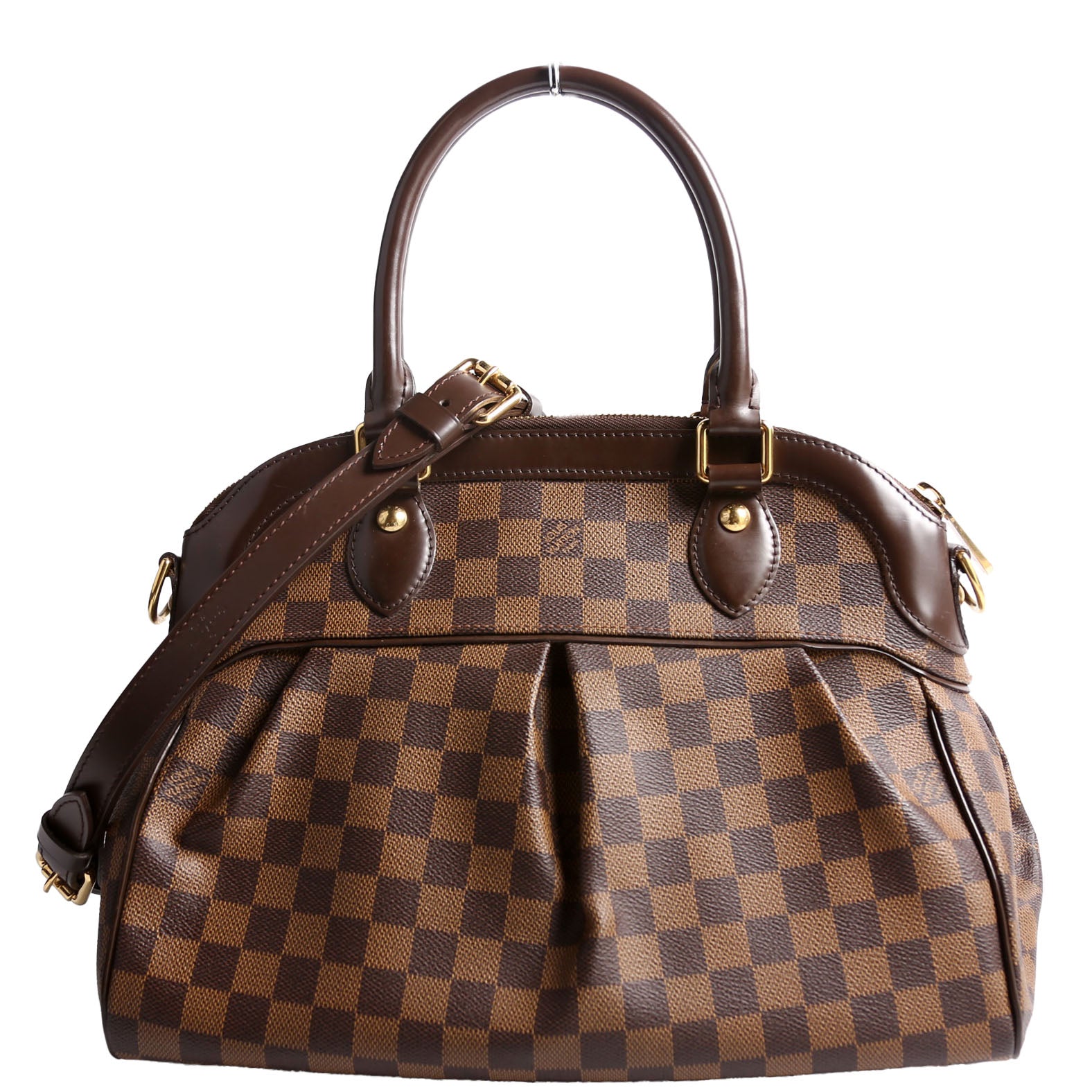 This pre-owned Louis Vuitton Trevi PM Ebene is guaranteed 100% authentic. The exterior is in the classic Louis Vuitton Ebene coated canvas.
