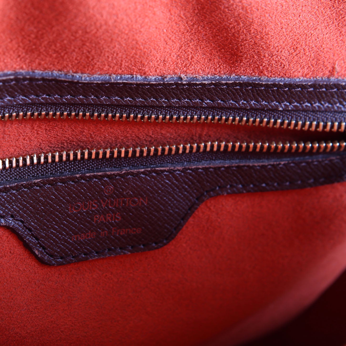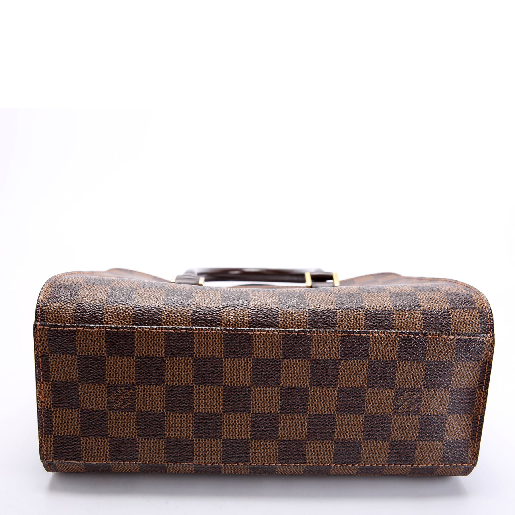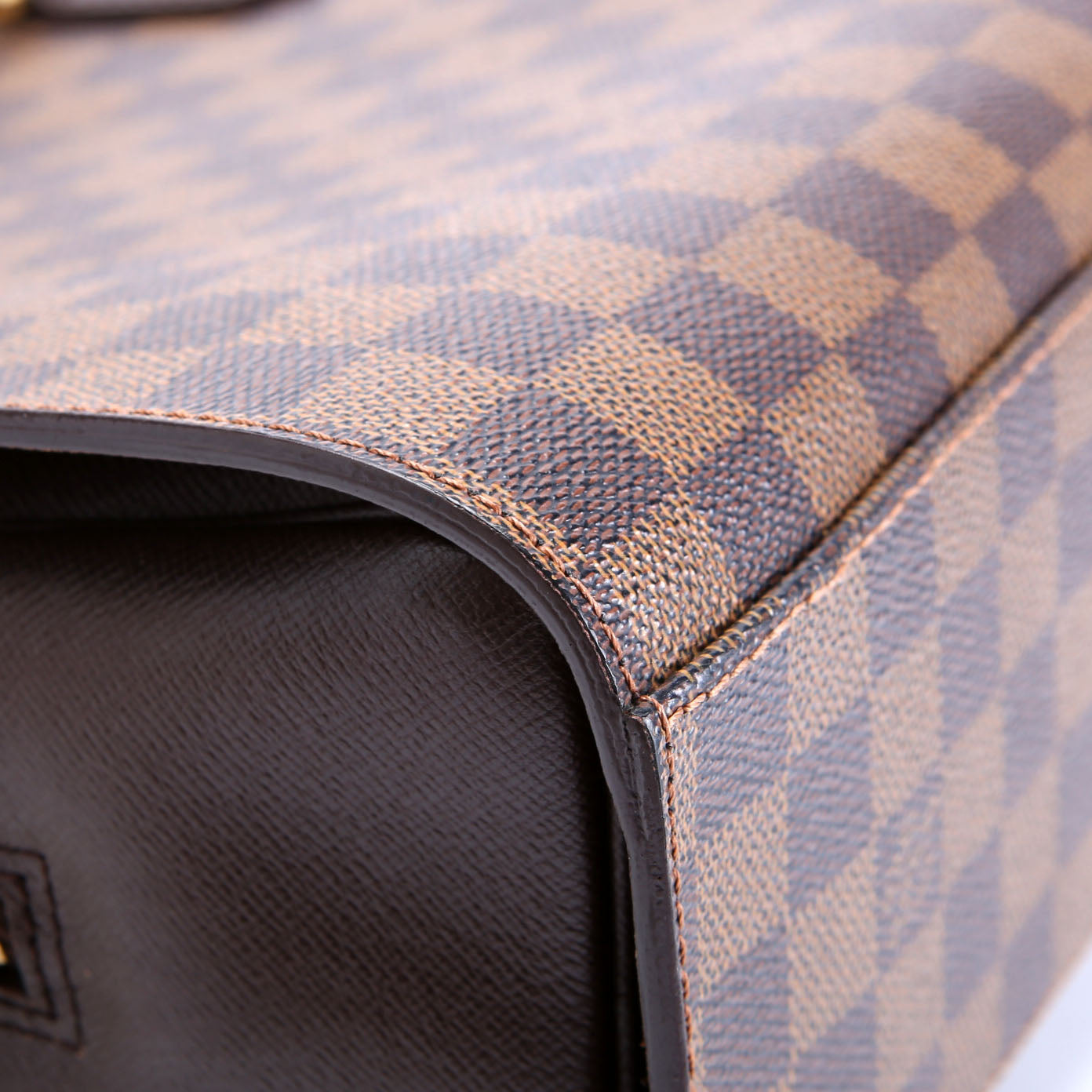 This pre-owned Louis Vuitton Triana is guaranteed 100% authentic. The exterior is in the classic Louis Vuitton Damier Ebene coated canvas.