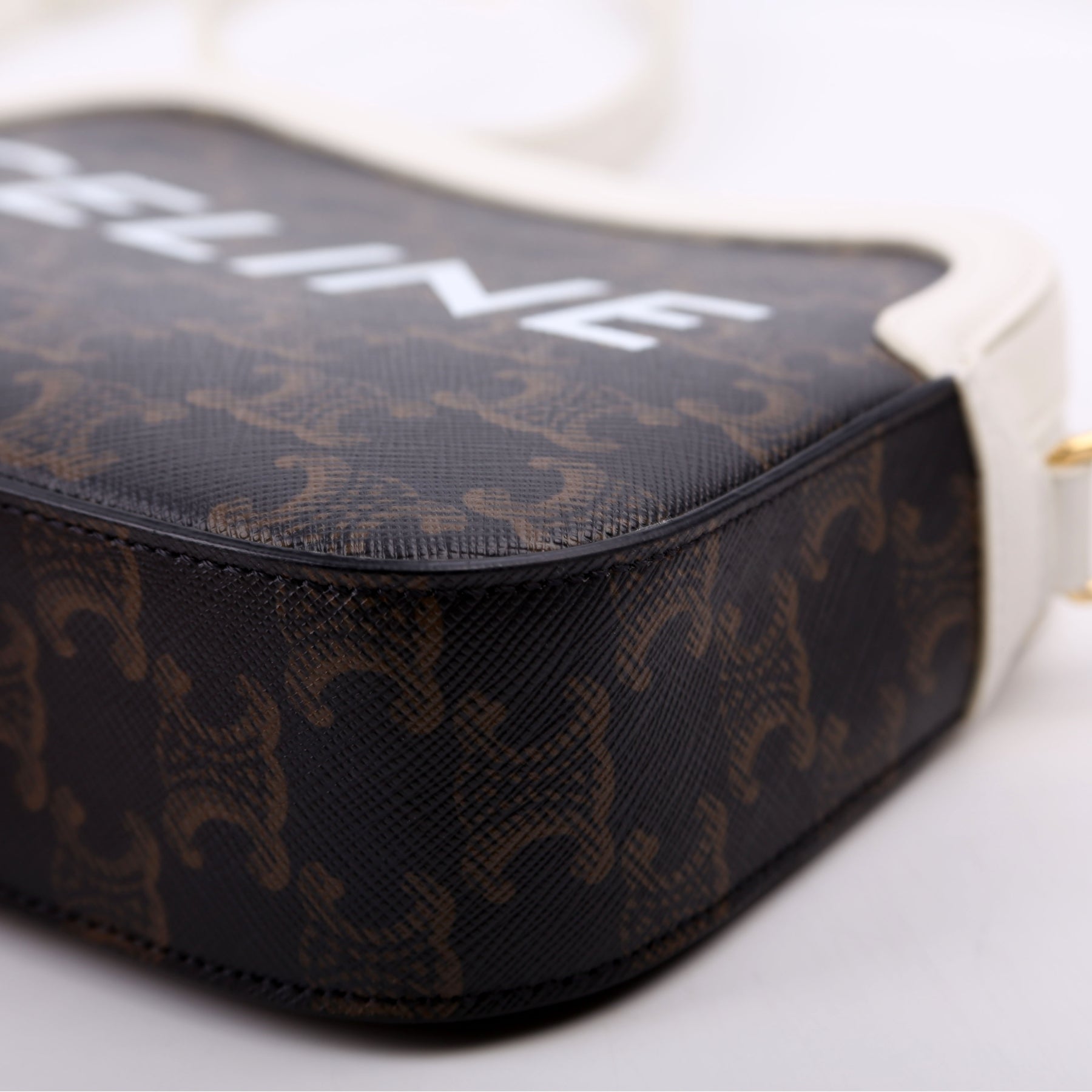 This pre-owned Celine Triomphe Canvas Camera Small is guaranteed 100% authentic. The exterior is in the classic Celine Triomphe canvas.
