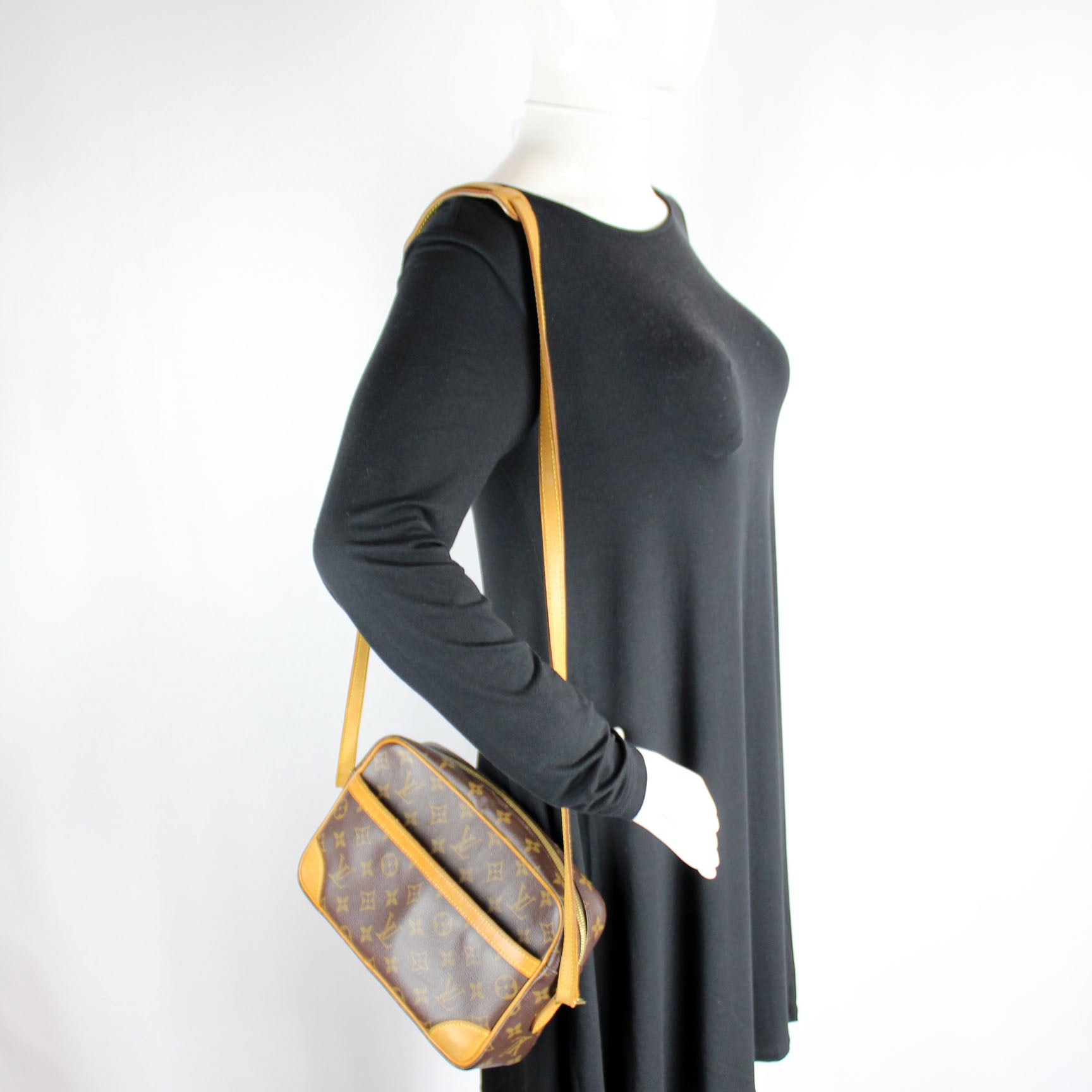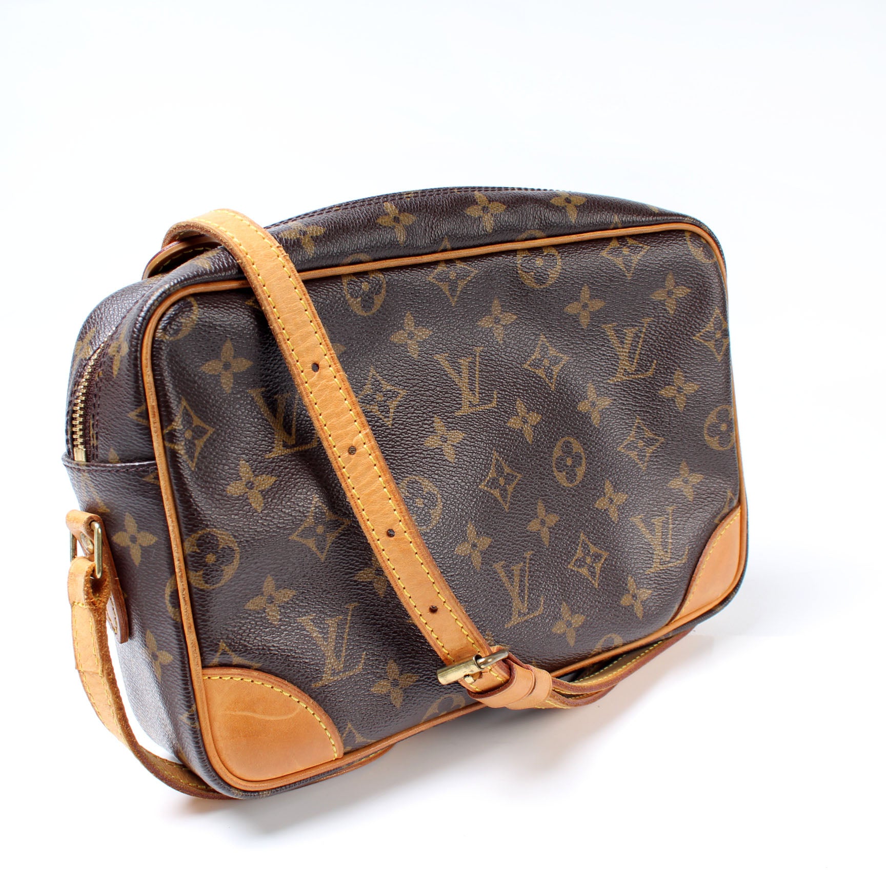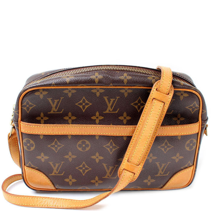 This pre-owned Louis Vuitton Trocadero 27 is guaranteed 100% authentic. The exterior is in the classic Louis Vuitton Monogram coated canvas.