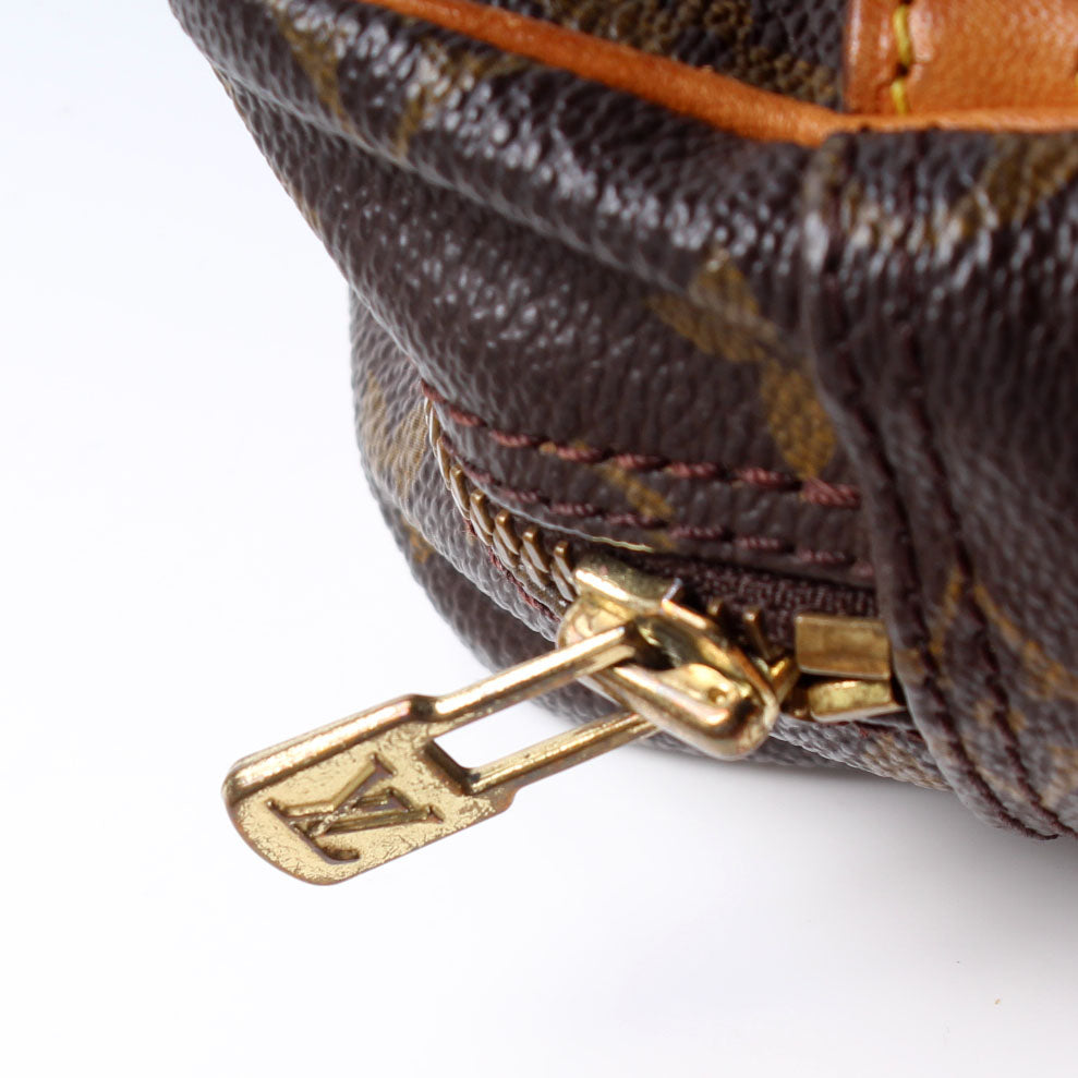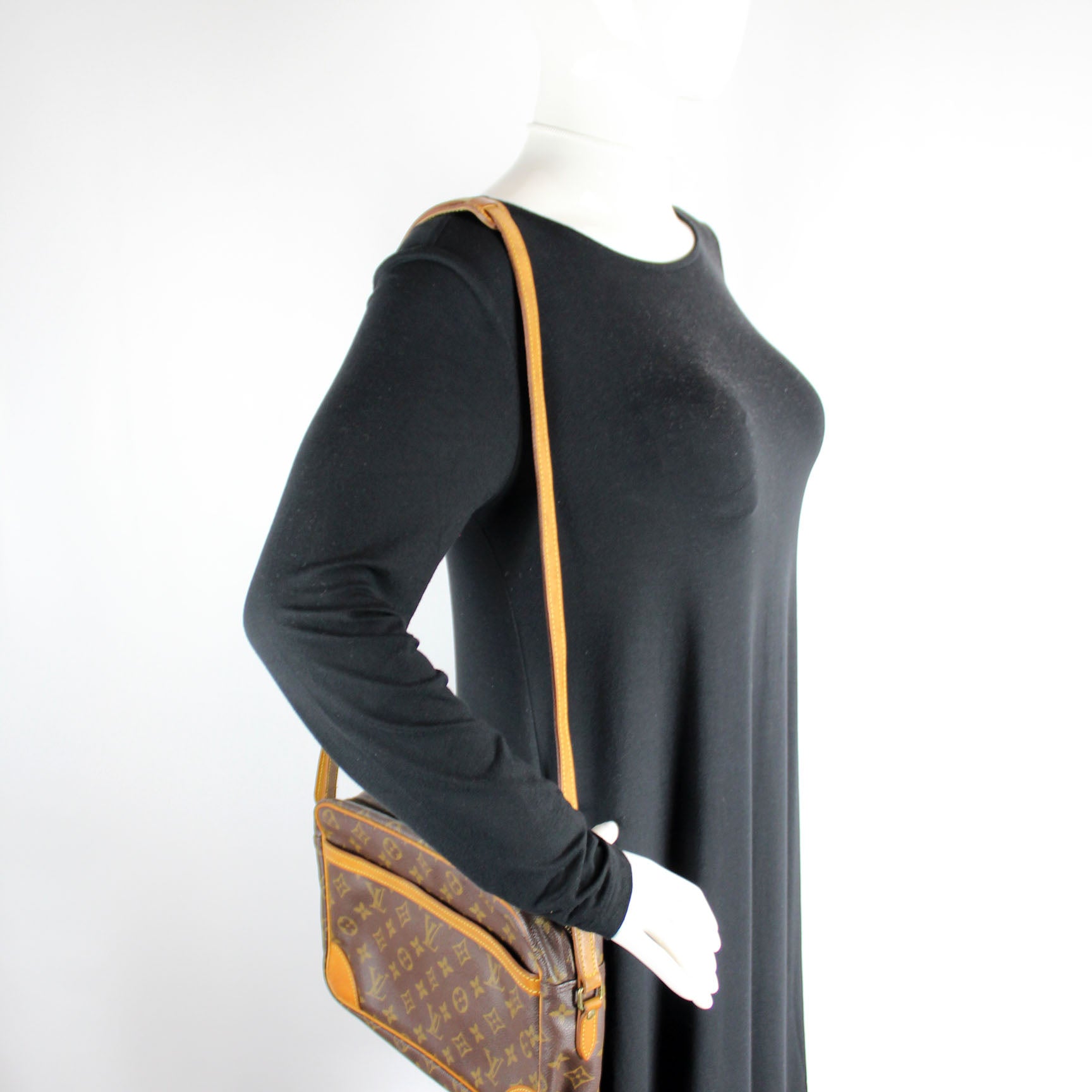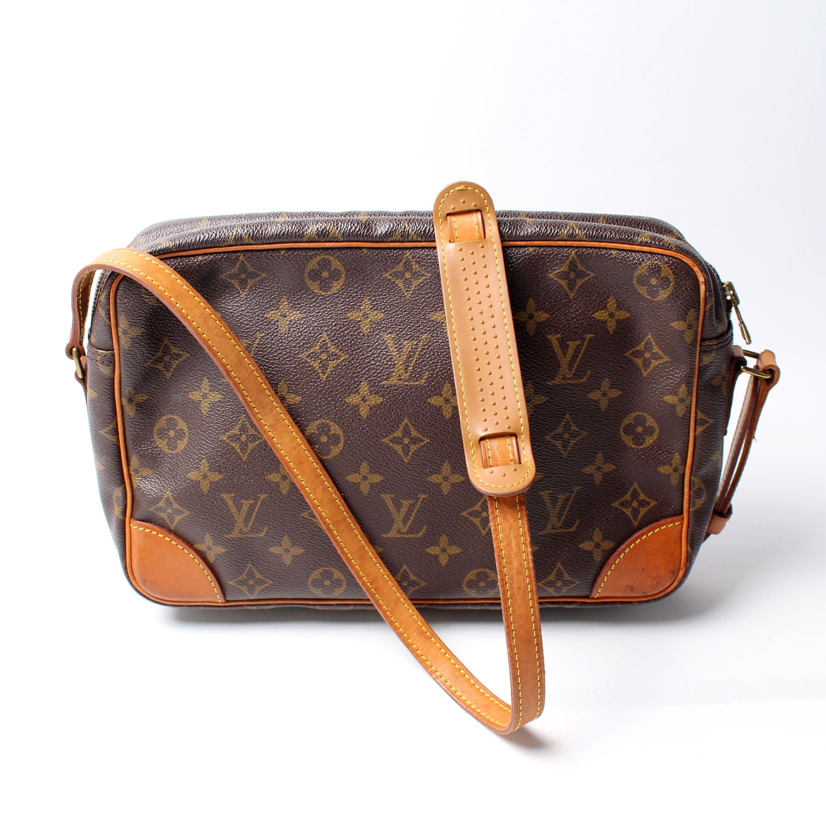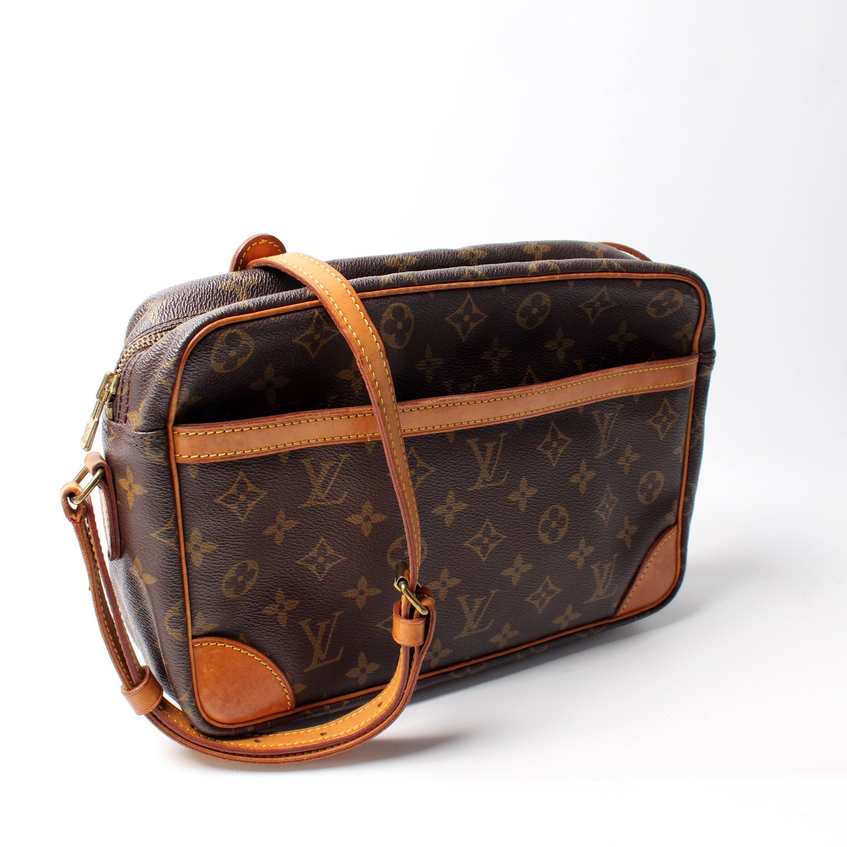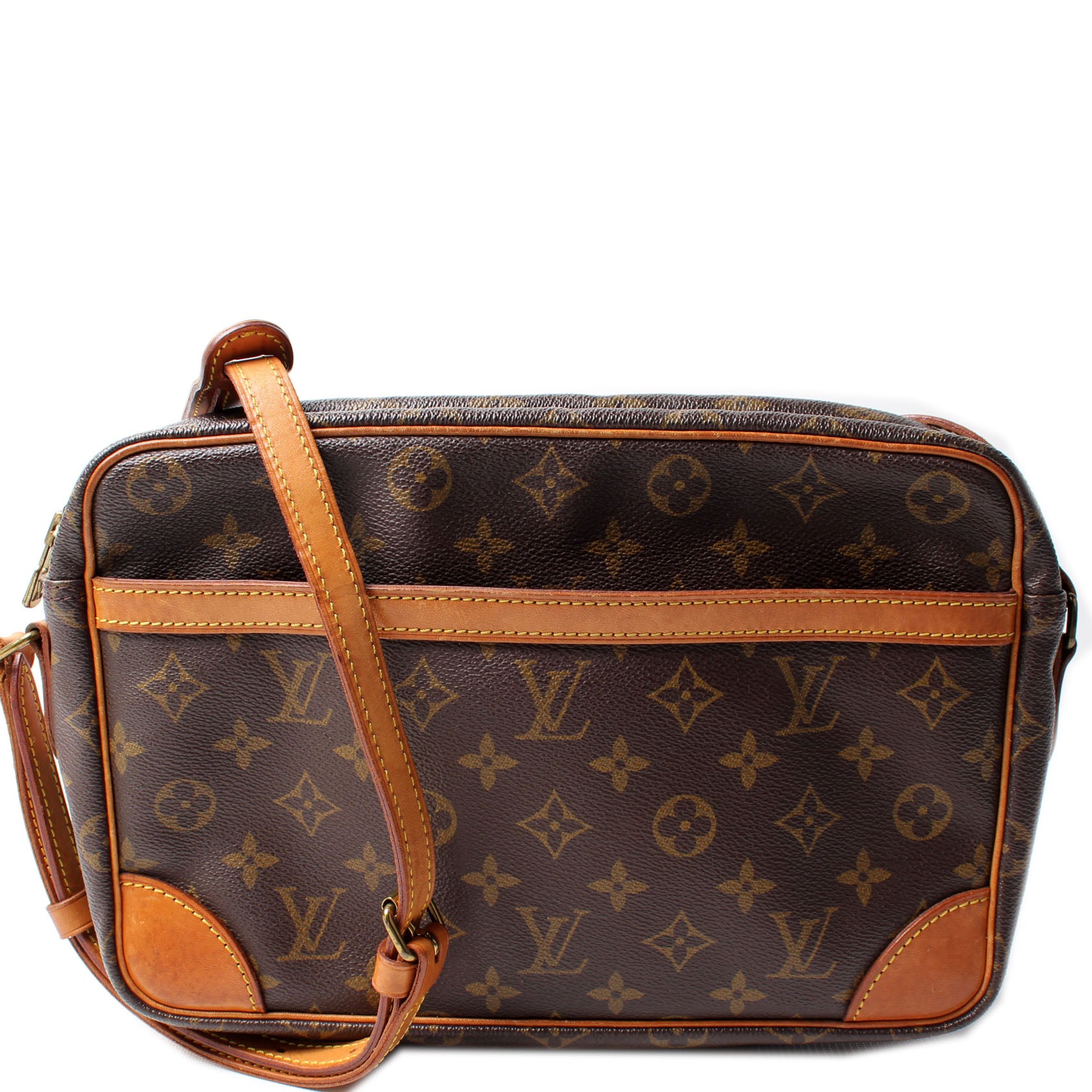 This pre-owned Louis Vuitton Trocadero 30 is guaranteed 100% authentic. The exterior is in the classic Louis Vuitton Monogram coated canvas.