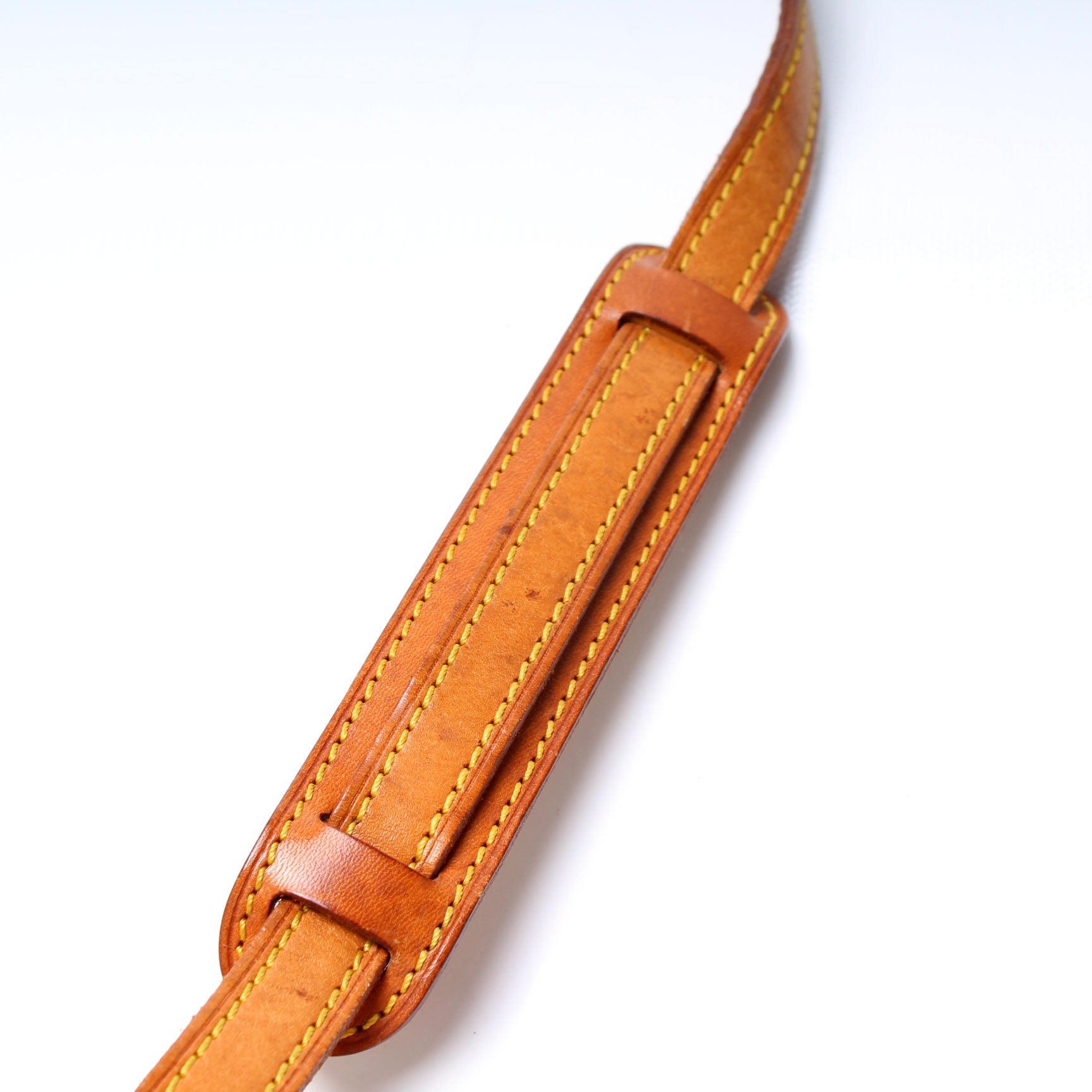 Strap: The shoulder strap shows signs of discoloration and wear.