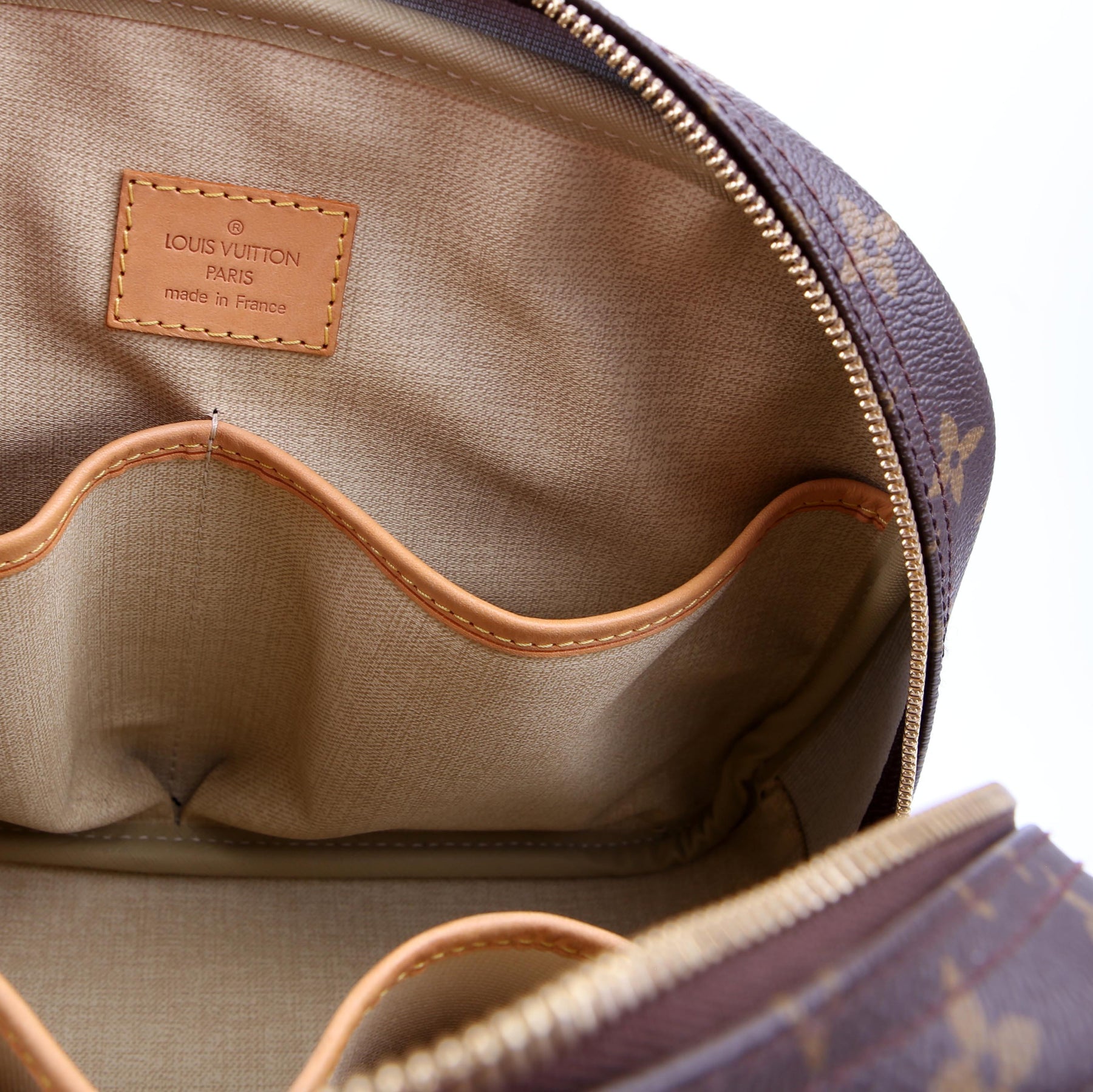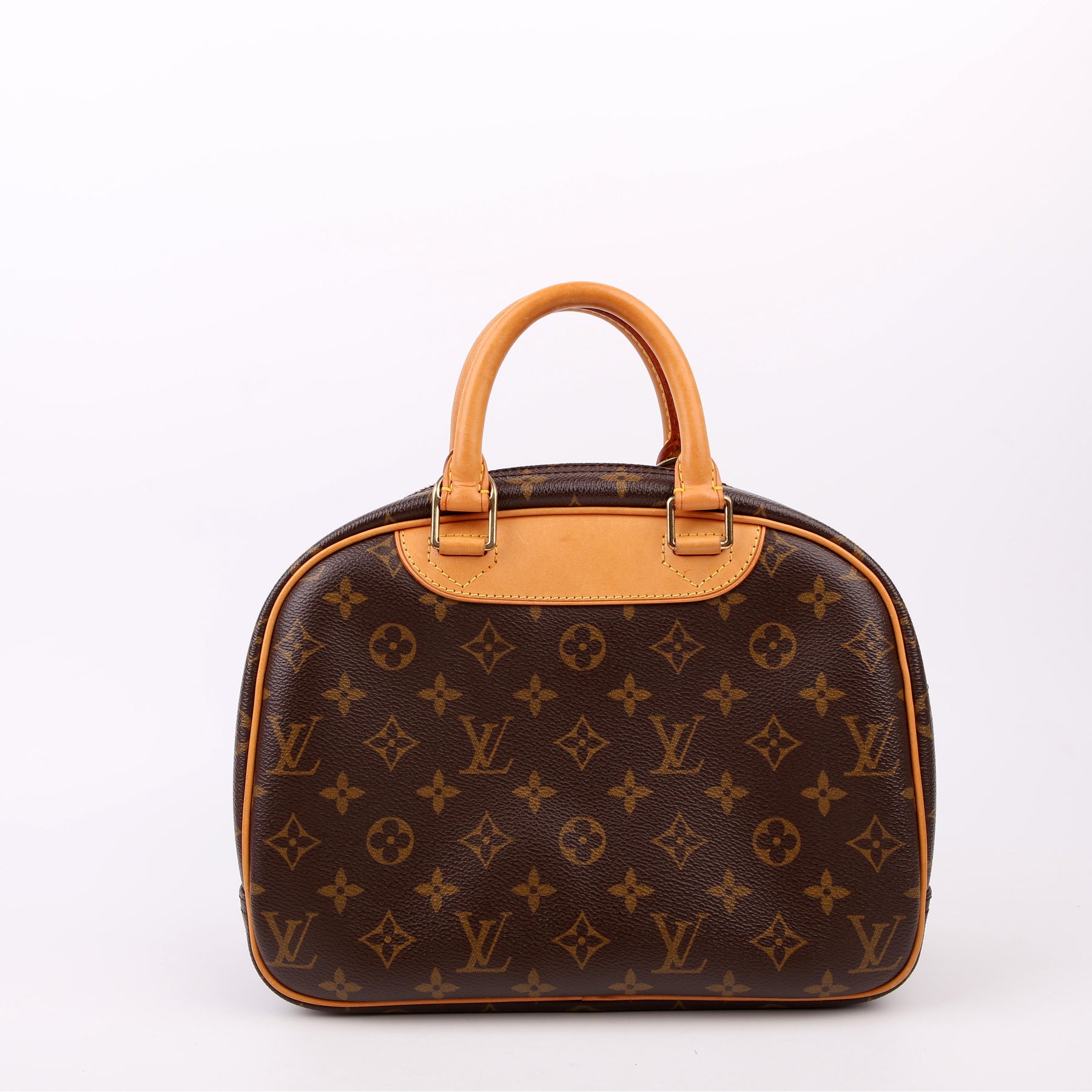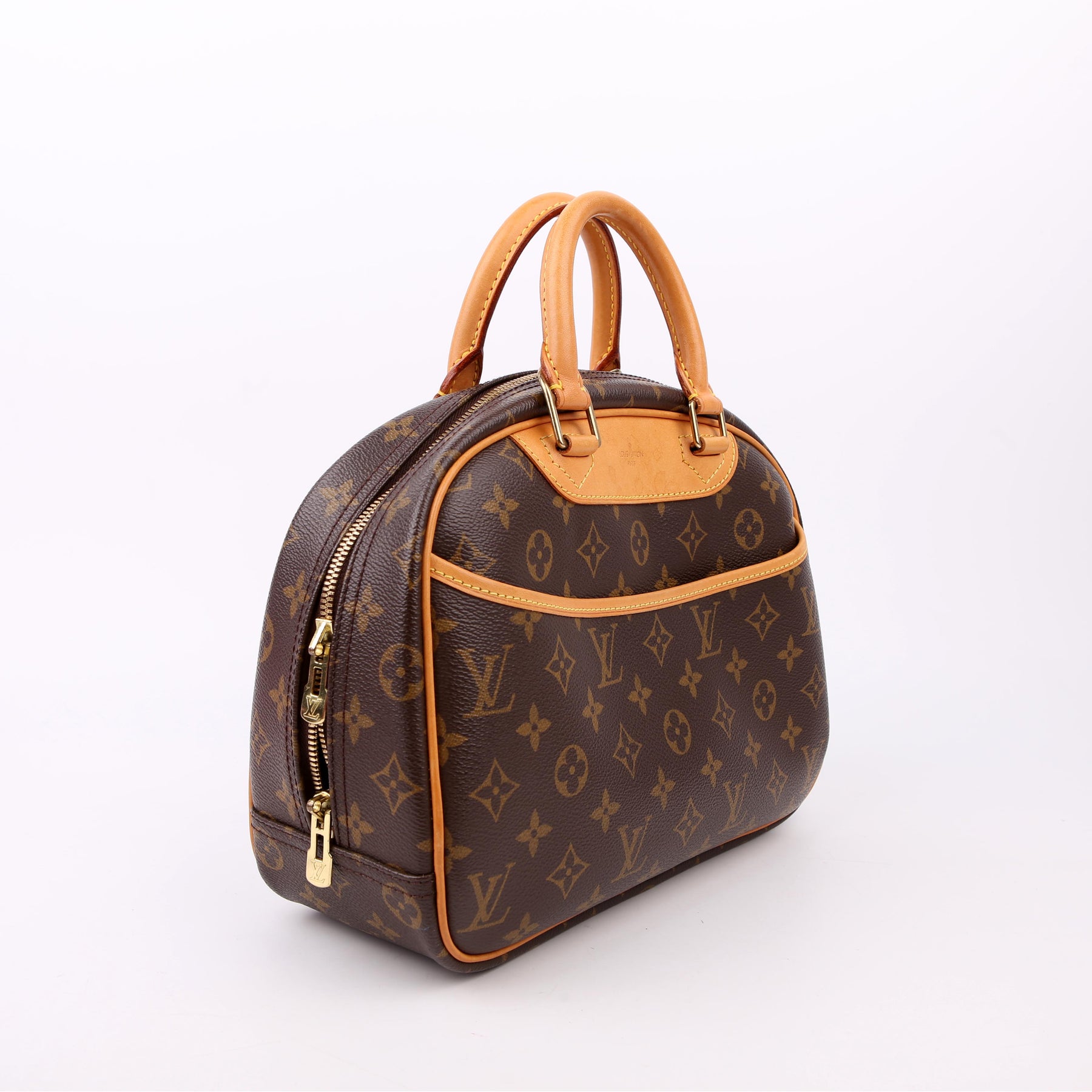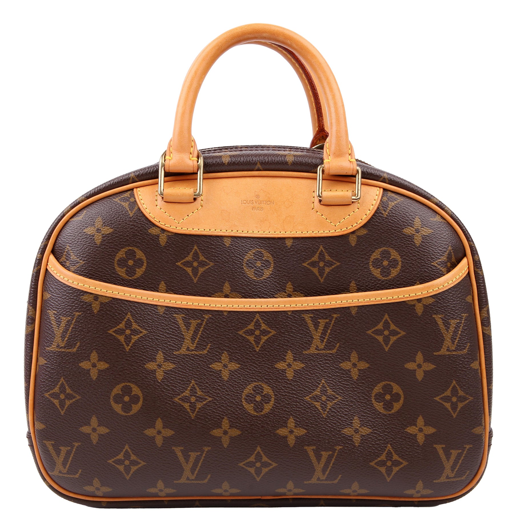 This pre-owned Louis Vuitton Trouville is guaranteed 100% authentic. The exterior is in the classic Louis Vuitton Monogram coated canvas.