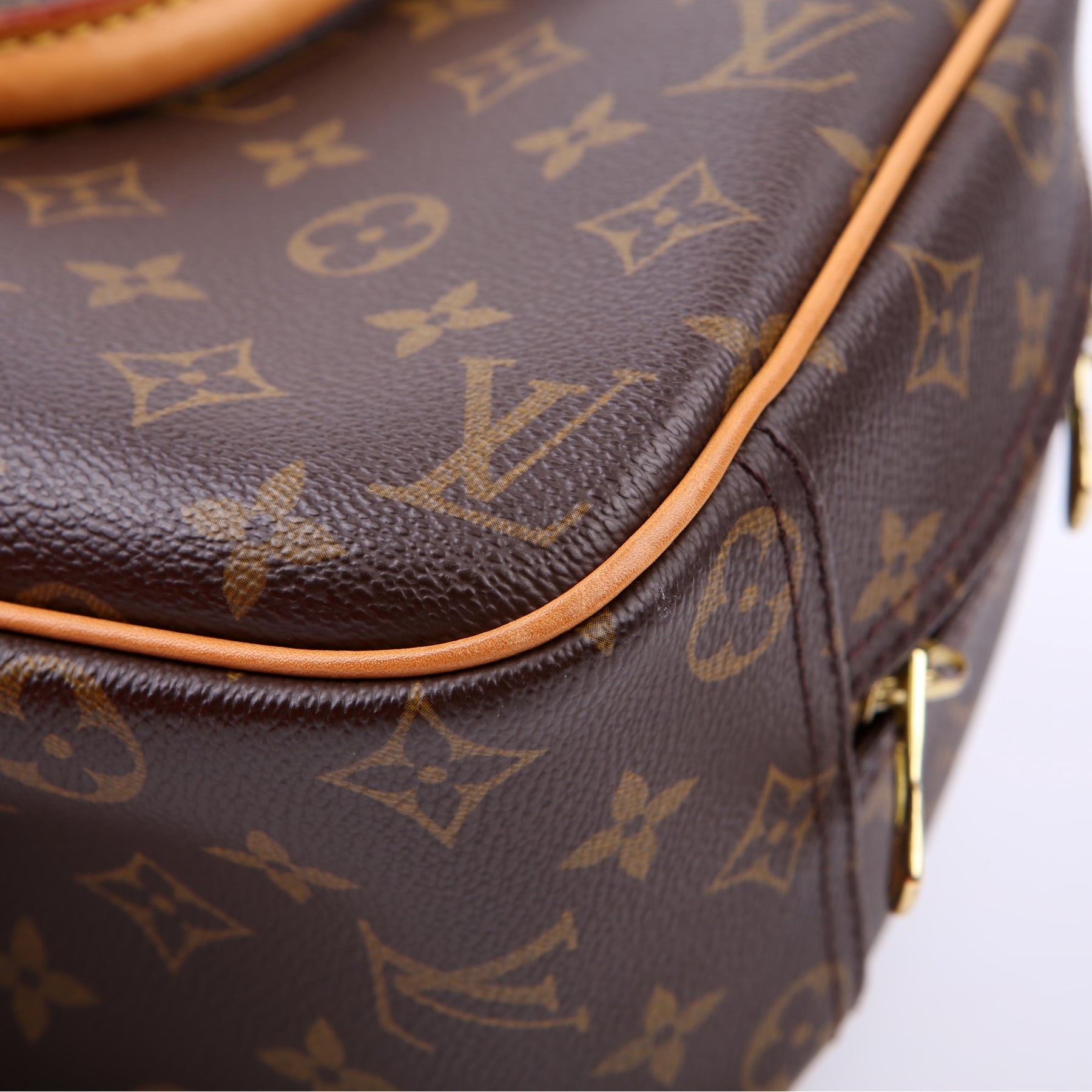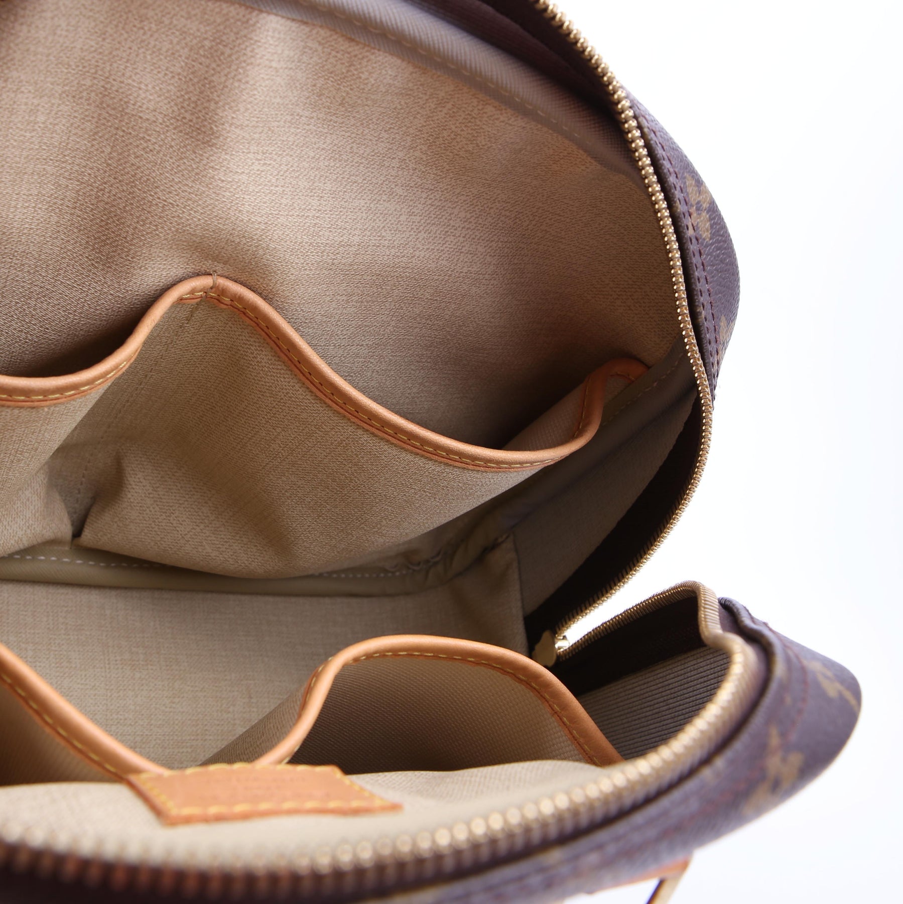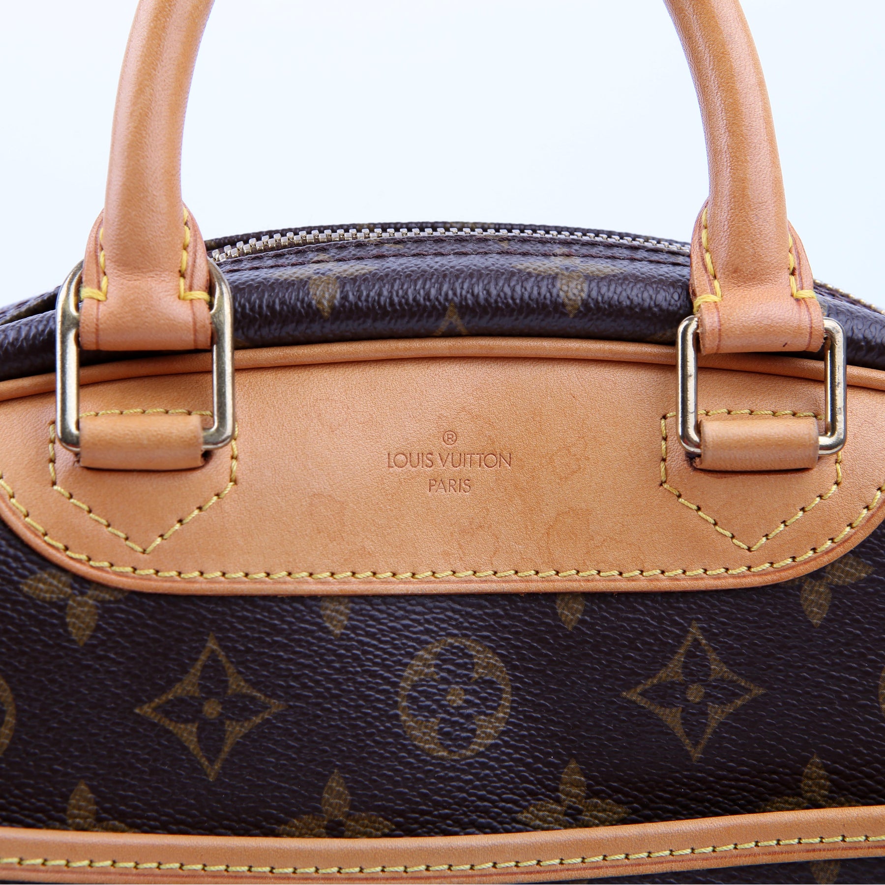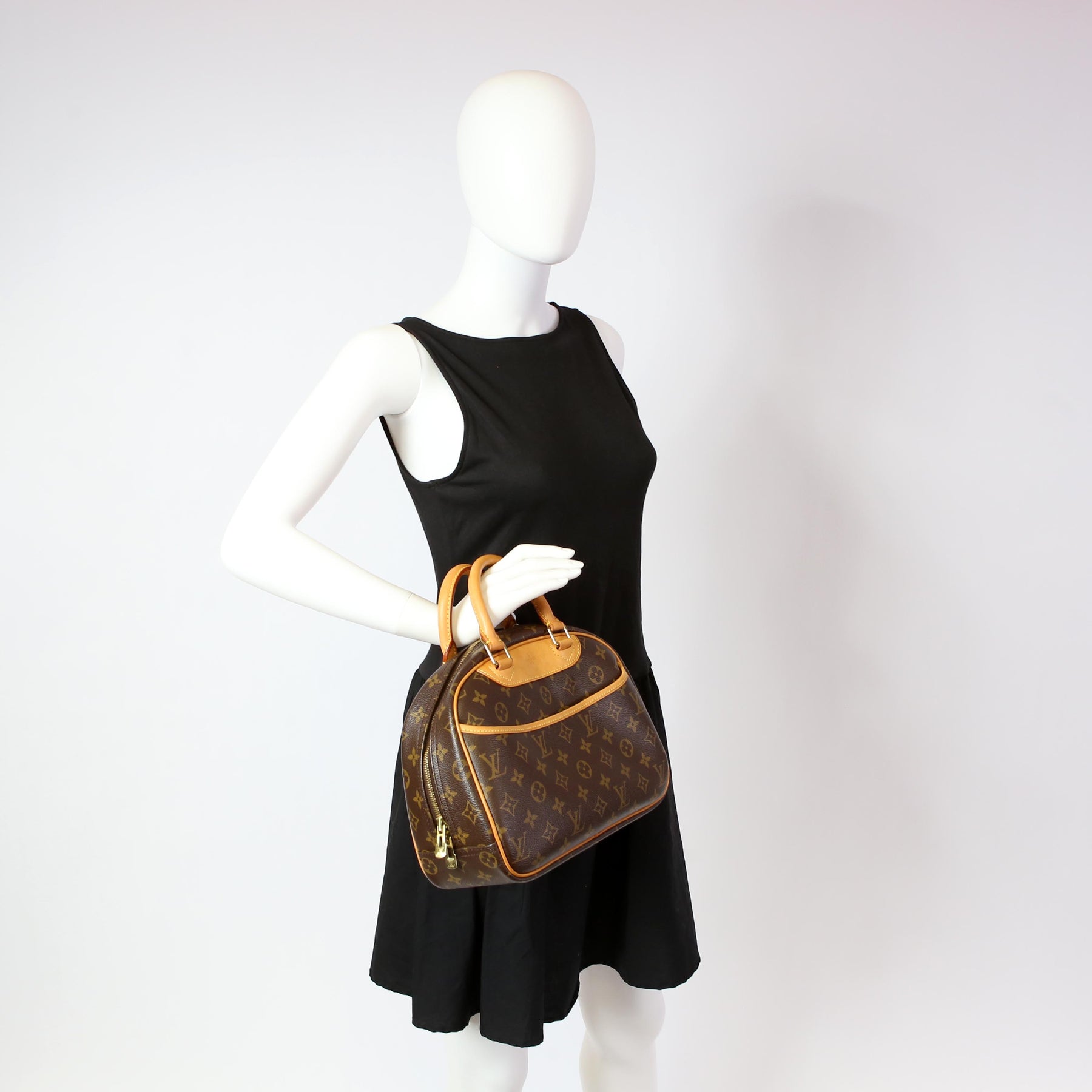 This pre-owned Louis Vuitton Trouville is guaranteed 100% authentic. The exterior is in the classic Louis Vuitton Monogram coated canvas.