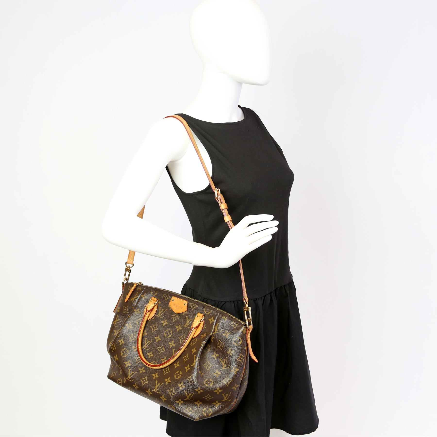 This pre-owned Louis Vuitton Turenne MM is guaranteed 100% authentic. The exterior is in the classic Louis Vuitton Monogram coated canvas.