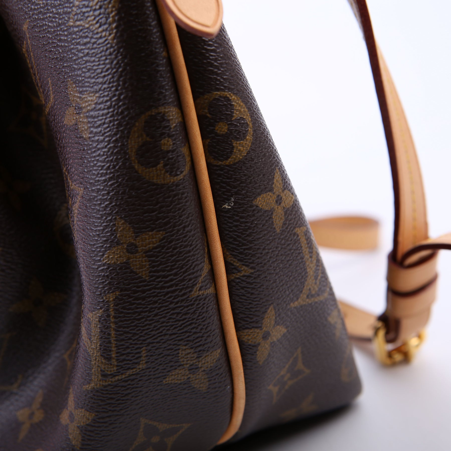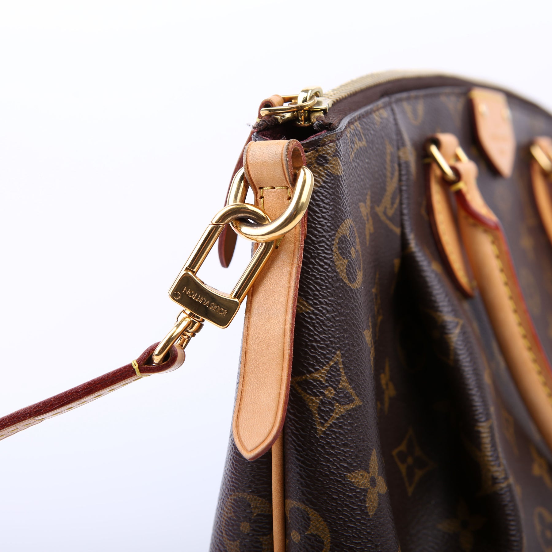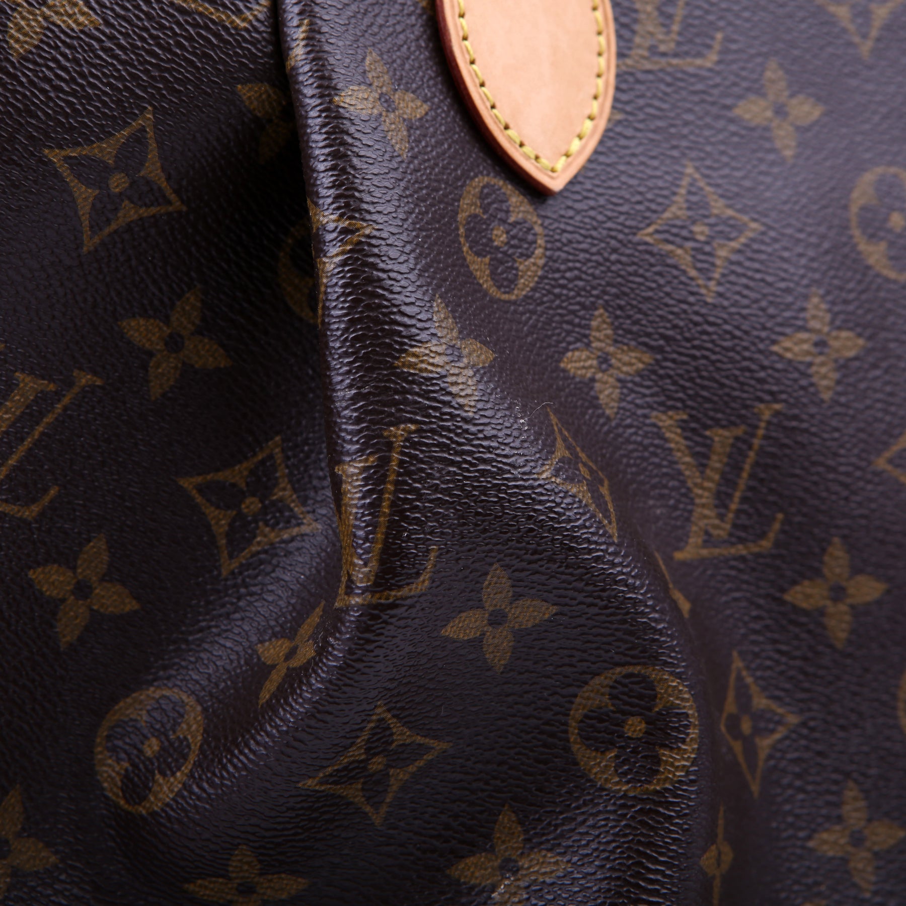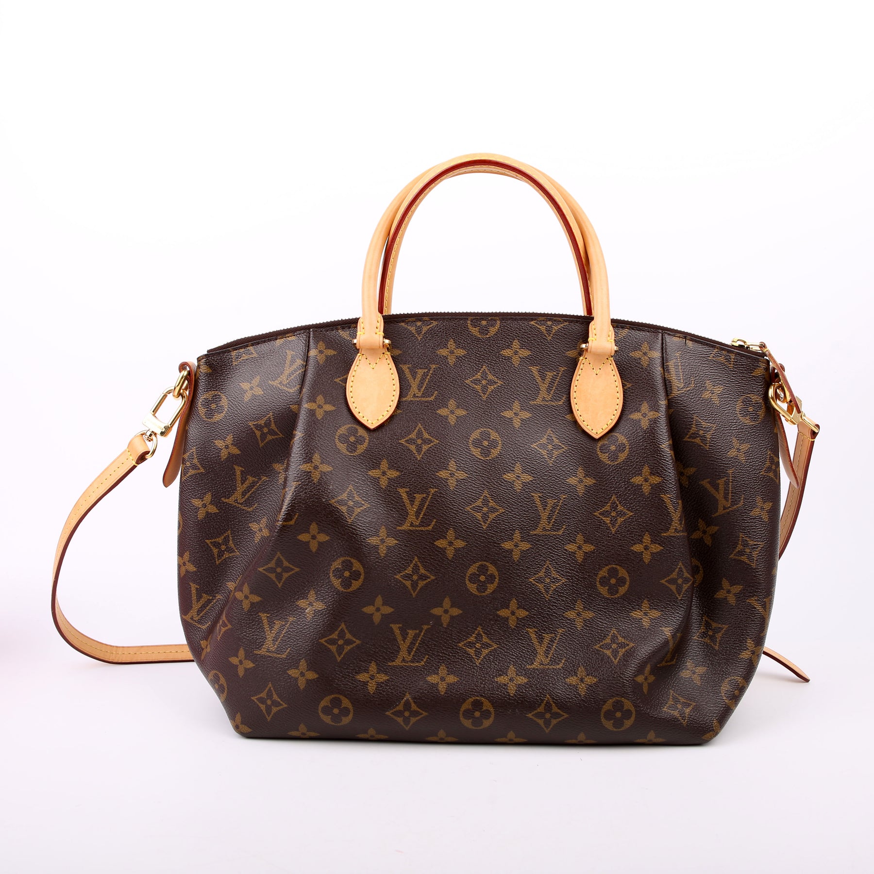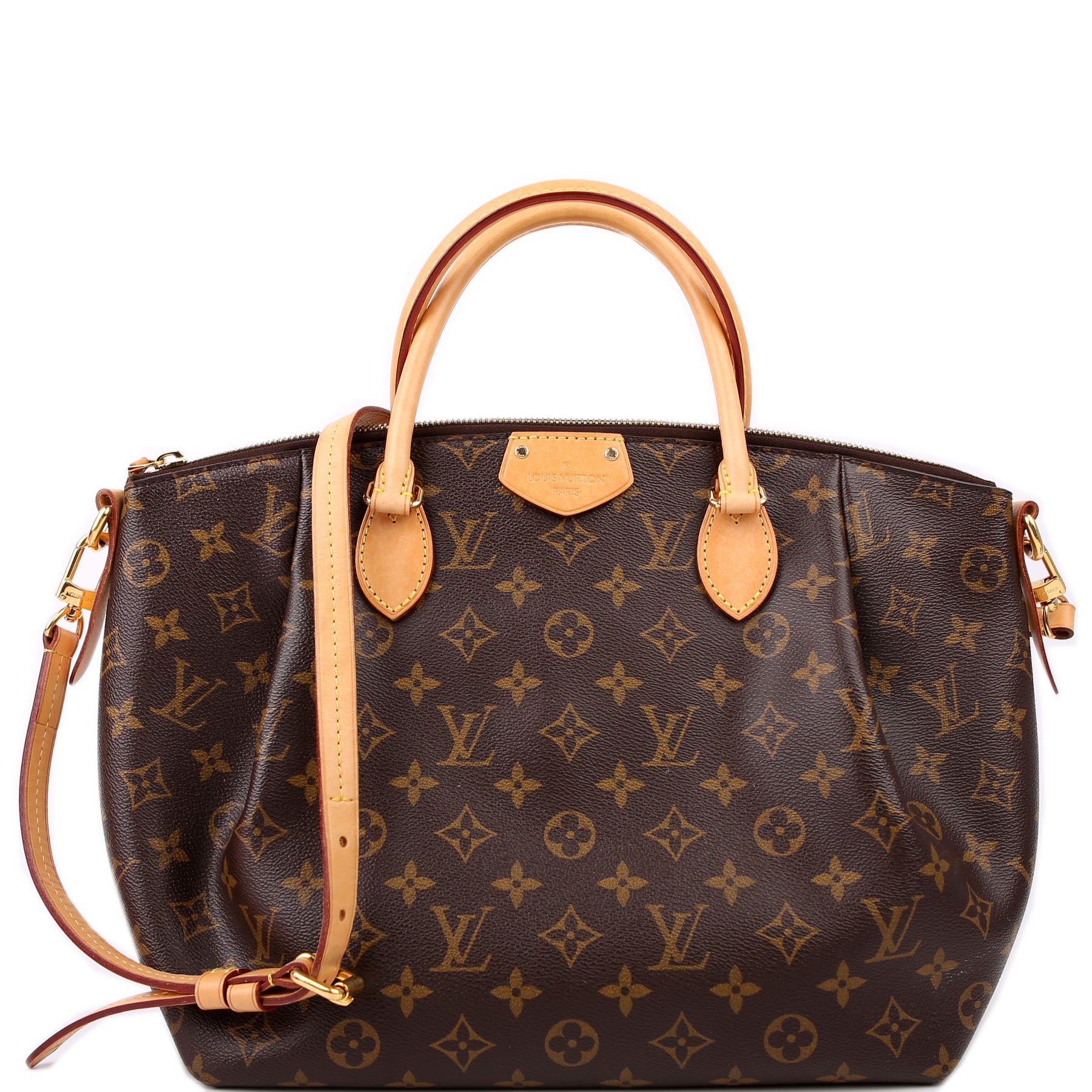 This pre-owned Louis Vuitton Turenne MM is guaranteed 100% authentic. The exterior is in the classic Louis Vuitton Monogram coated canvas.