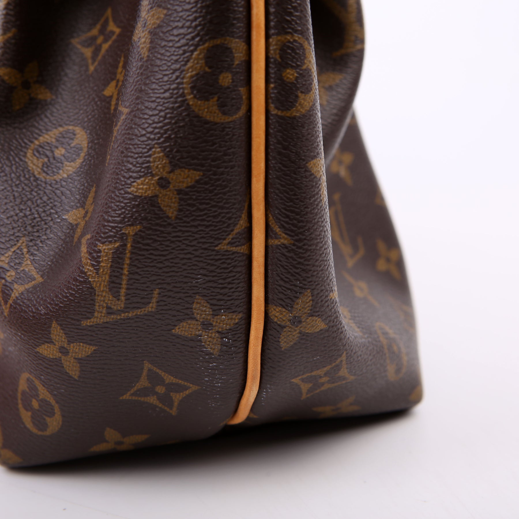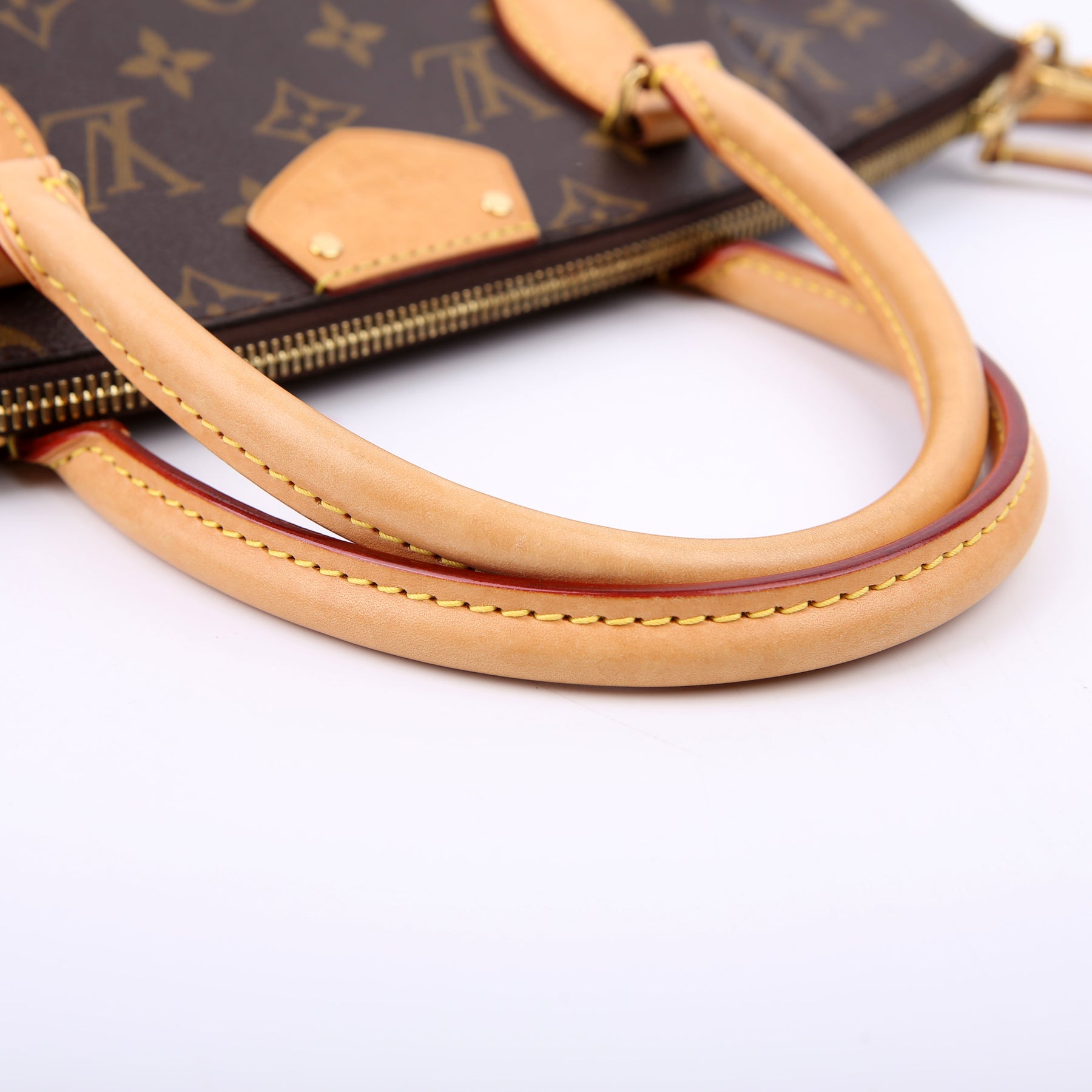 Handle: The leather handles shows discoloration.