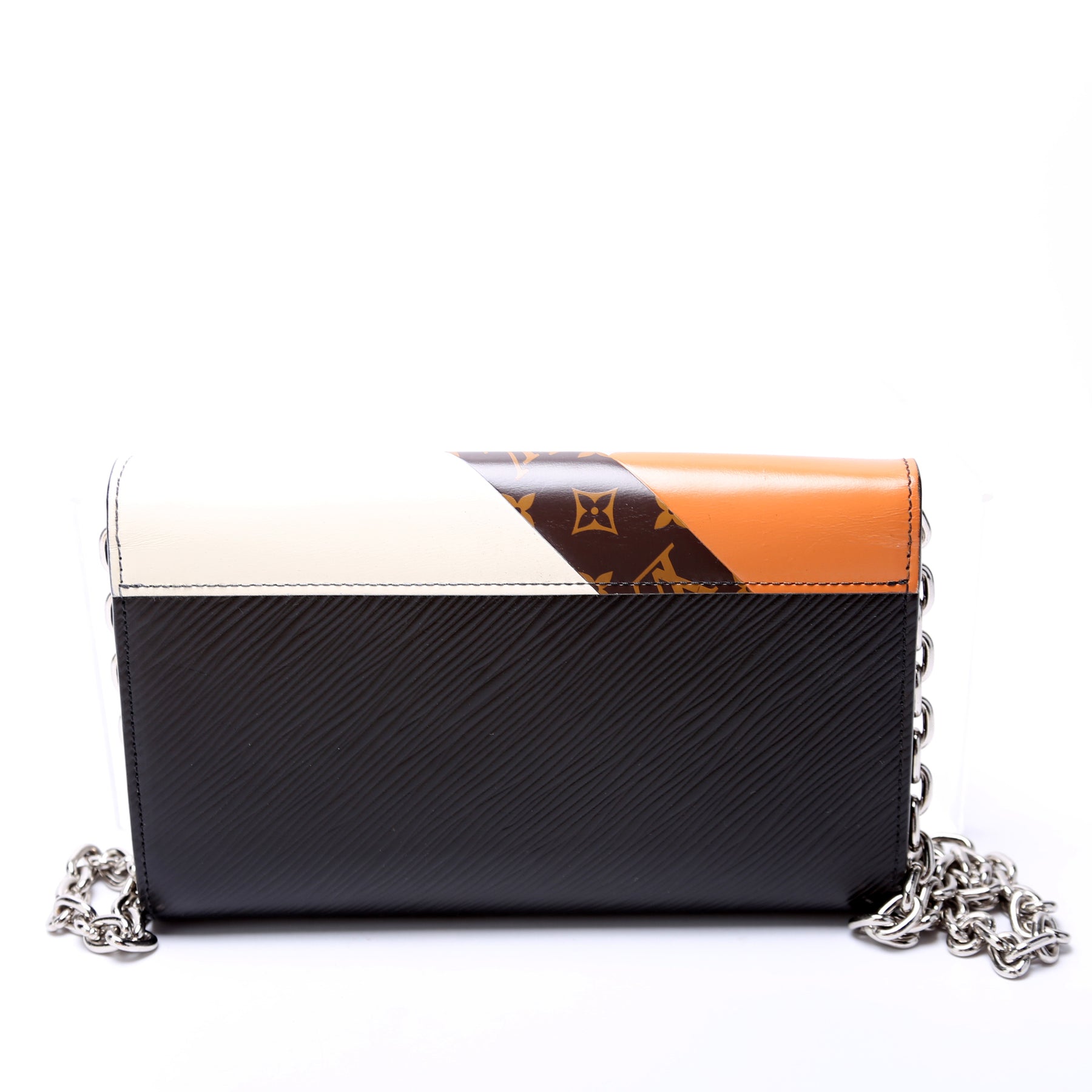 This pre-owned Louis Vuitton Twist Wallet On a Chain is guaranteed 100% authentic.