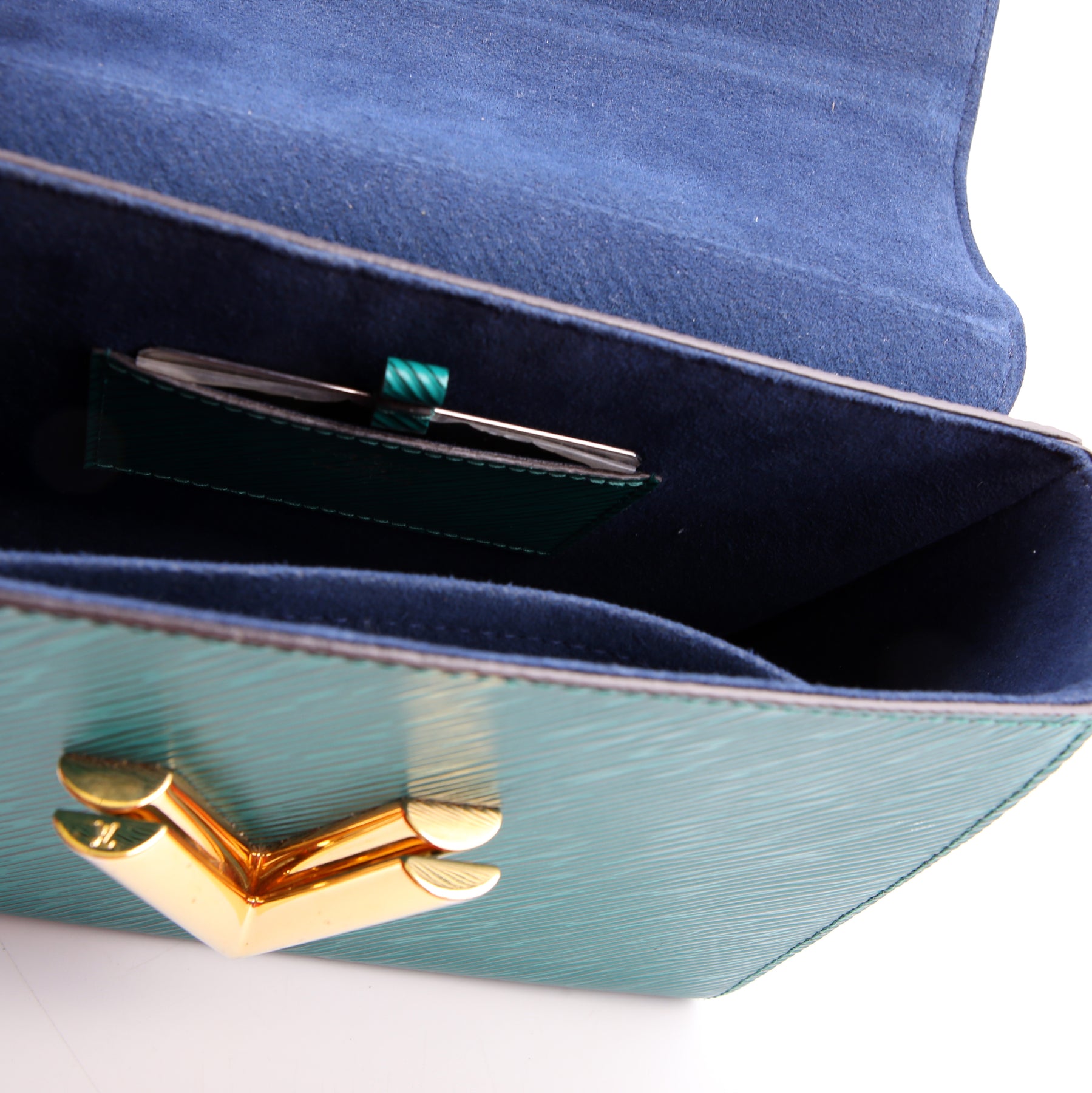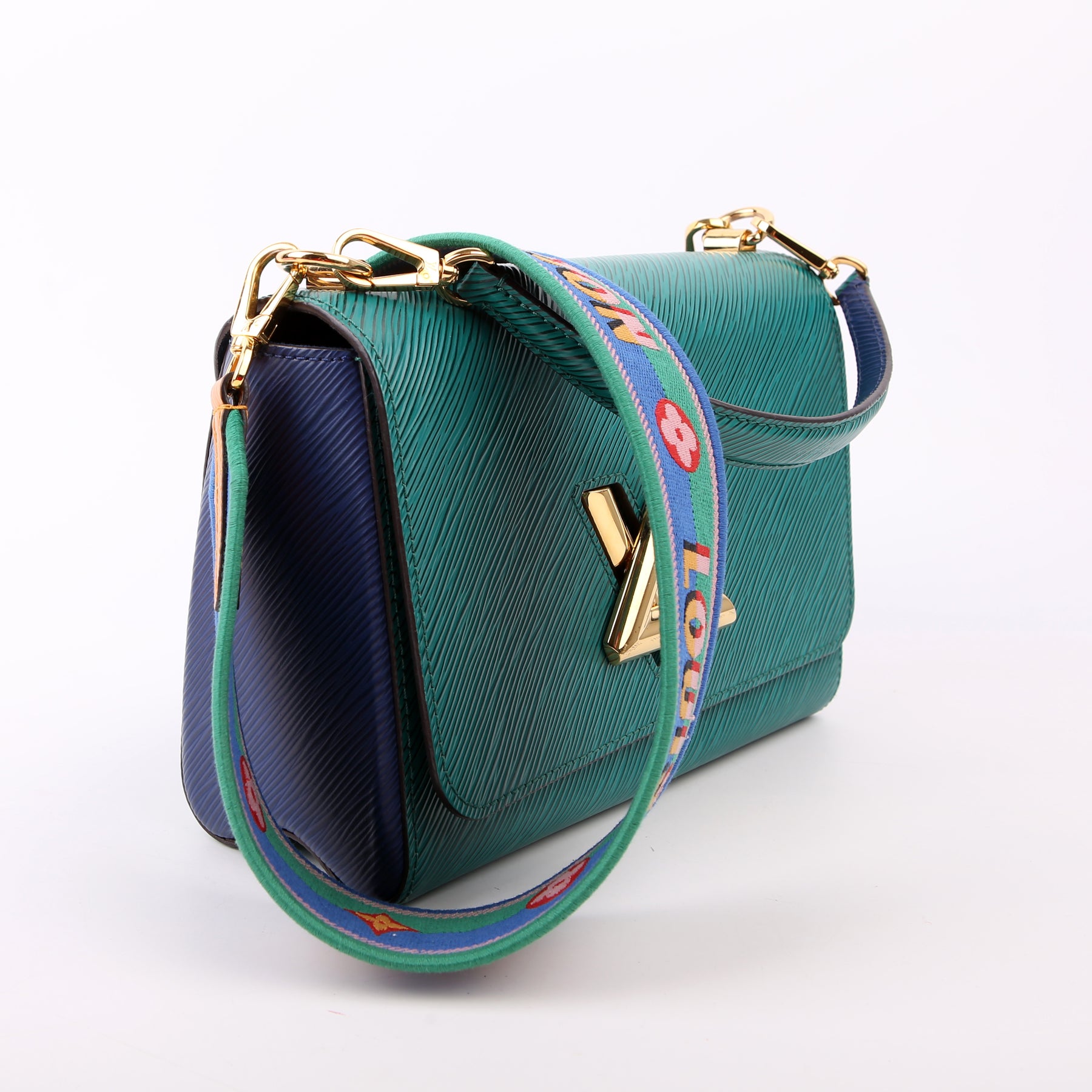 This pre-owned Louis Vuitton Twist MM Newer is guaranteed 100% authentic. The exterior is in the classic Louis Vuitton Epi leather.