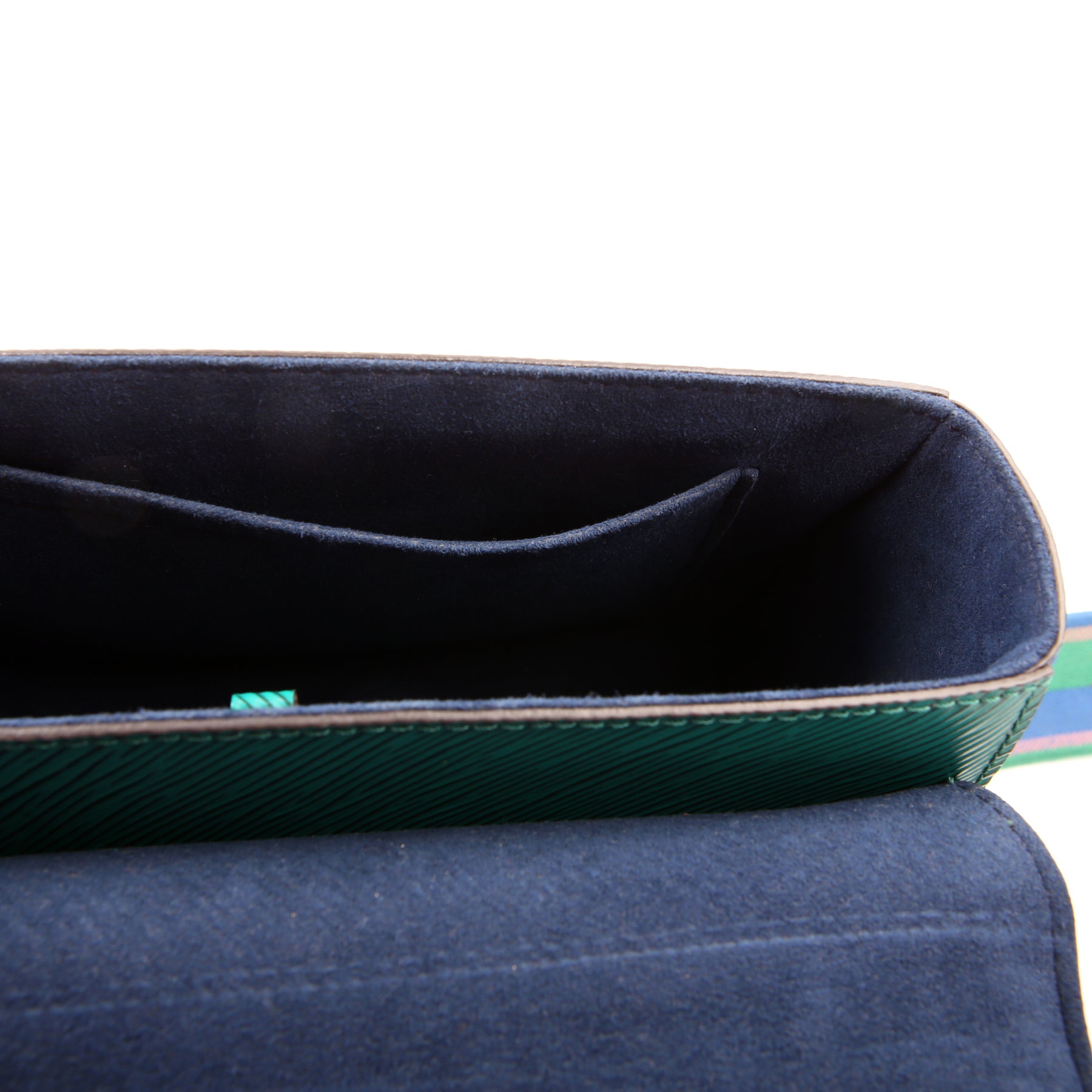 Interior: The interior has minor stains along the base, and features one open pocket.