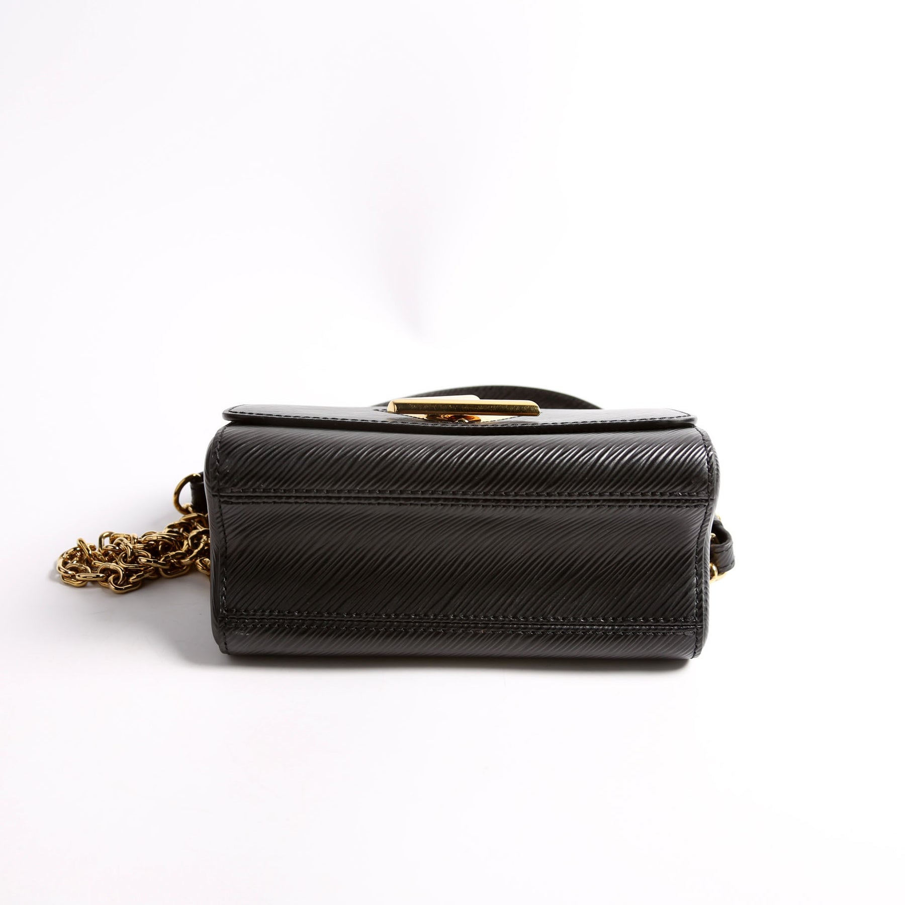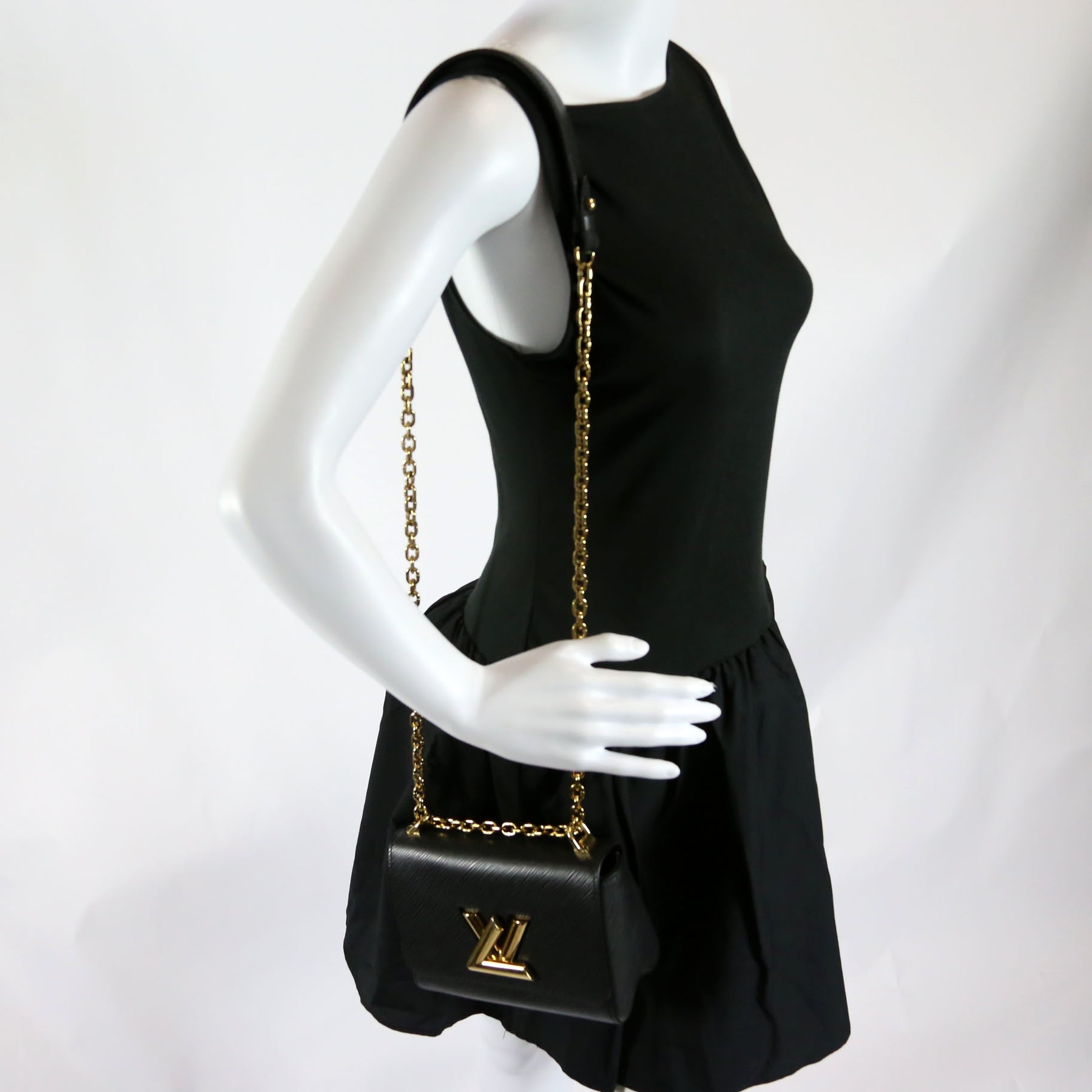This pre-owned Louis Vuitton Twist PM is guaranteed 100% authentic. The exterior is in the classic Louis Vuitton Epi leather coated canvas.