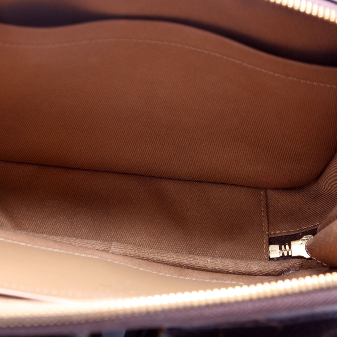 Hardware: The zipper operates properly. The zipper pull shows minor wear.