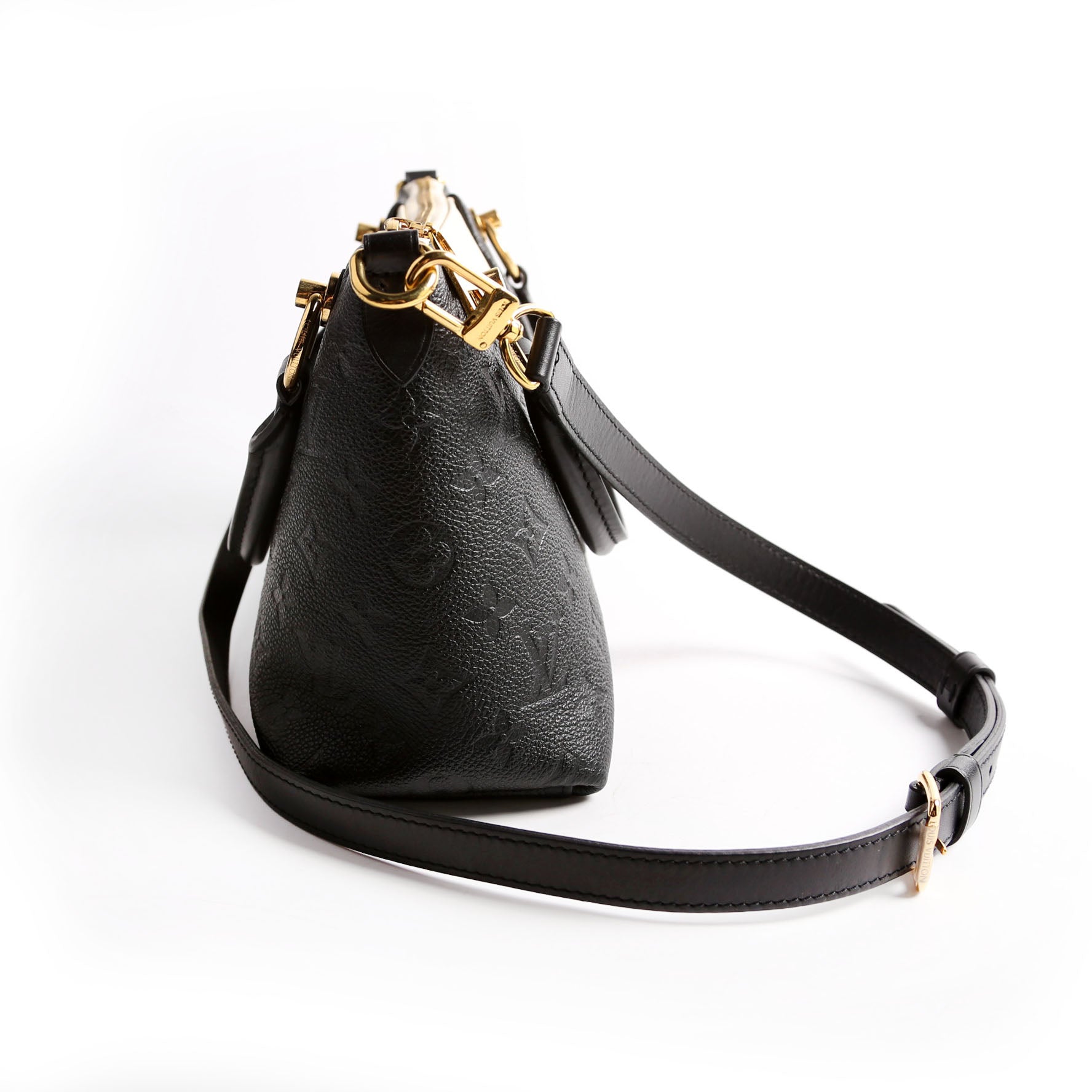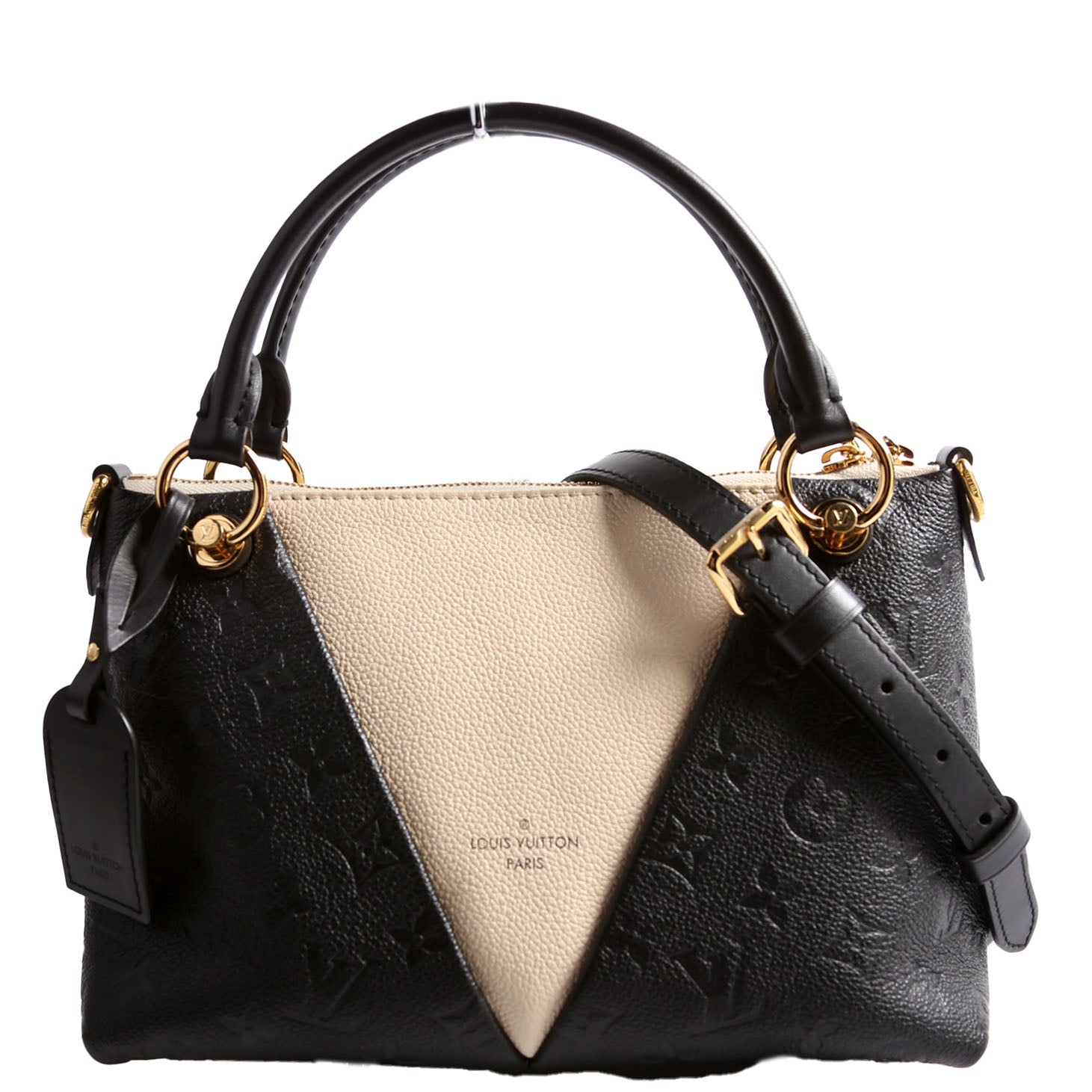 This pre-owned Louis Vuitton V Tote BB is guaranteed 100% authentic. The exterior is in the classic Louis Vuitton Empreinte leather.