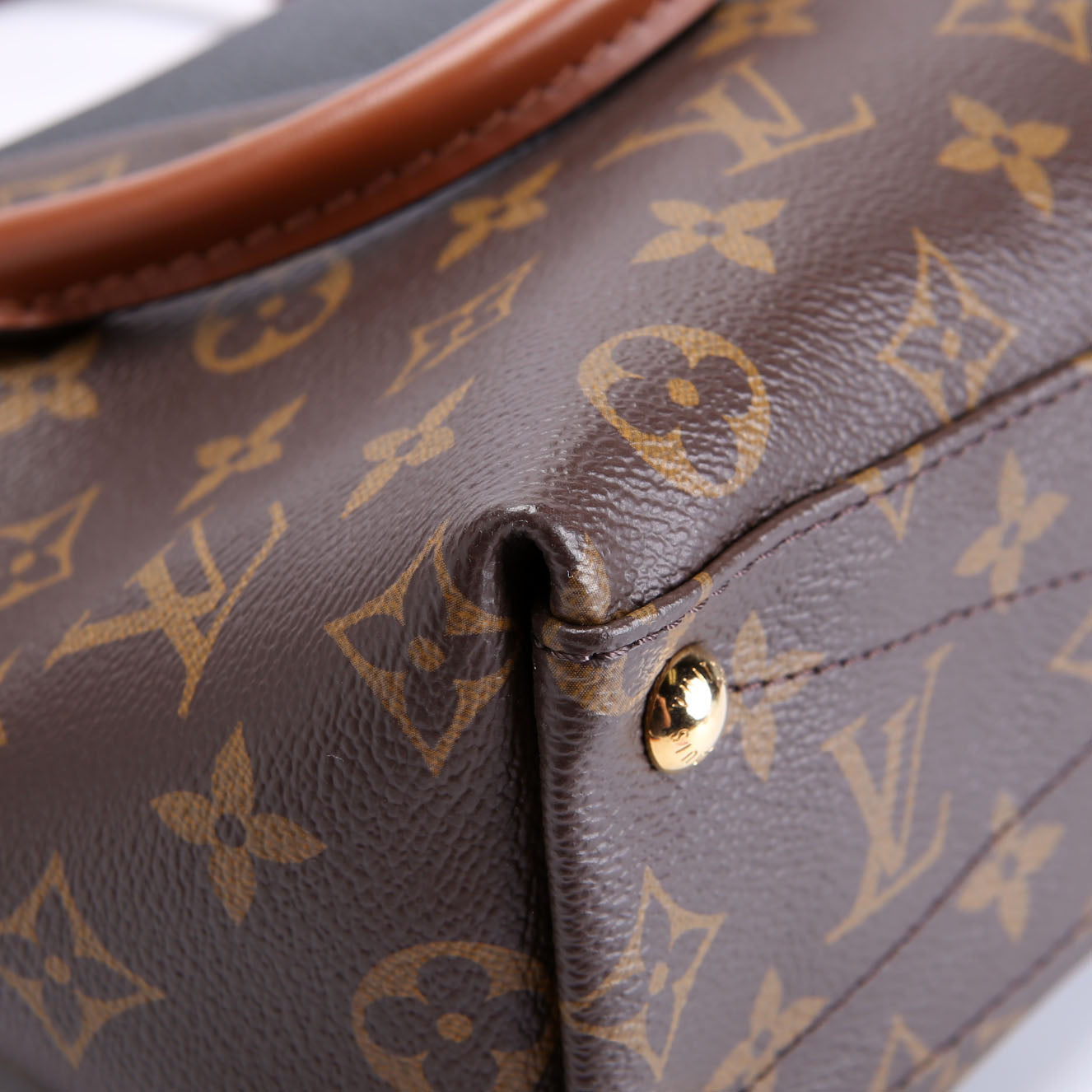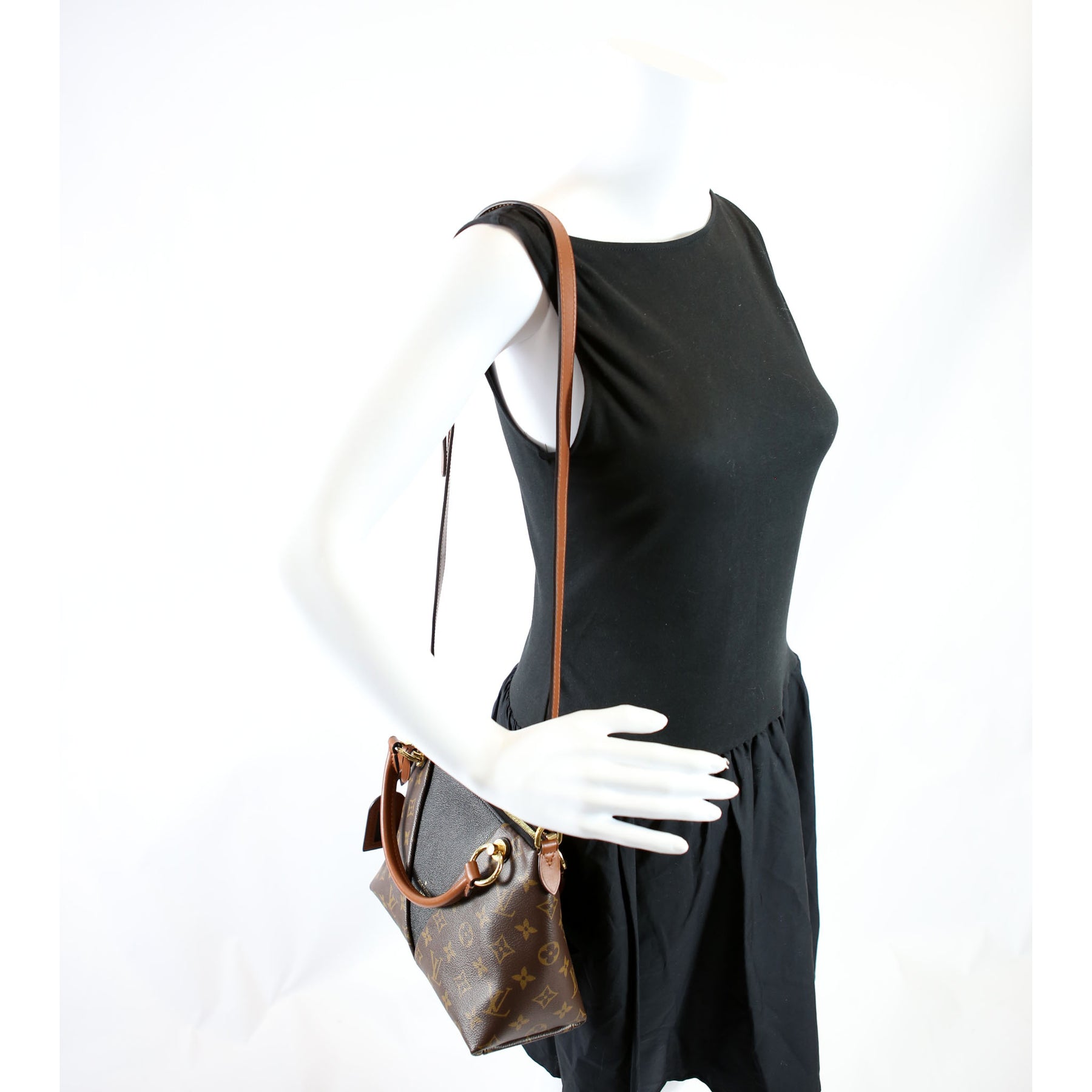 This pre-owned Louis Vuitton V Tote BB is guaranteed 100% authentic. The exterior is in the classic Louis Vuitton Monogram coated canvas.