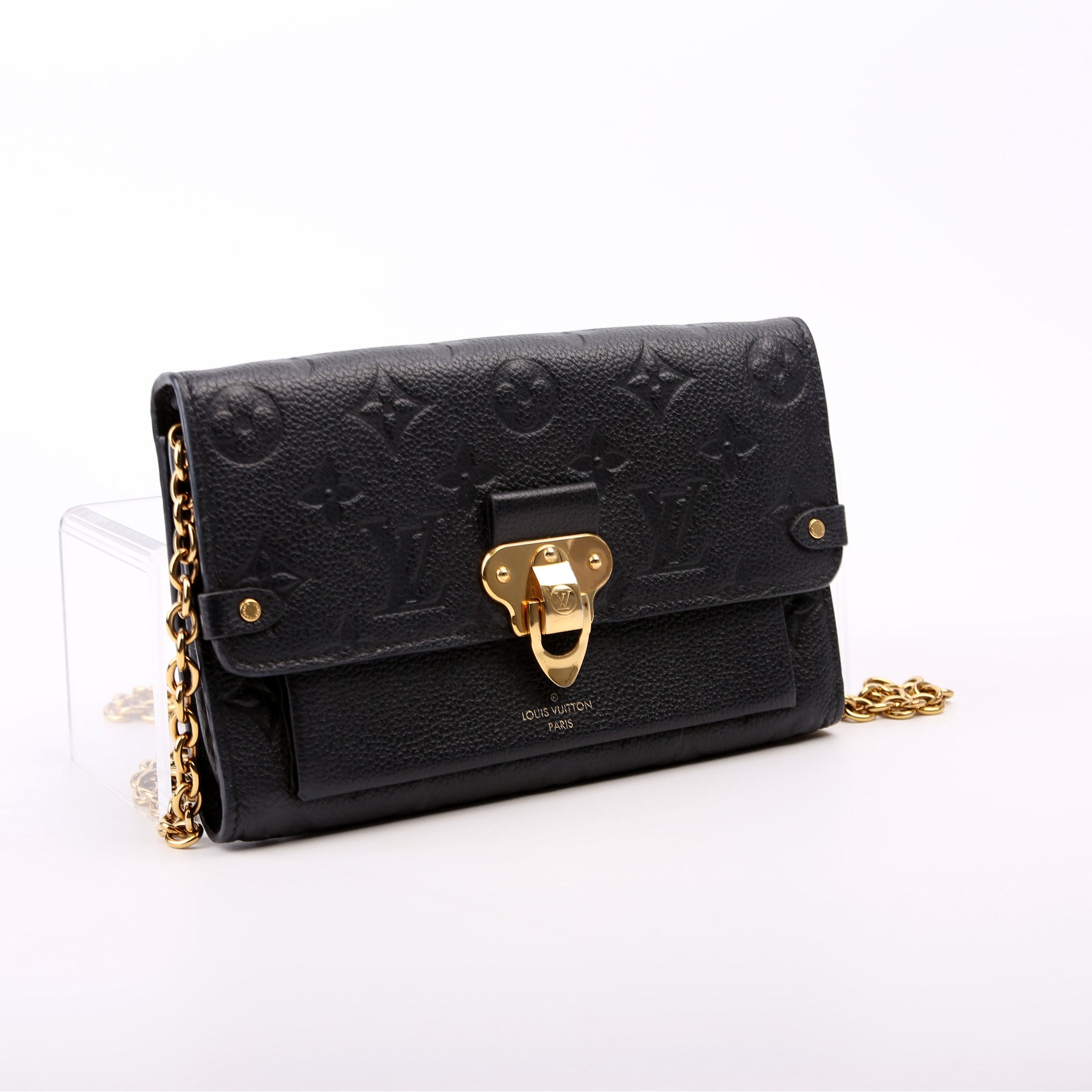 This pre-owned Louis Vuitton Vavin BB is guaranteed 100% authentic. The exterior is in the classic Louis Vuitton Empreinte leather