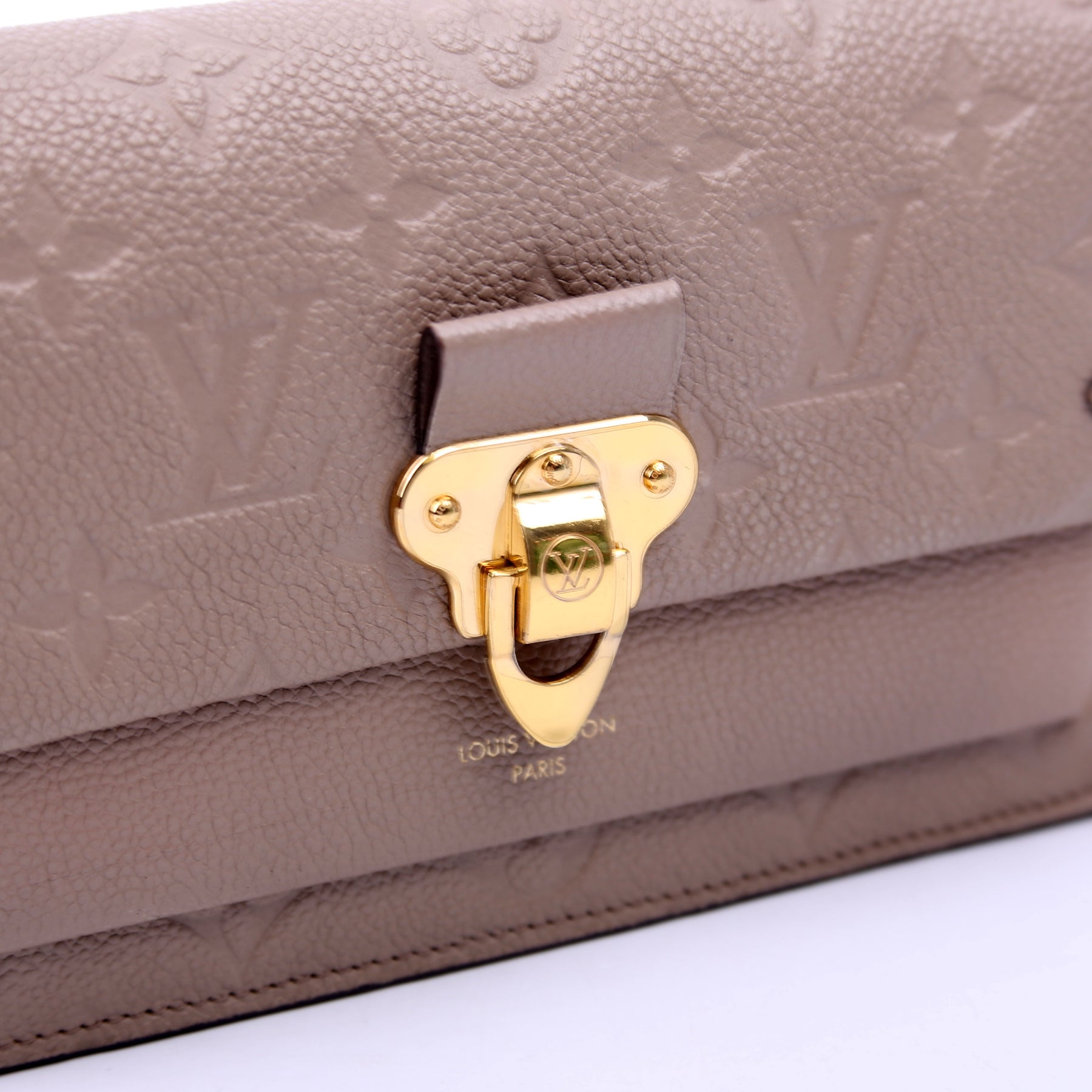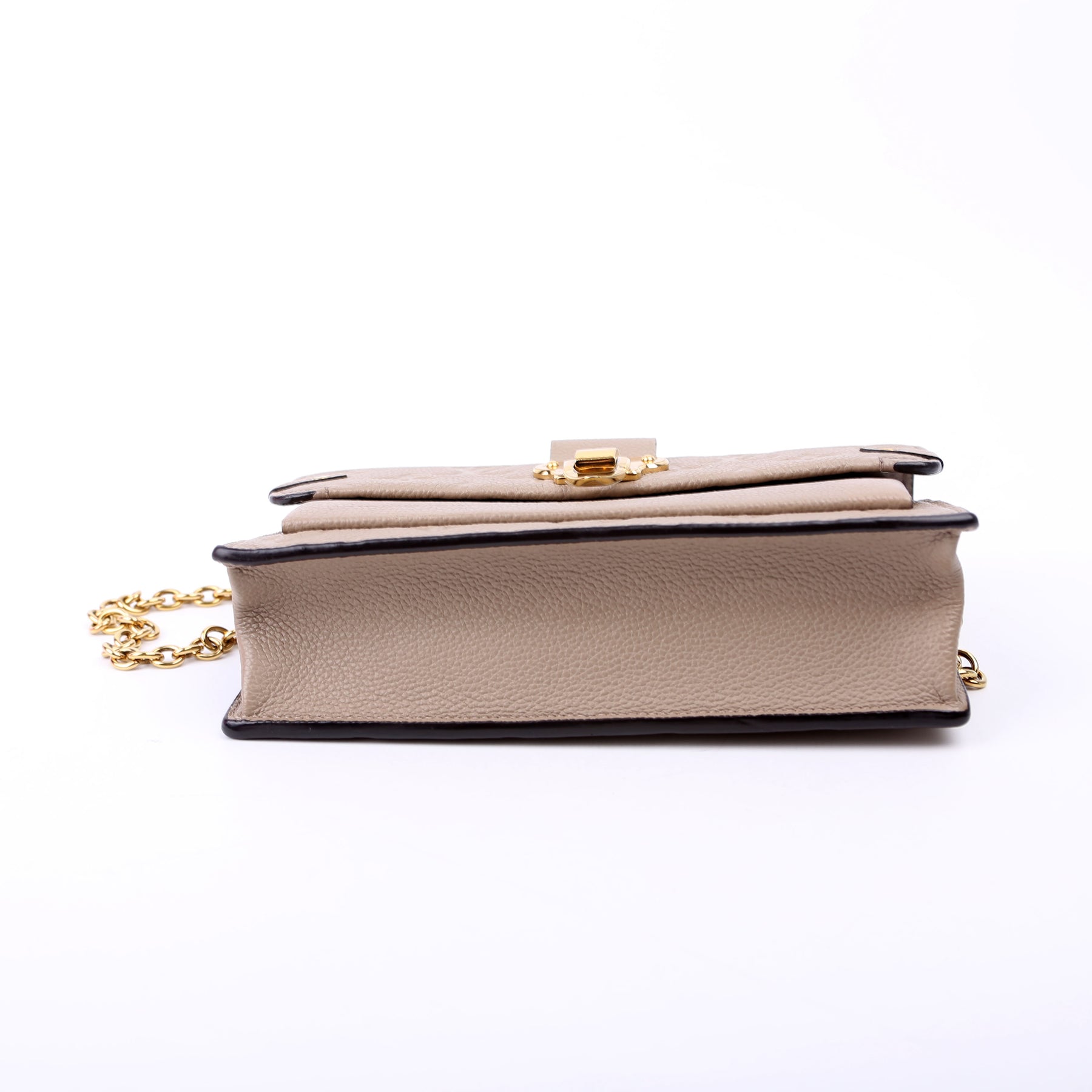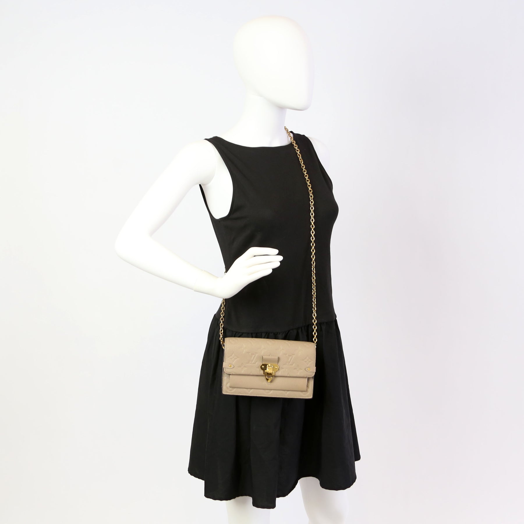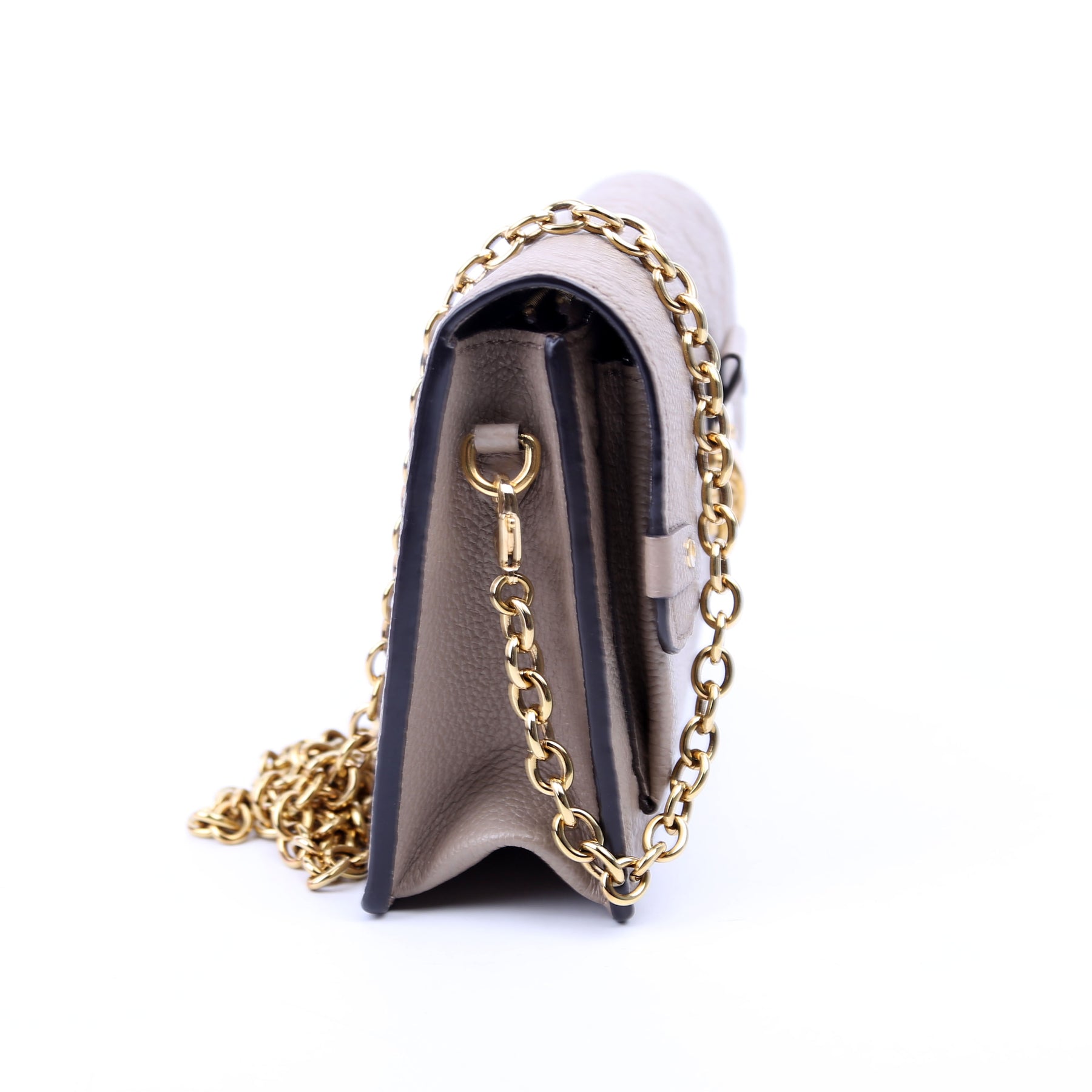This pre-owned Louis Vuitton Vavin Chain Wallet is guaranteed 100% authentic. The exterior is in the classic Louis Vuitton Empreinte leather