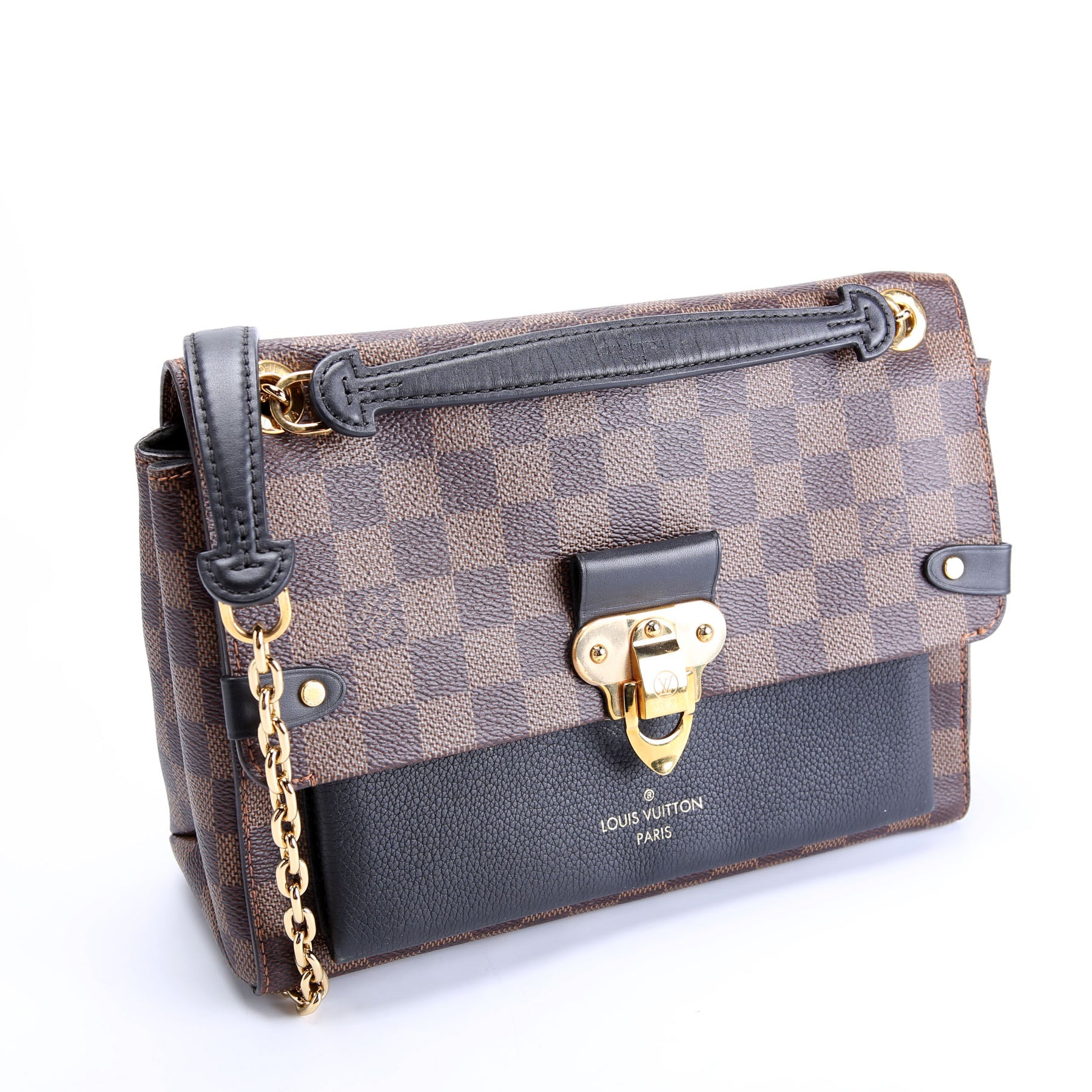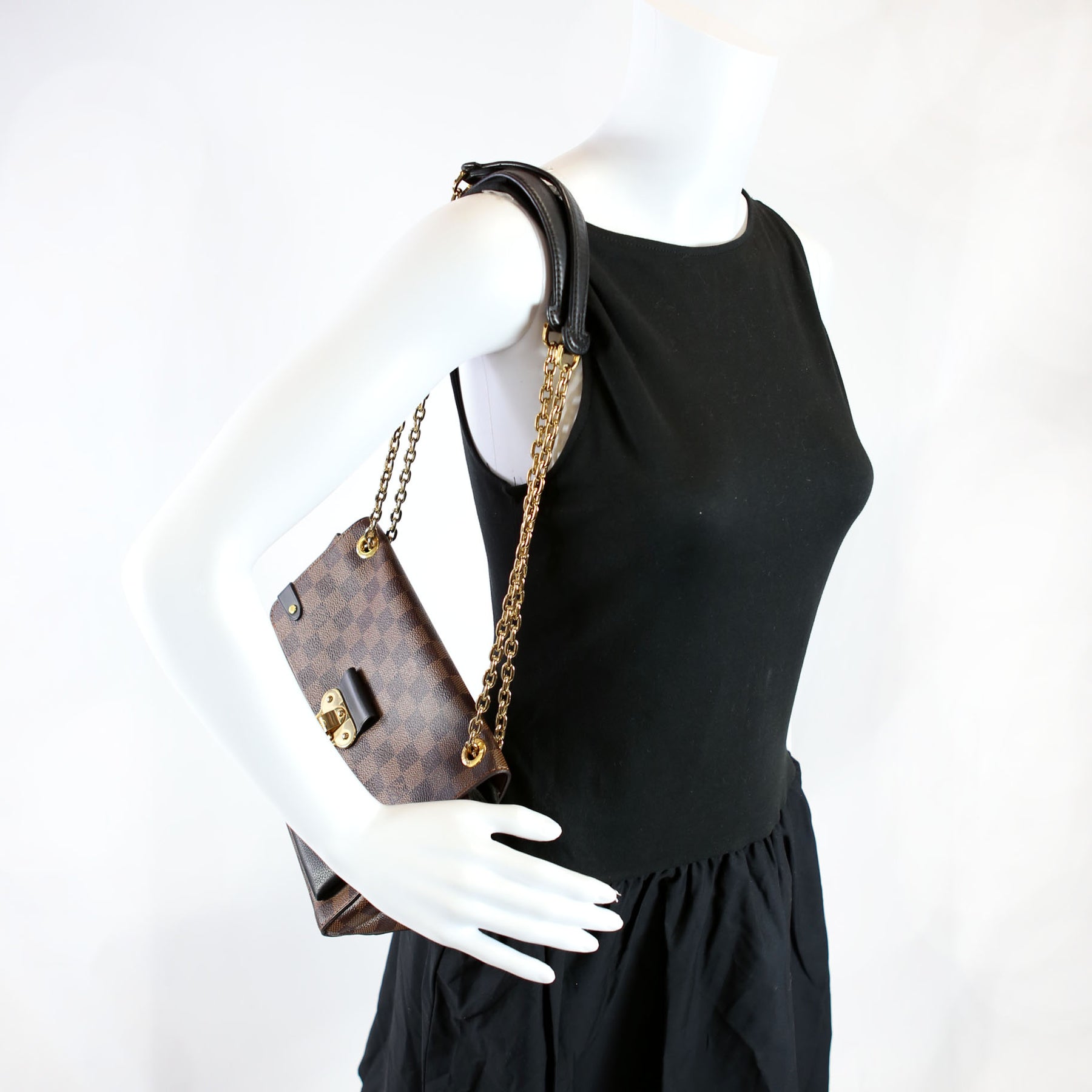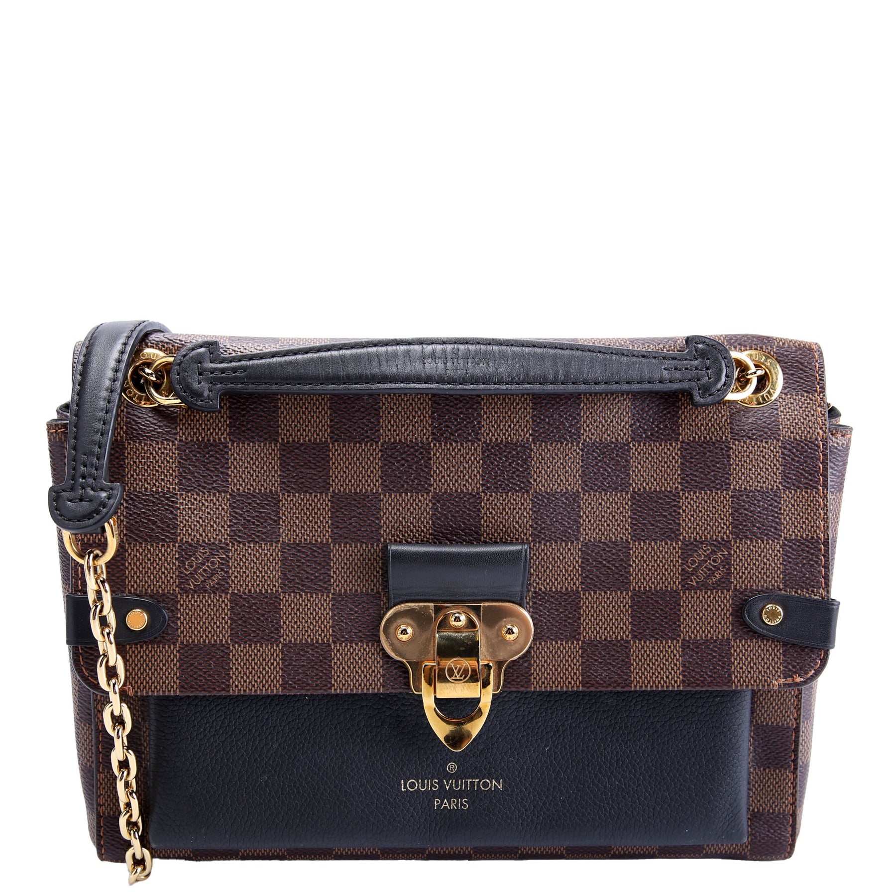 This pre-owned Louis Vuitton Vavin PM NM is guaranteed 100% authentic. The exterior is in the classic Louis Vuitton Damier Ebene coated canvas.