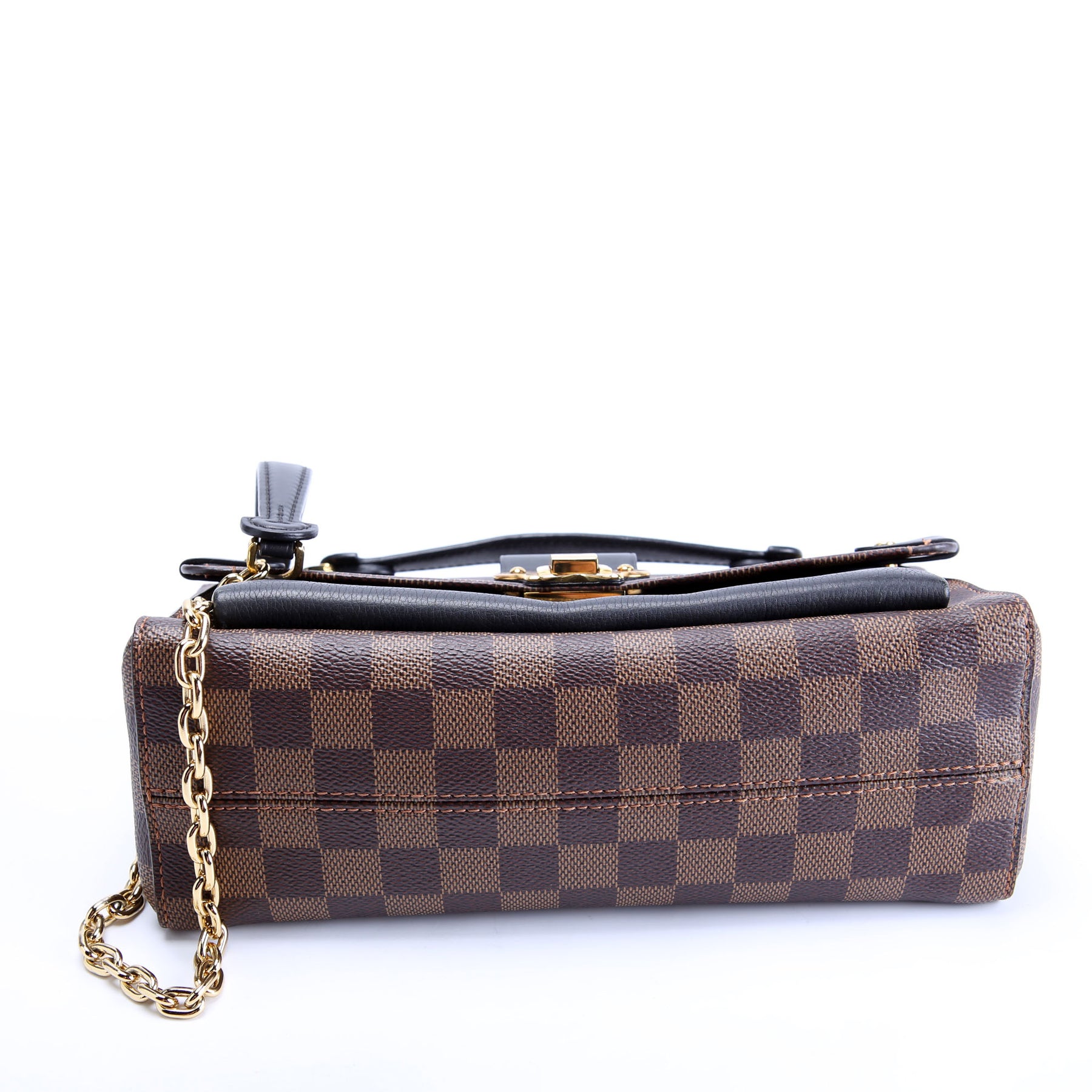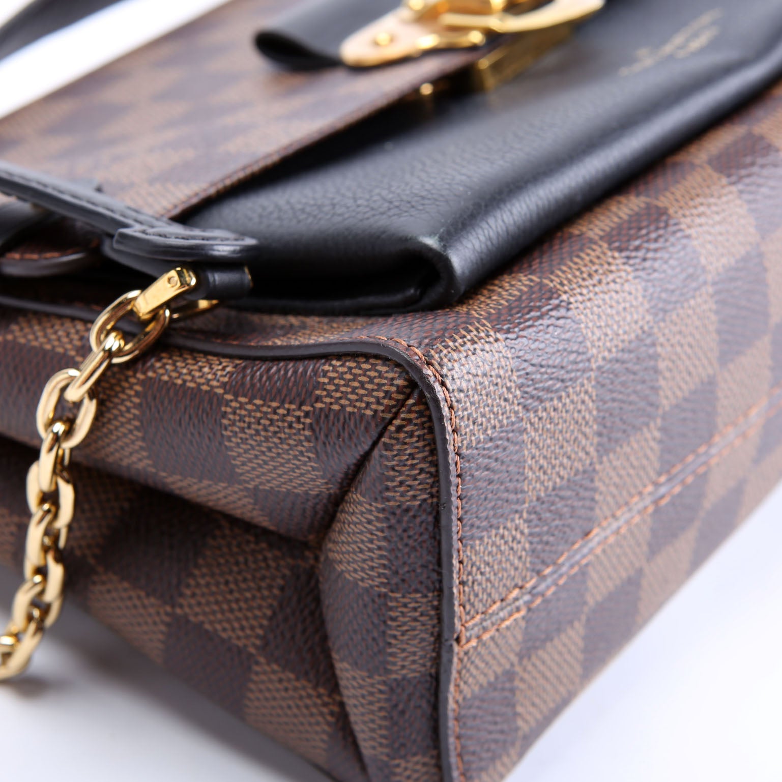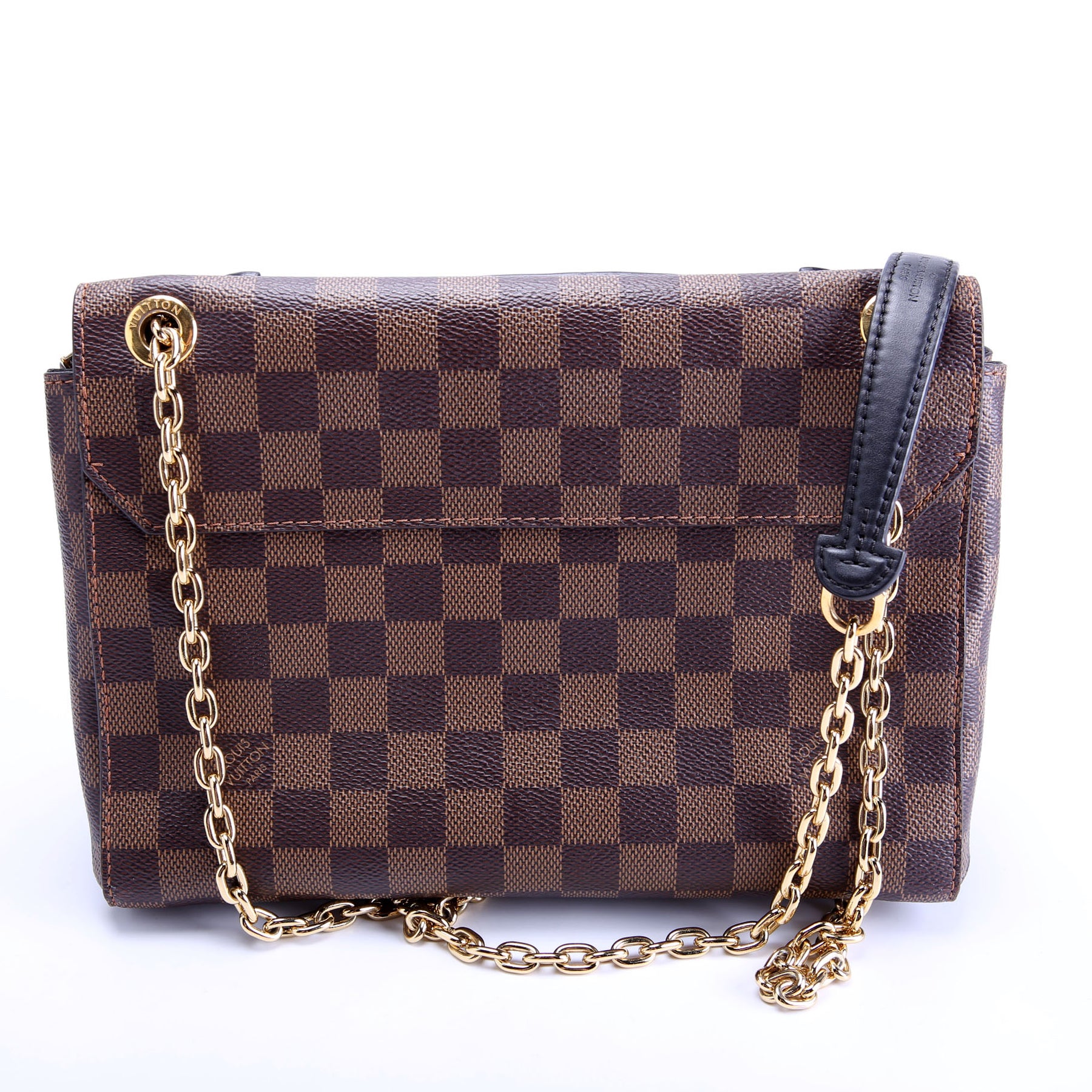This pre-owned Louis Vuitton Vavin PM NM is guaranteed 100% authentic. The exterior is in the classic Louis Vuitton Damier Ebene coated canvas.