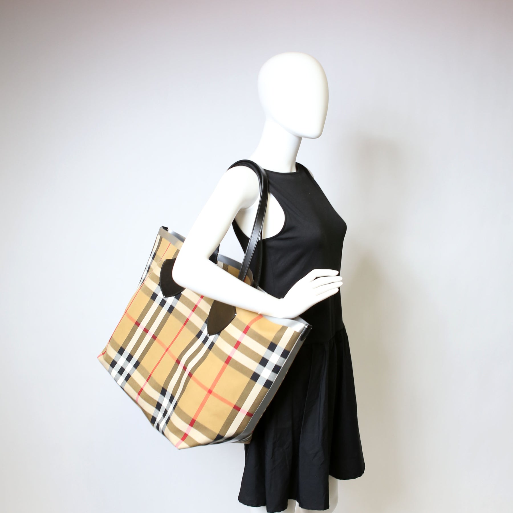 This pre-owned Burberry Vintage Check XL Reversible Tote is guaranteed 100% authentic.