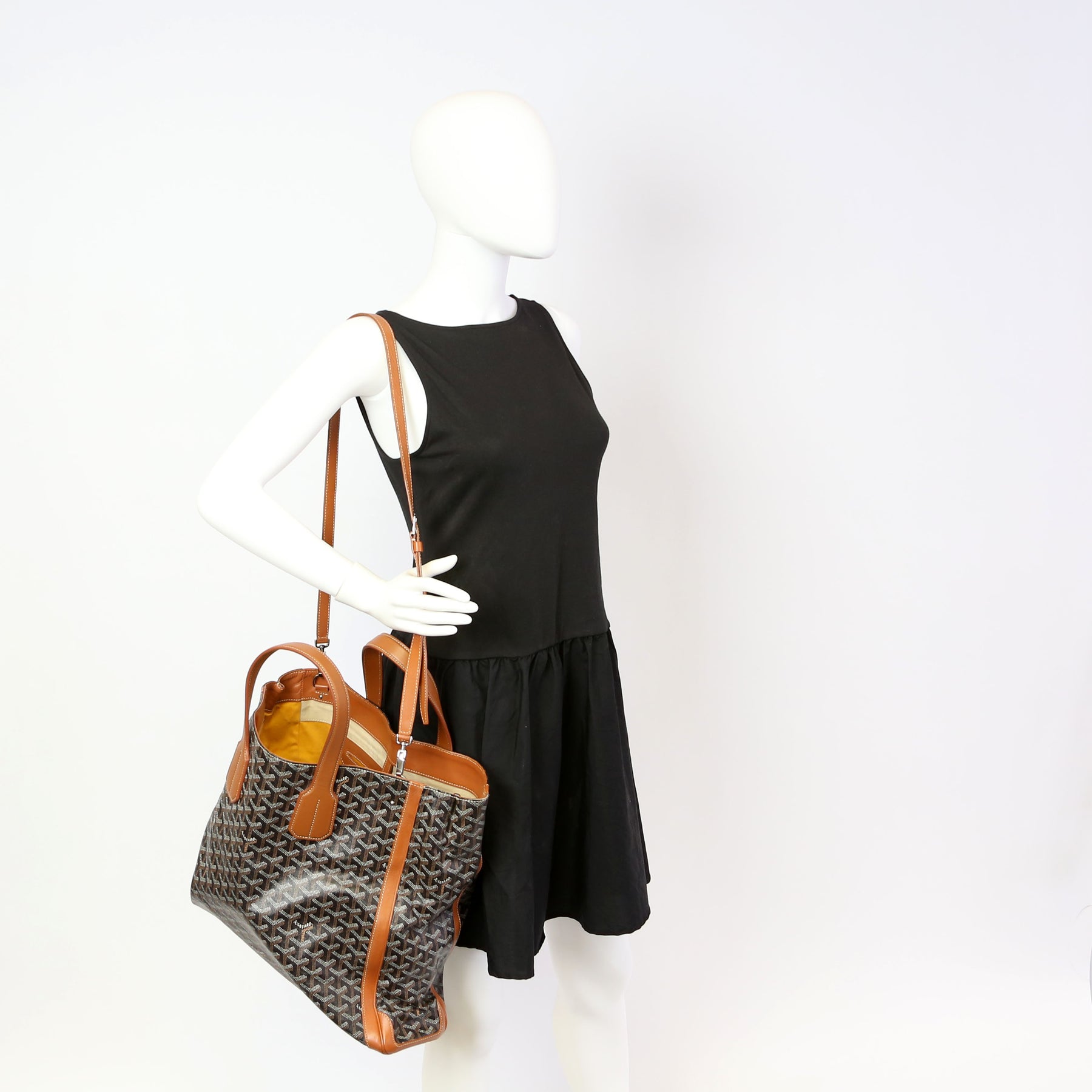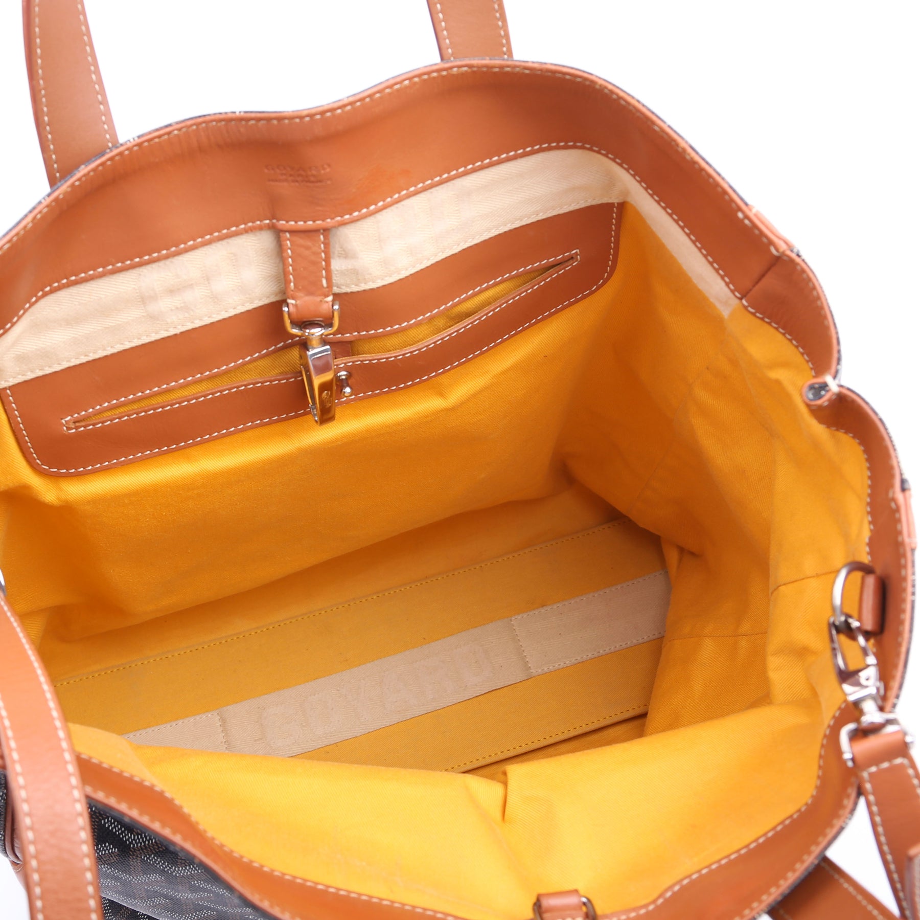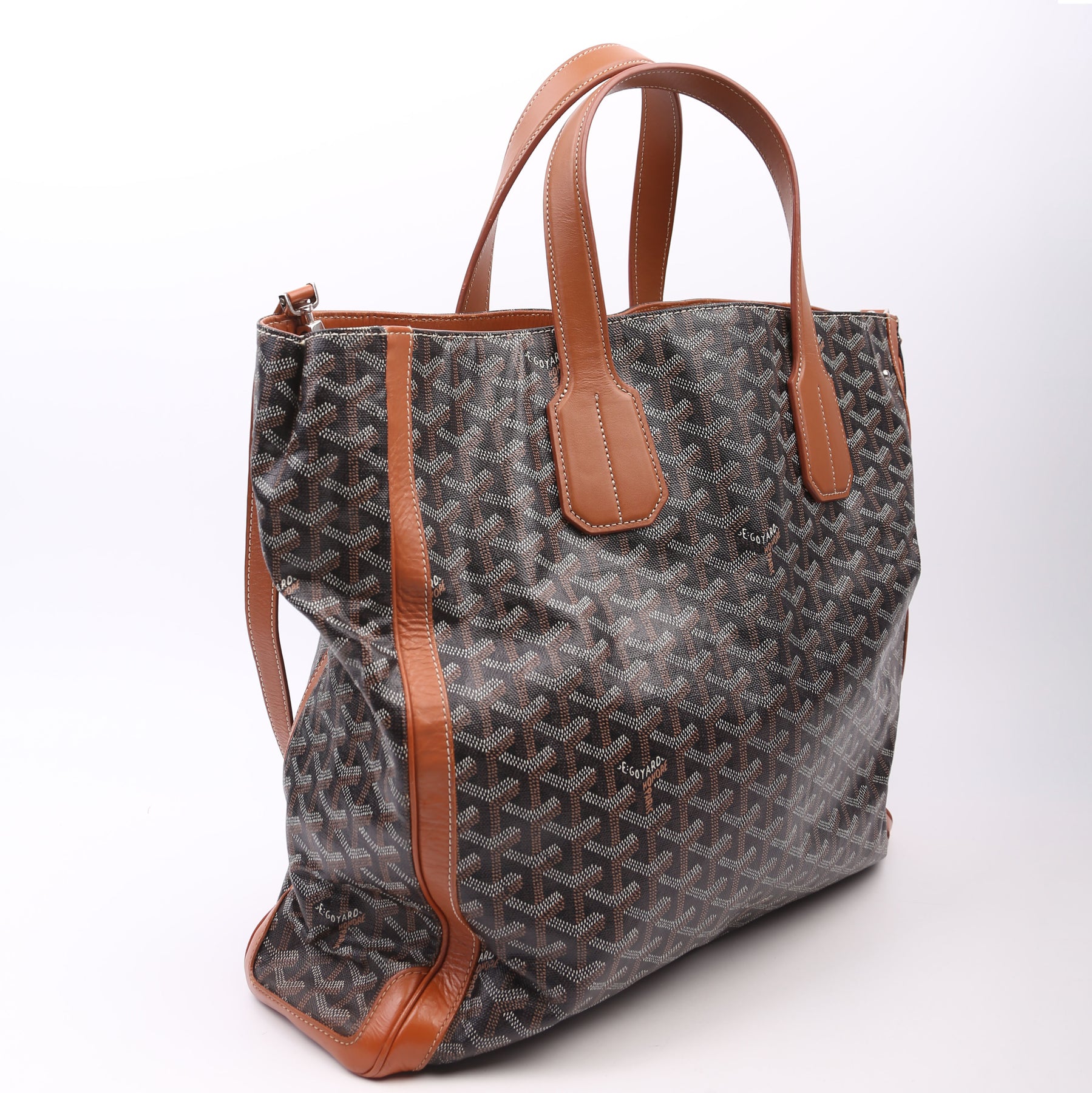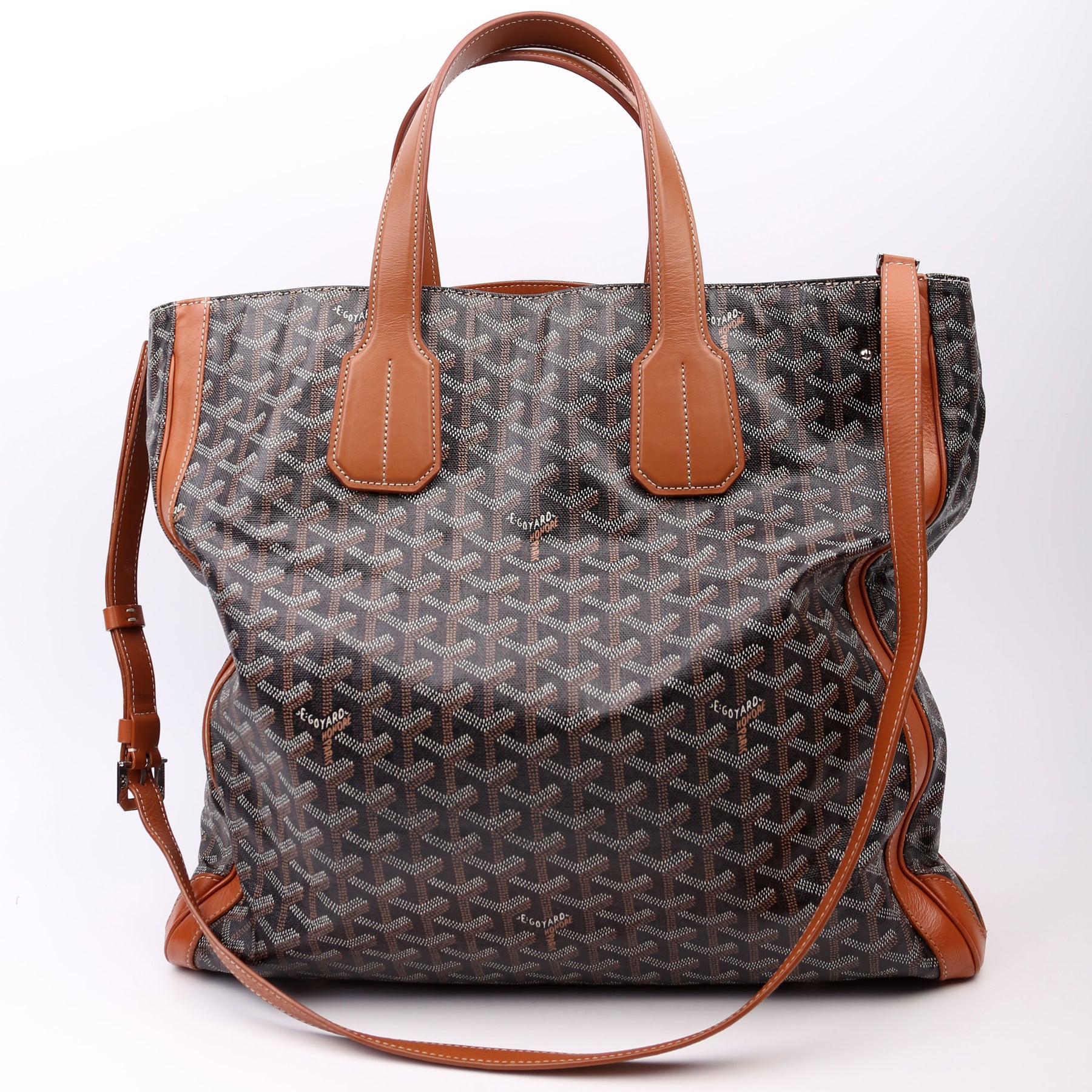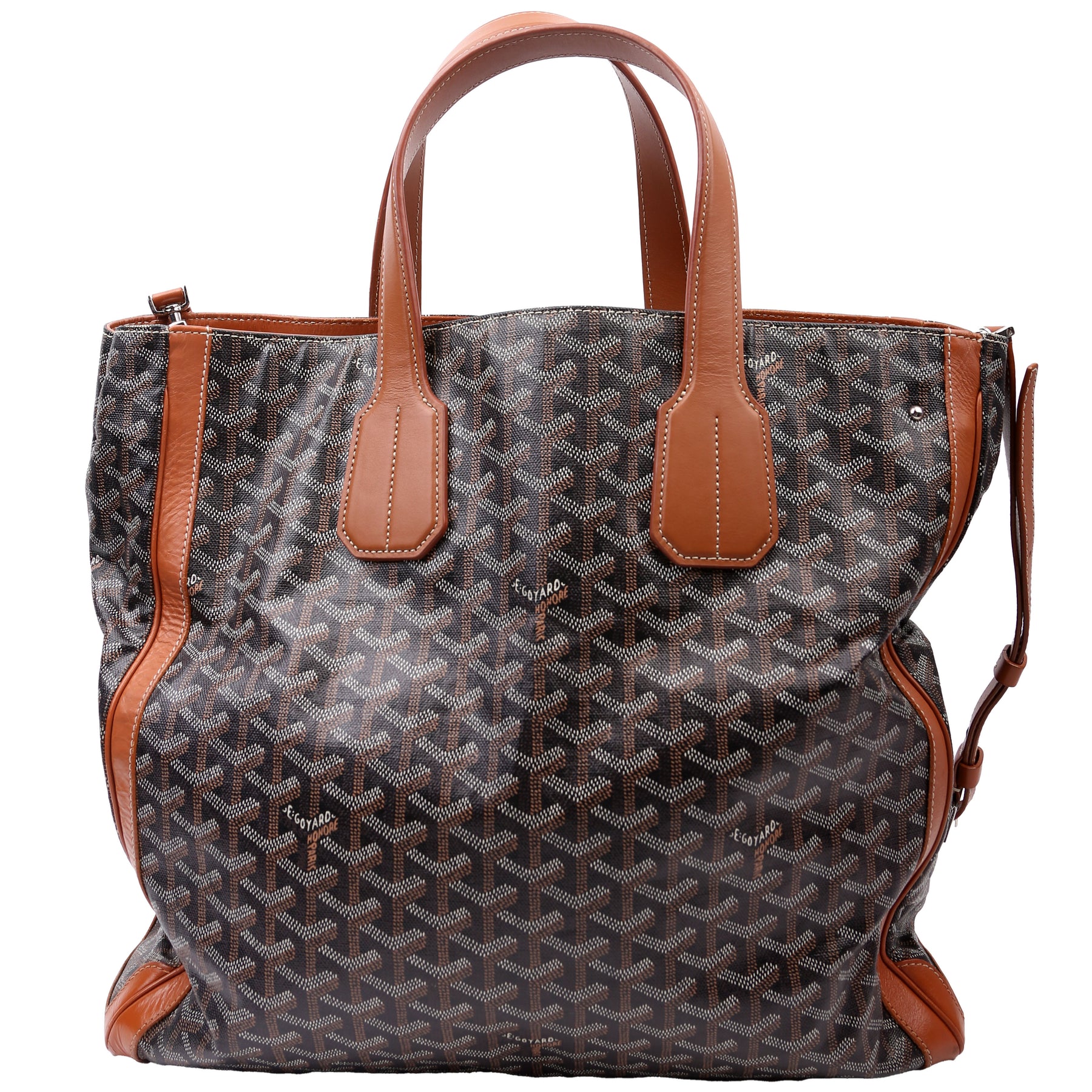 This pre-owned Goyard Voltaire Tote is guaranteed 100% authentic. The exterior is in the classic Goyard Goyardine coated canvas.