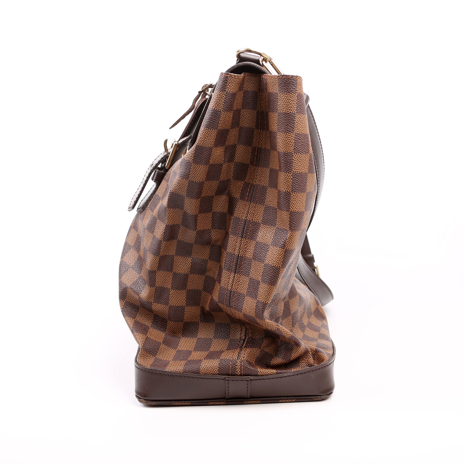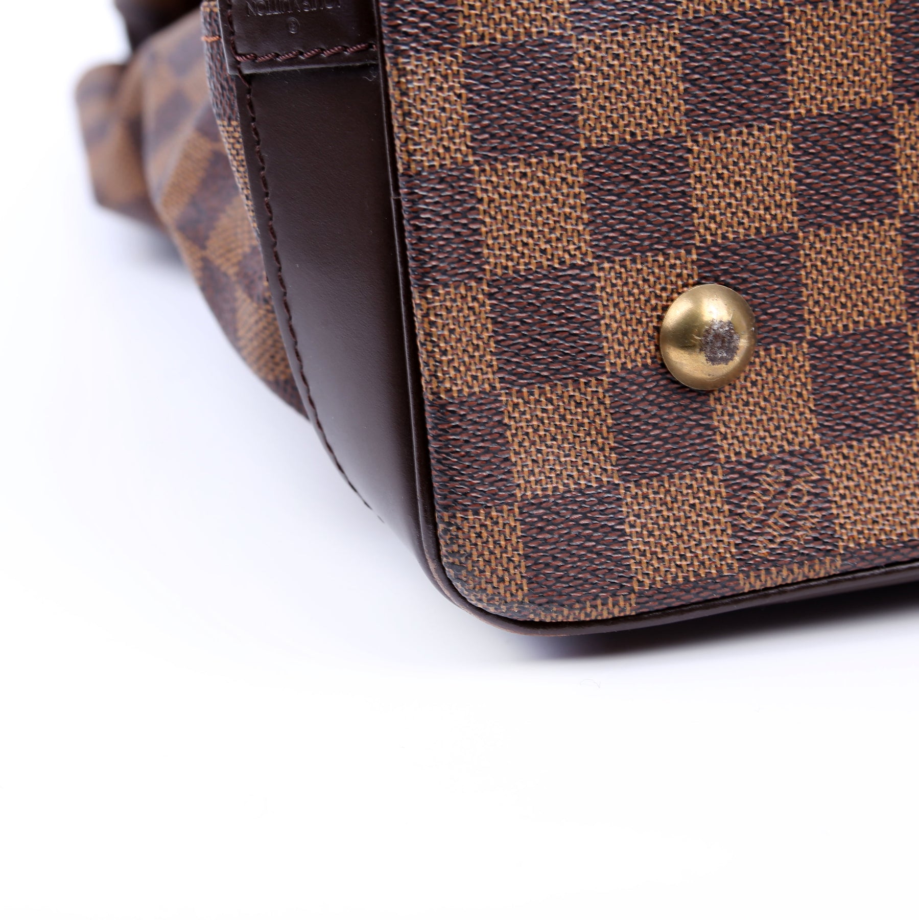 This pre-owned Louis Vuitton West End PM is guaranteed 100% authentic. The exterior is in the classic Louis Vuitton Damier Ebene coated canvas.