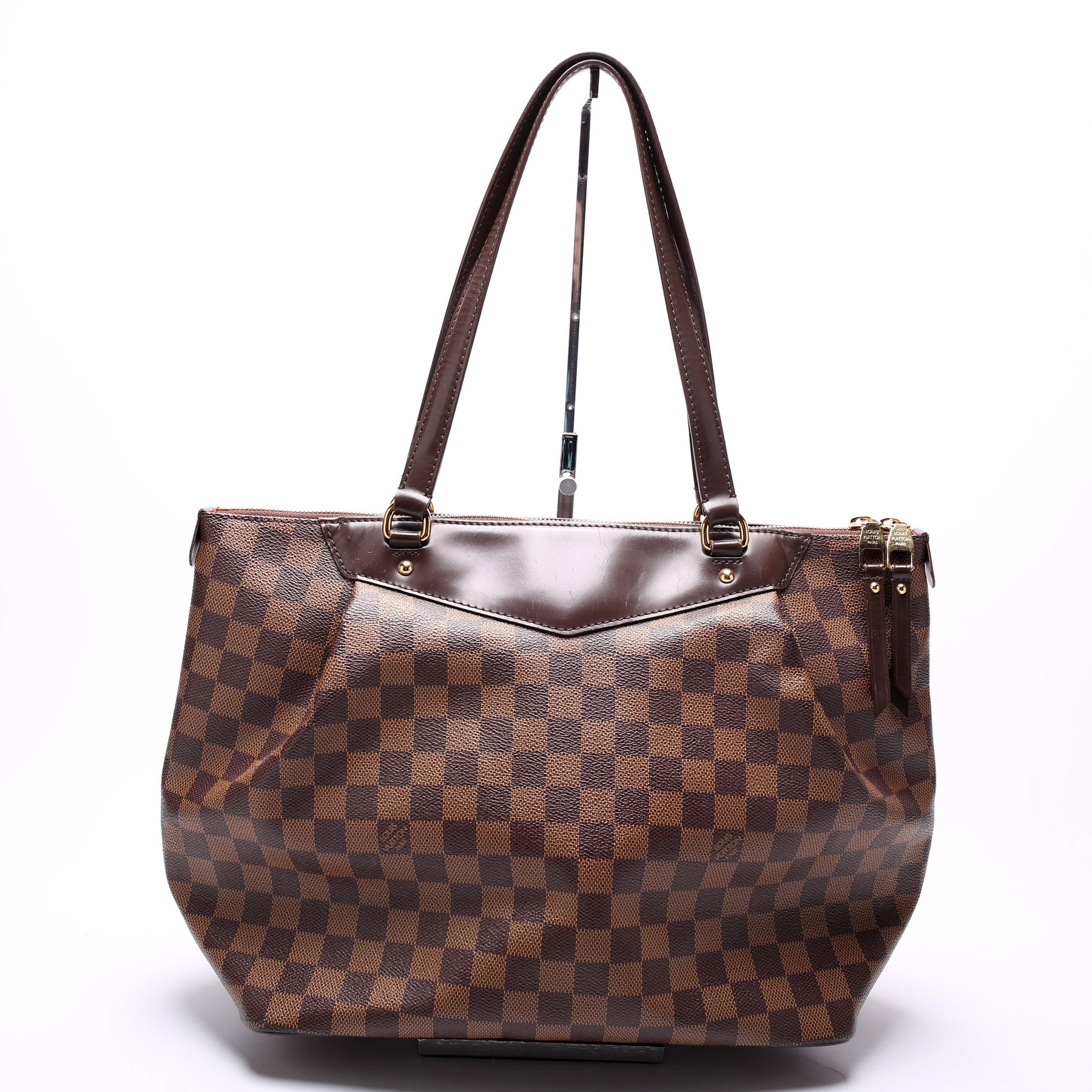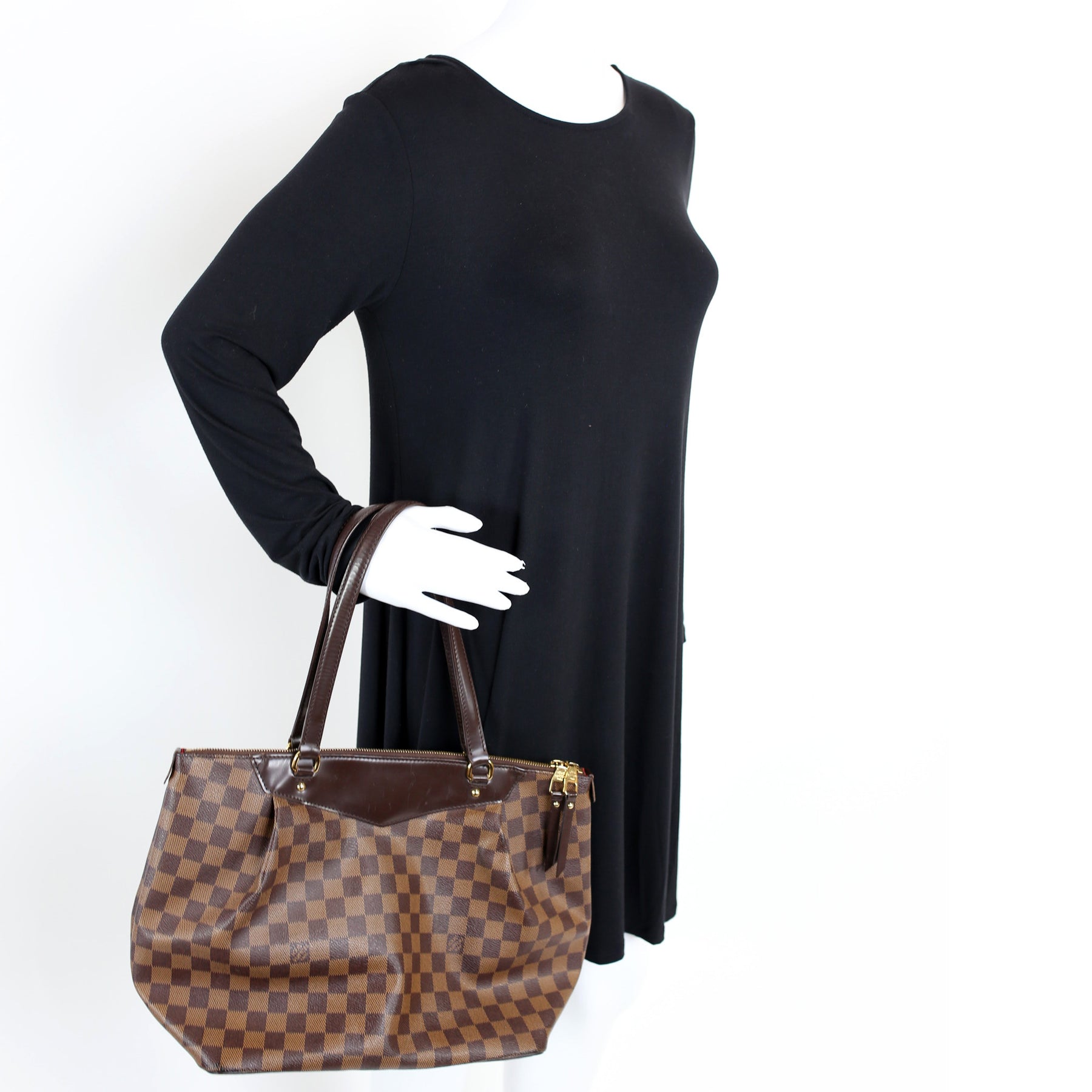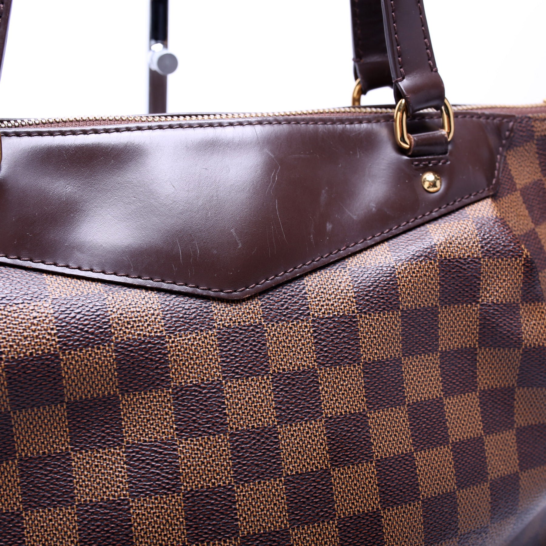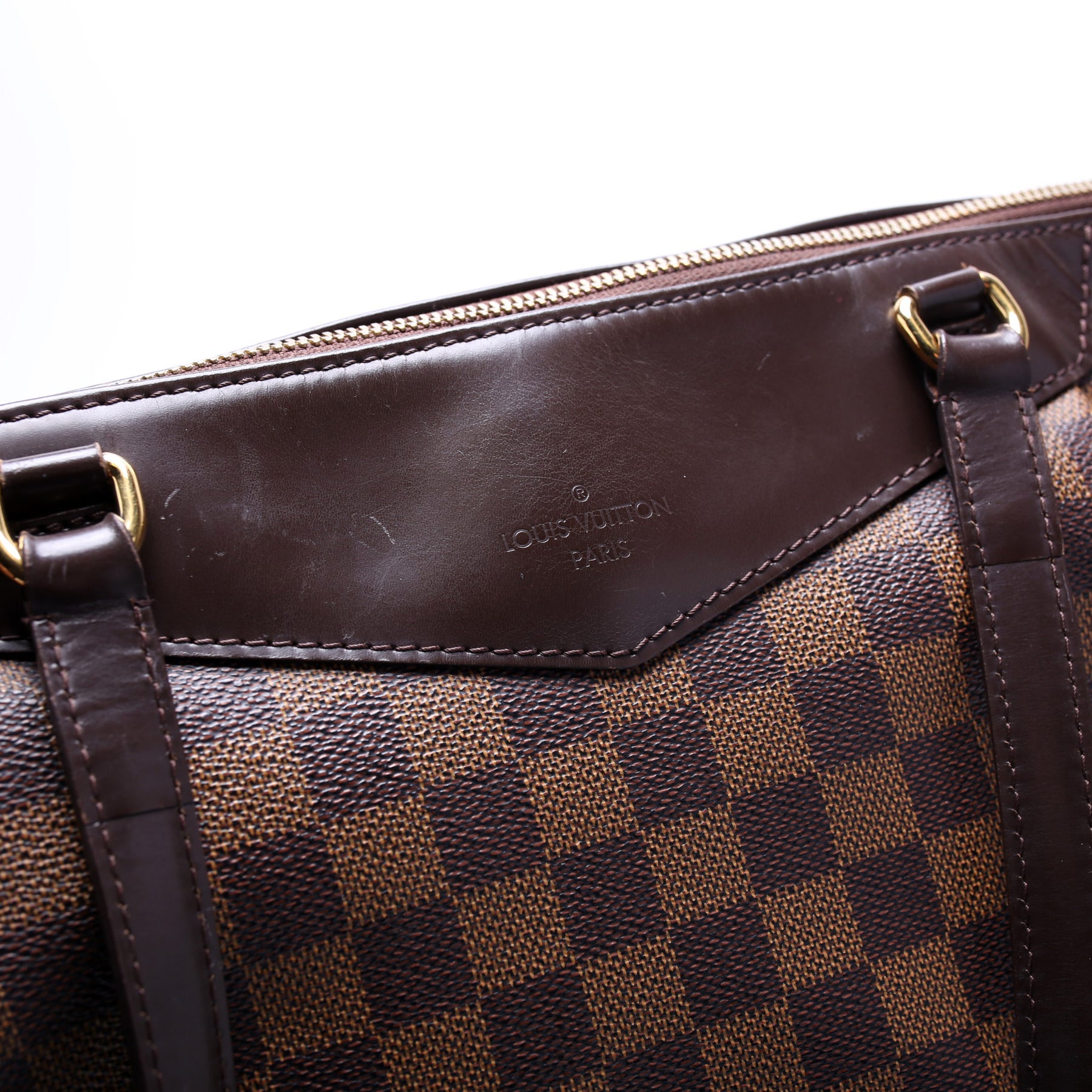 This pre-owned Louis Vuitton Westminster GM is guaranteed 100% authentic. The exterior is in the classic Louis Vuitton Damier Ebene coated canvas.