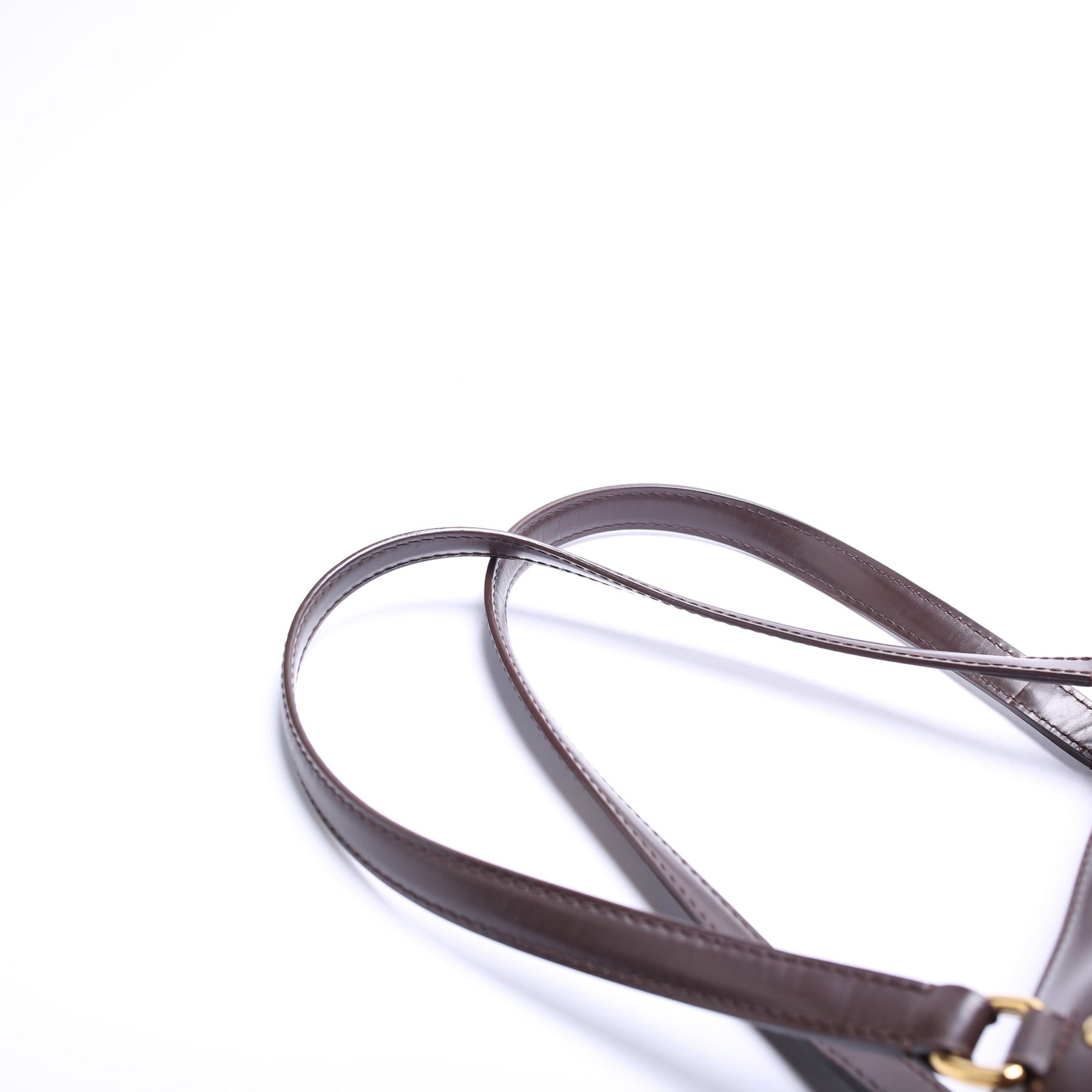 Exterior: The exterior coated canvas is free from any rips or cracks. The corners show minor wear. The leather trim shows minor wear and scuffing throughout.