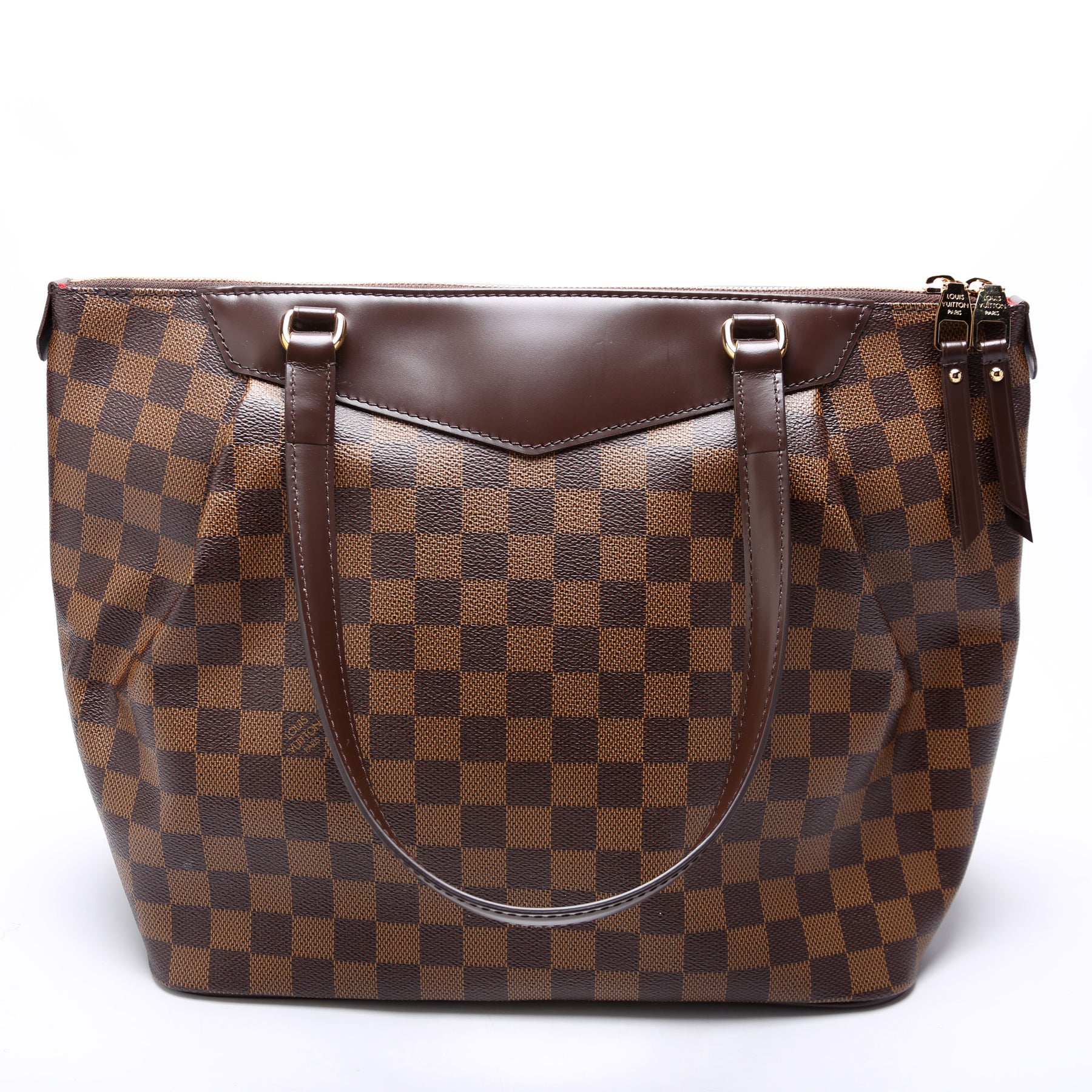 This pre-owned Louis Vuitton Westminster GM is guaranteed 100% authentic. The exterior is in the classic Louis Vuitton Damier Ebene coated canvas.