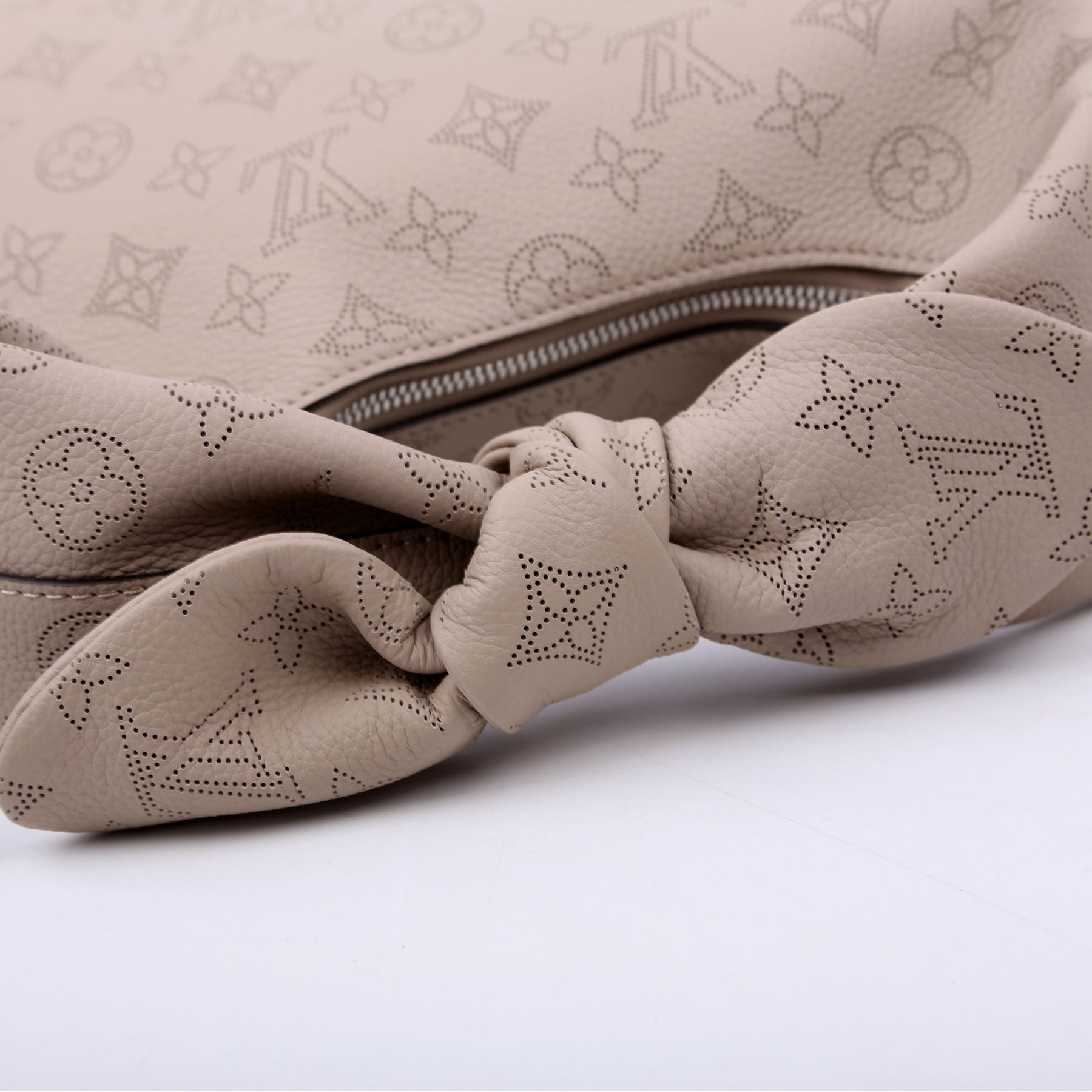 This pre-owned Louis Vuitton Why Knot PM is guaranteed 100% authentic. The exterior is in the classic Louis Vuitton Mahina leather.