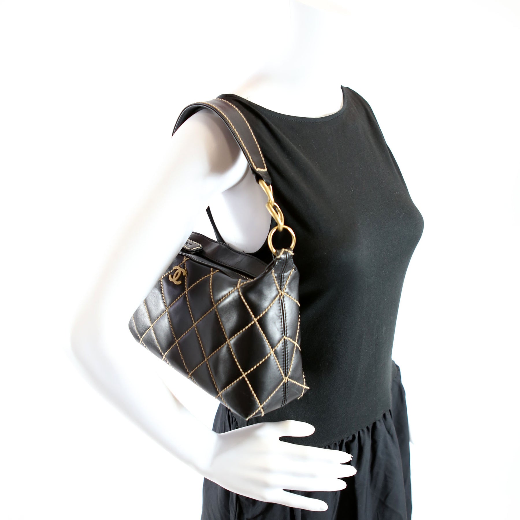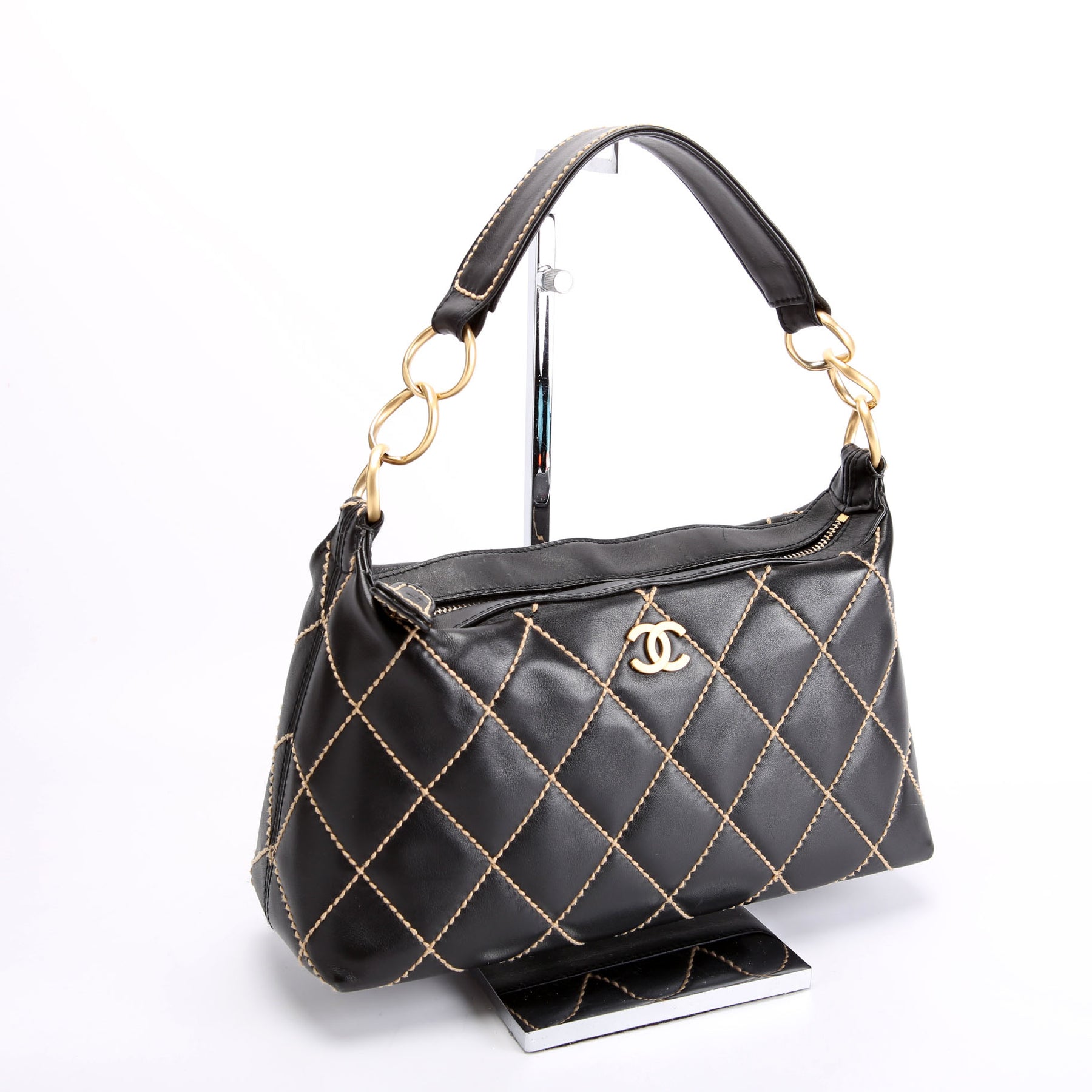 This pre-owned Chanel Wild Stitch Surpique Hobo Vintage is guaranteed 100% authentic.