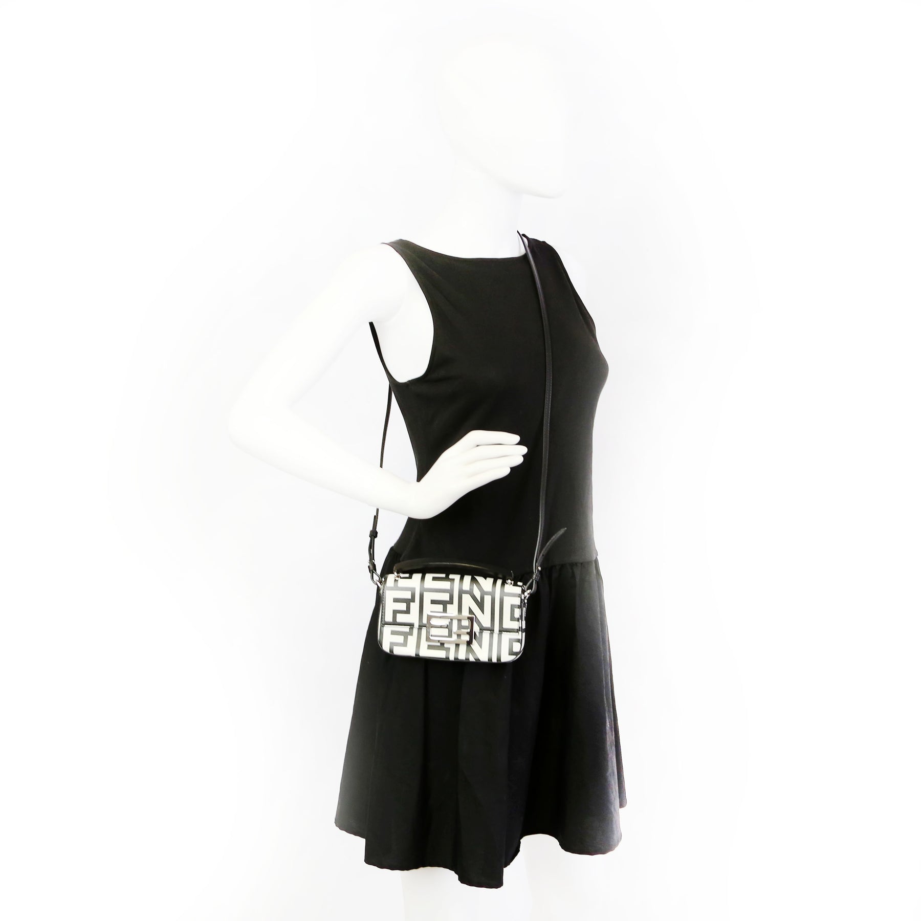 This pre-owned Fendi x Marc Jacobs Phone Baguette is guaranteed 100% authentic. The exterior is in the classic Fendi Canvas/Leather.
