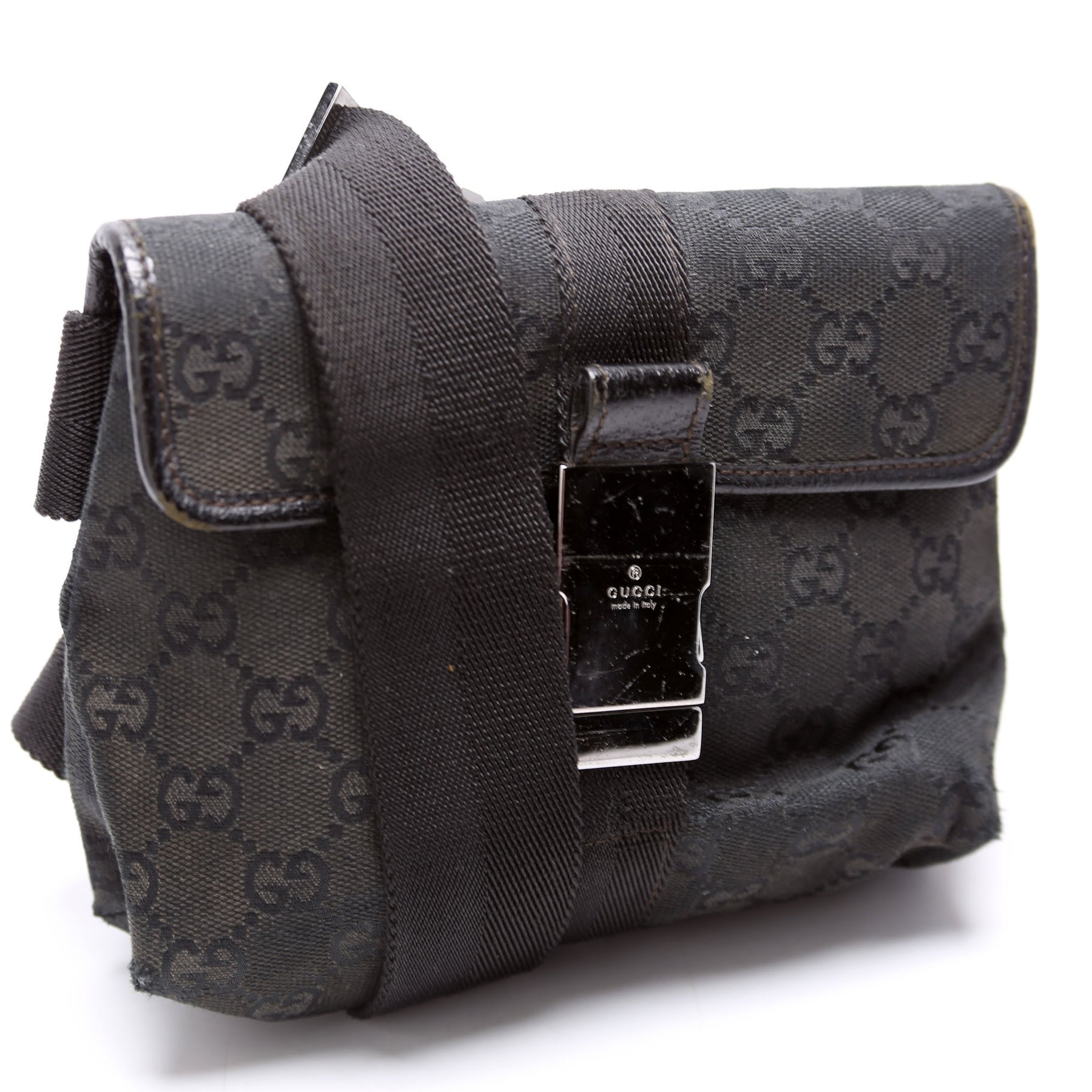 This pre-owned Gucci GG Canvas Belt Bag is guaranteed 100% authentic. The exterior is in the classic Gucci GG canvas.
